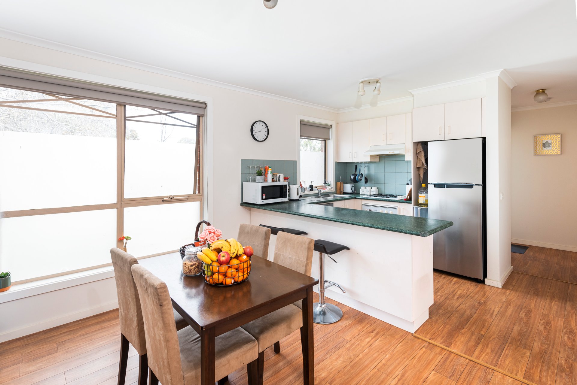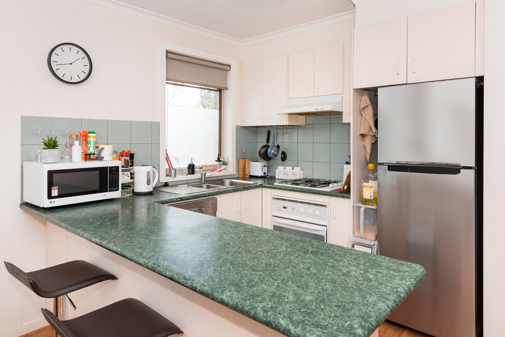 Also features two undercover basement carparks, communal BBQ and peaceful courtyard, split system and electric heating to the lounge, laundry facilities.