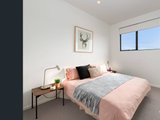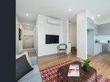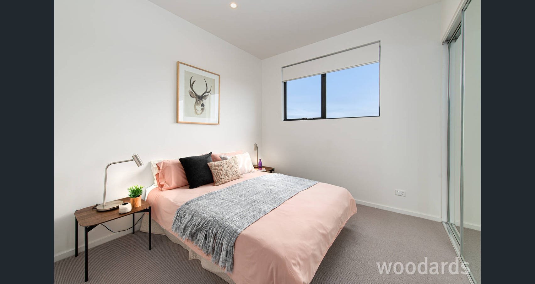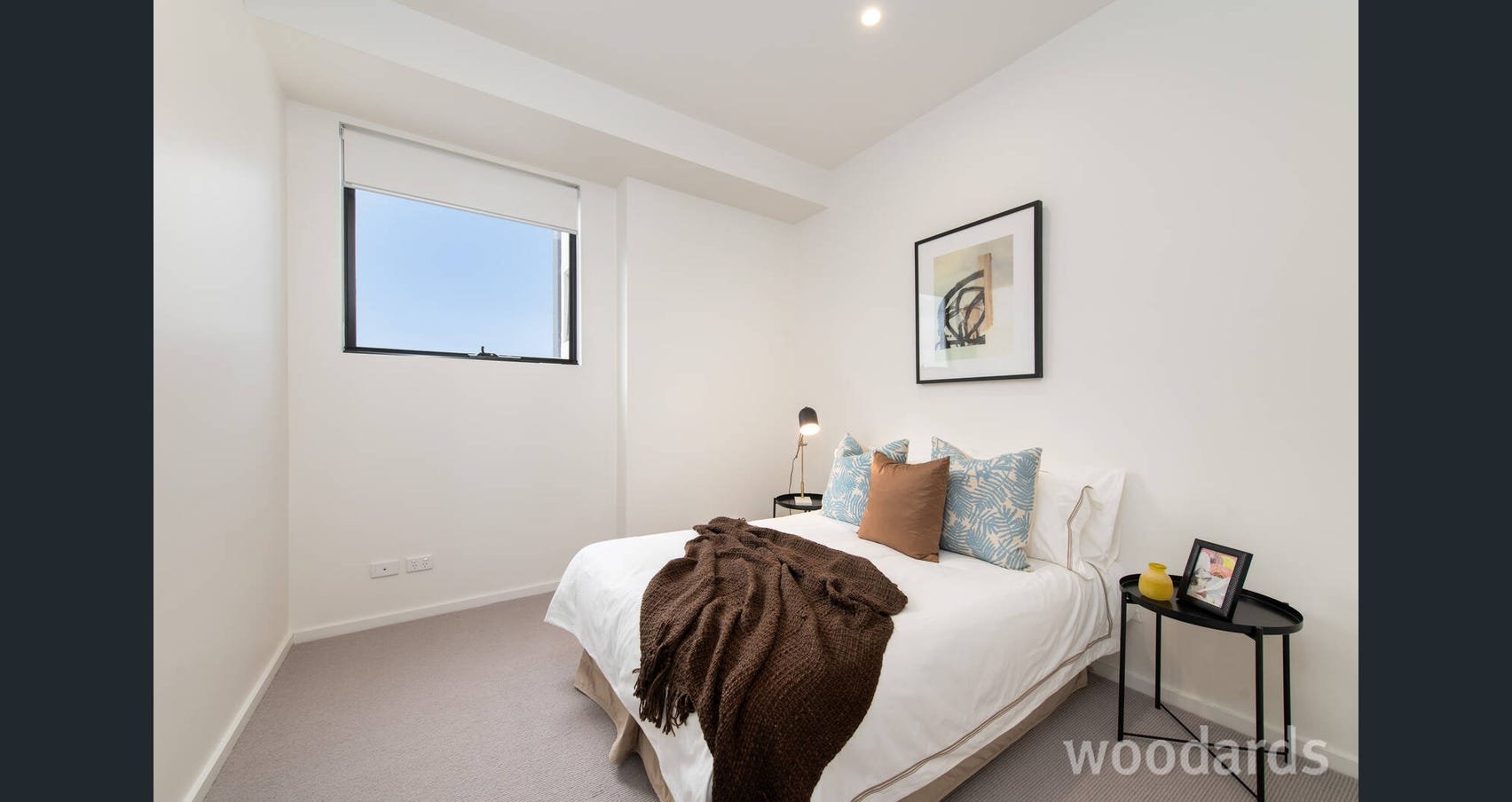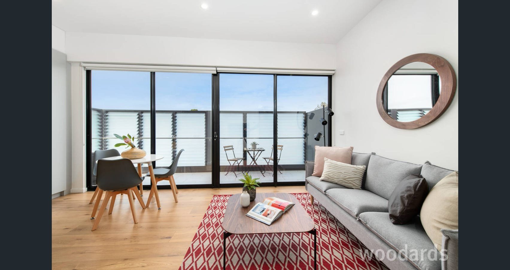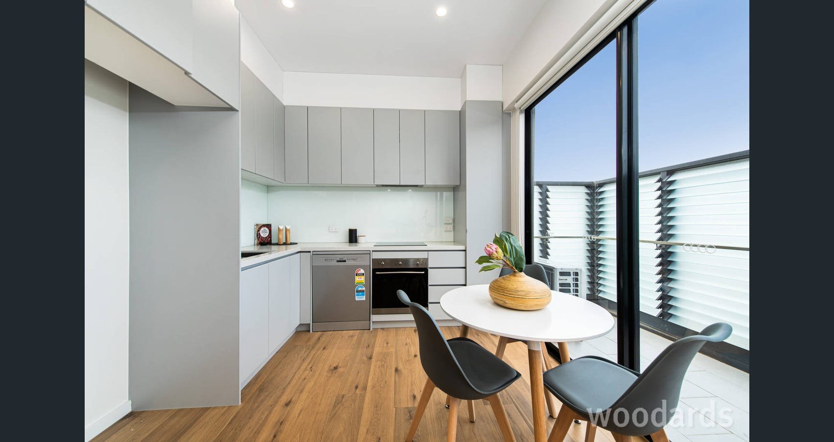 Sunlight streams through the open-plan living and dining zone, which flows effortlessly to a private balcony — the perfect space for relaxed alfresco dining and year-round enjoyment. The sleek kitchen is seamlessly integrated into the living area and features stone benchtops, soft-close cabinetry and premium stainless steel Smeg appliances, including an induction cooktop.