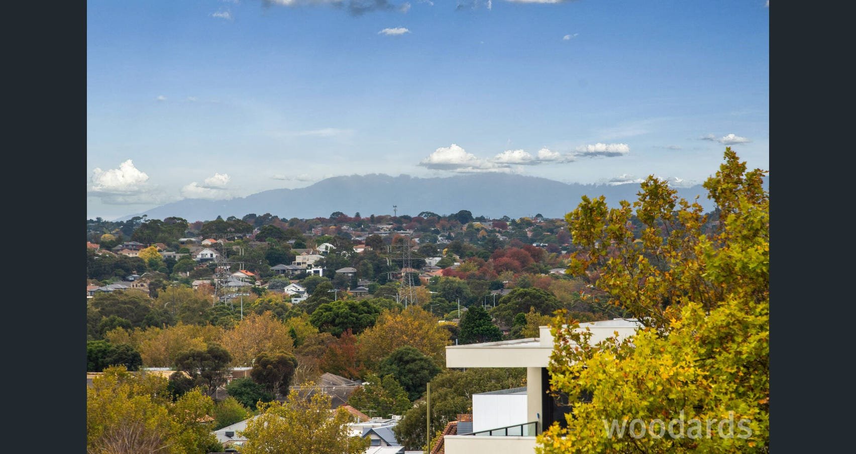 Both bedrooms are generously sized and showcase stunning views across the Dandenong Ranges, complemented by plush carpeting, reverse cycle split systems, and mirrored built-in robes. A stylish central bathroom, European laundry and high ceilings further enhance the sense of space and quality throughout.