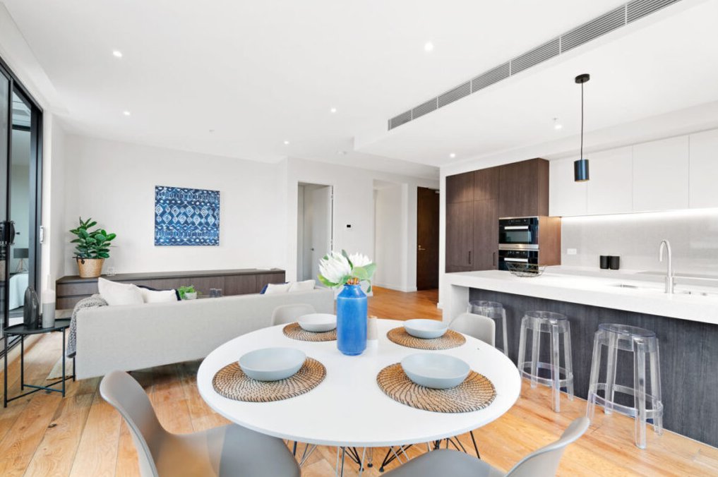 Situated in the boutique Estilio building, one of only 30 residences. Estilio being Spanish for 'Style' is Impressively appointed throughout. This pristine property comprises an open plan living area, a large island kitchen bench with integrated Miele appliances and gas cooking, a built in study nook, an abundance of storage options, two large bedroom & two fully tiled bathrooms, Spectacular city backdrop over Fitzroy from the generous balcony, large enough to dine alfresco and enjoy the views. Additional features include Euro laundry ( including washer and dryer) split system heating and cooling, timber floors, high ceilings , natural light, double glazing, secure entry with video intercom, 2 resident car parks and large storage room.