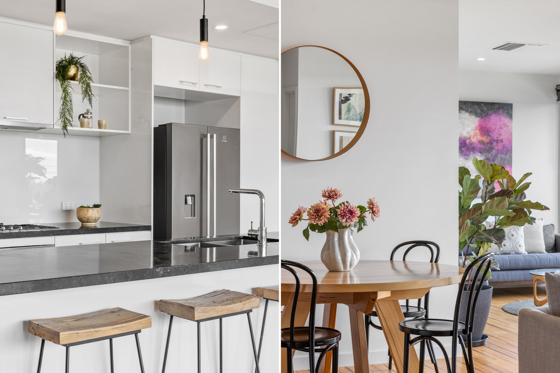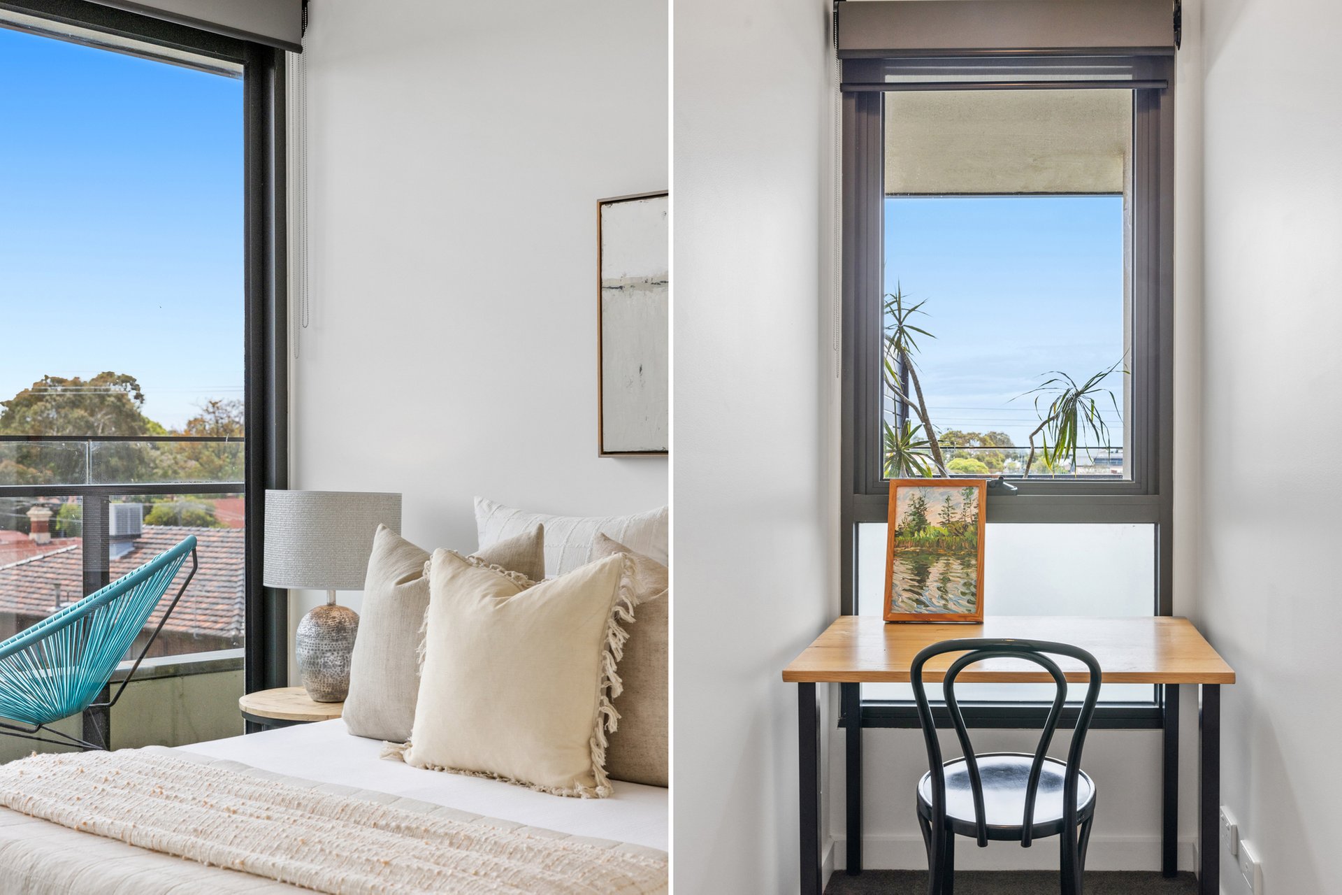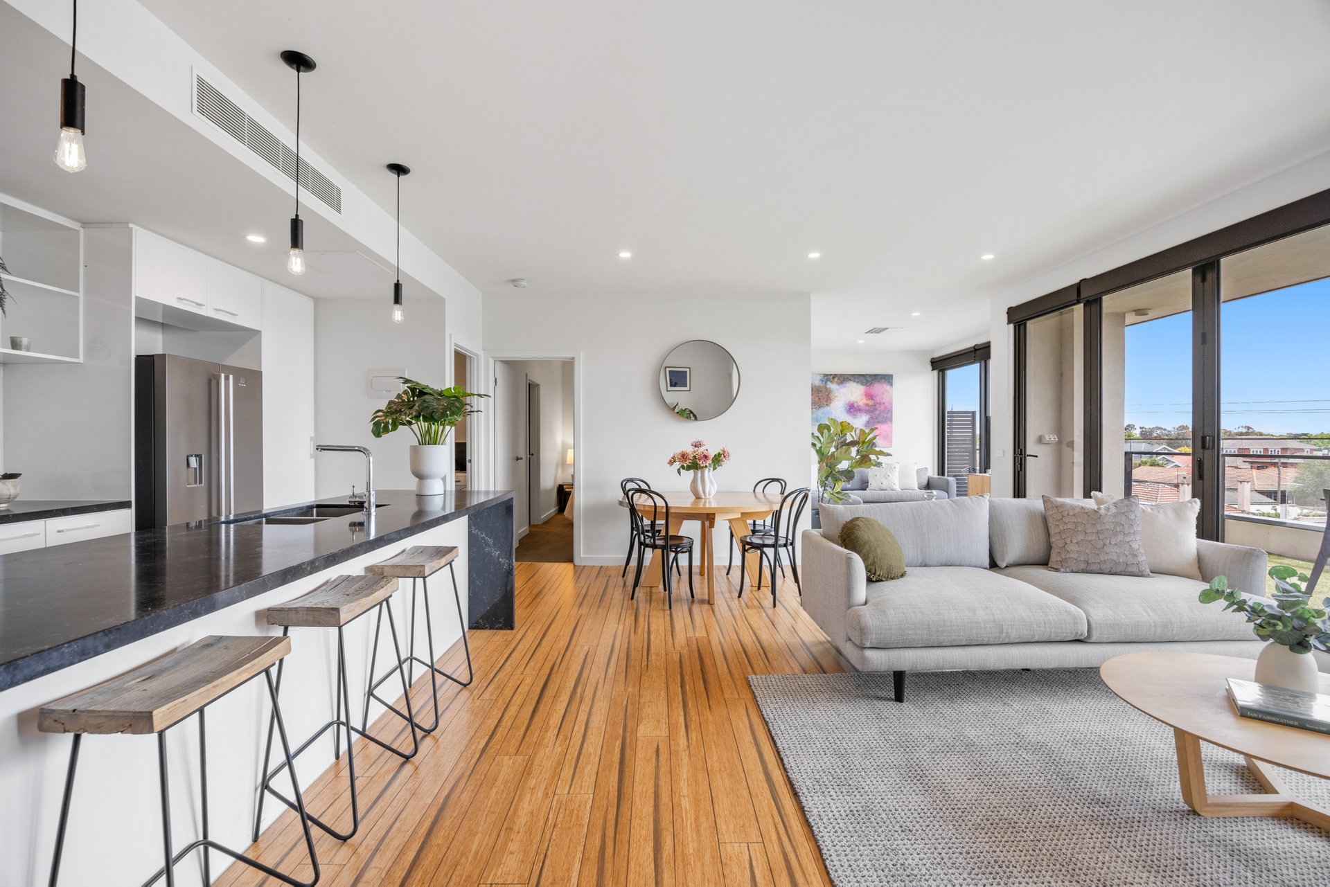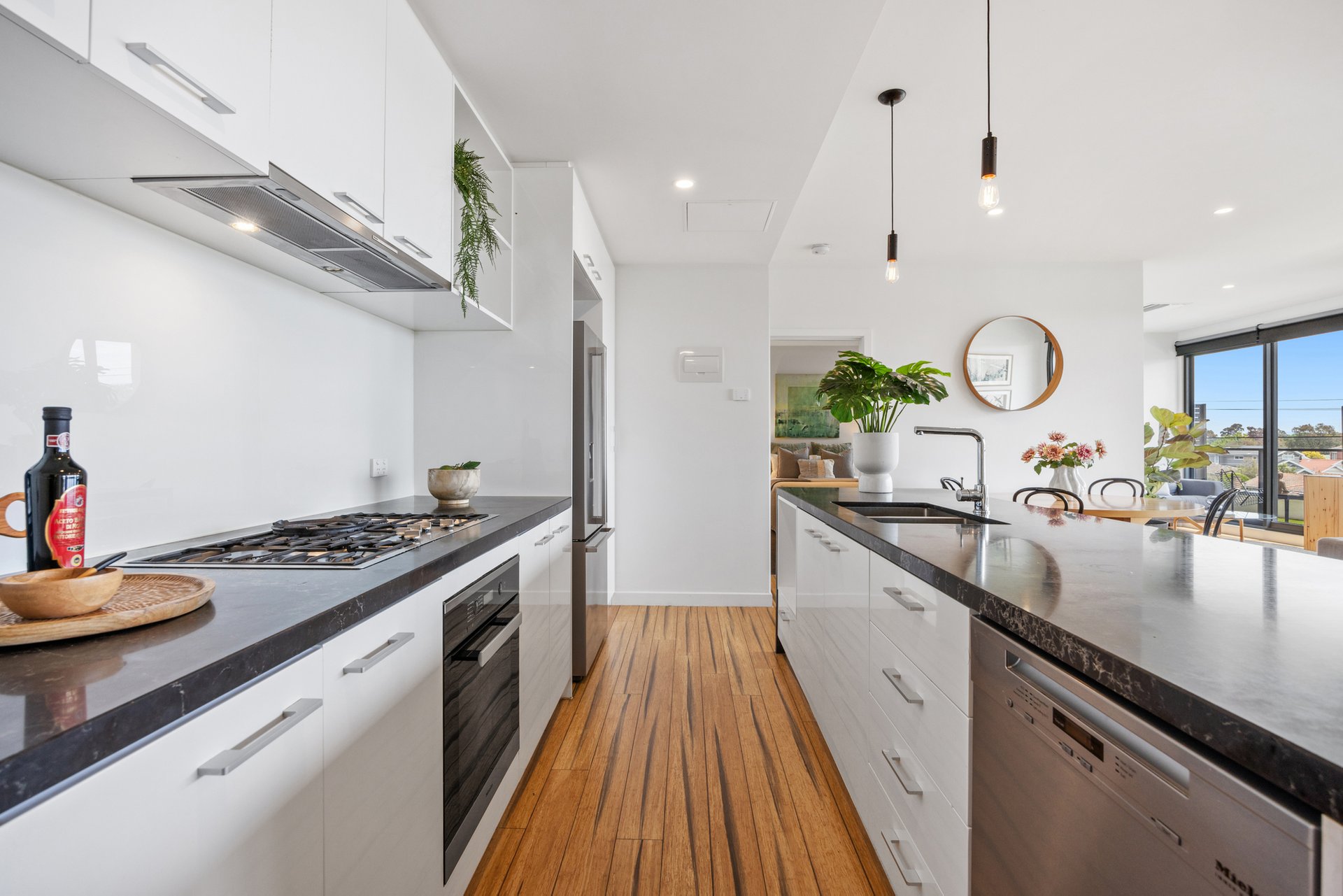 This bright, top floor apartment offers a relaxed inner north lifestyle with generous indoor and outdoor space. The open living and dining area features timber floors and opens through full-height bifold doors to a deep north-facing balcony that runs the full width of the home. It’s a great spot for morning sun, quiet afternoons, or hosting friends.