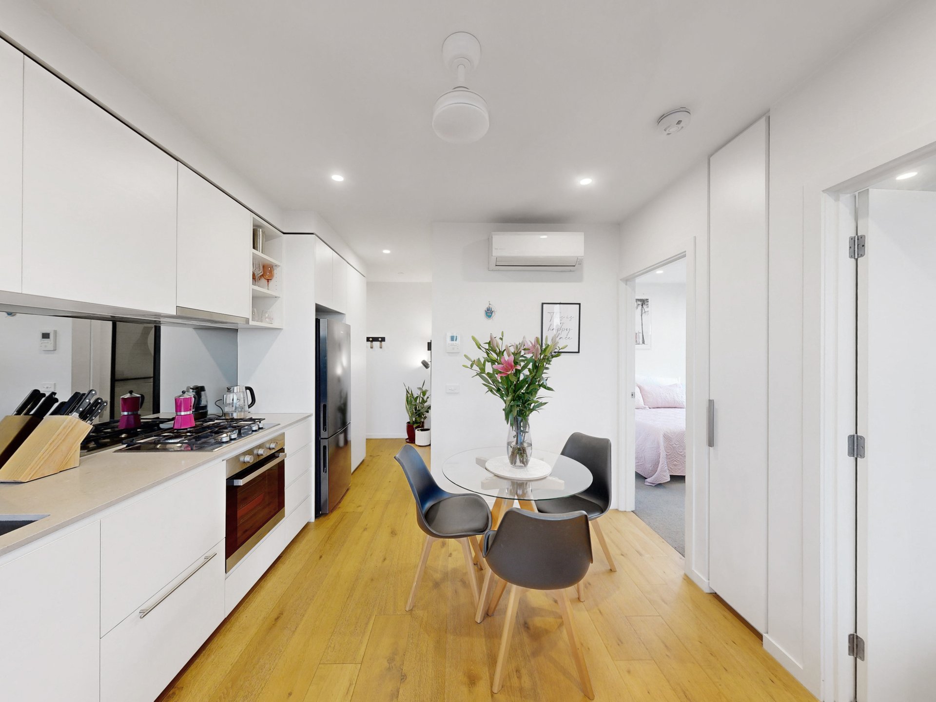 Freshly painted apartment, corner-positioned for an abundance of natural light, this third-floor apartment provides a brilliant lifestyle opportunity in Essendon North. Impeccably presented, the illuminated interior comprises two double bedrooms (both with mirrored robes) as well as a stylish central bathroom complete with fully-tiled rain-head shower. Add to this a stone-bench kitchen boasting soft-close cabinetry, mirrored splashback, integrated dishwasher and Ariston cooking appliances - all complementing the open-plan living/meals area opening out to a full-width terrace with elevated northerly views. Other stand-out features of the apartment include split-system heating and cooling, stylish engineered timber floors and concealed laundry facilities, plus lift to secure foyer with fob entry, car stacker and storage cage. Trams, cafes and restaurants virtually at your doorstep and Thompson Reserve across the road, it's also walking distance to shops and supermarkets, Woodlands Park, local schools and kinder/childcare facilities, as well as easy access to DFO and Citylink.