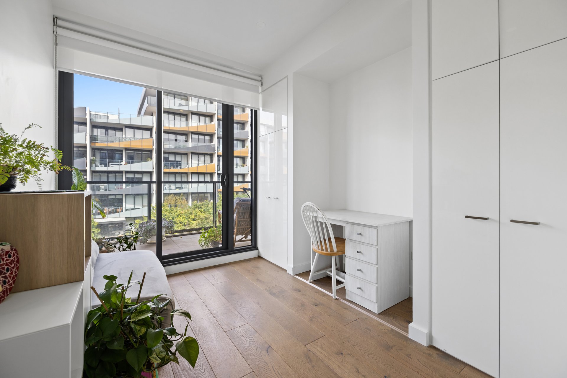 An idyllic retreat in every sense, the inviting residence features an open plan living/dining zone and entertainer’s kitchen, which is centred round a stone-topped island and equipped with quality Neff appliances. In addition to a full bathroom, the apartment comes with the bonus of a powder room - perfect for guests - while ample storage can be found in both of the good-sized bedrooms; one also with handy study nook and access to a sunny balcony.