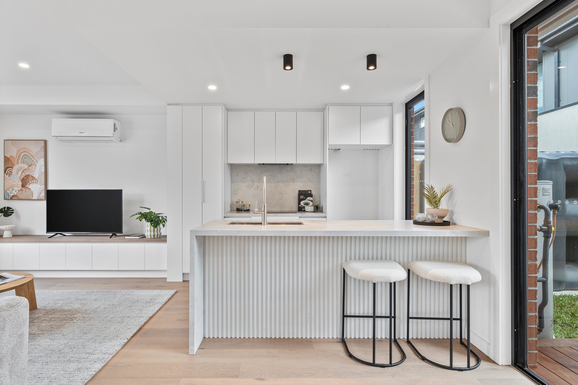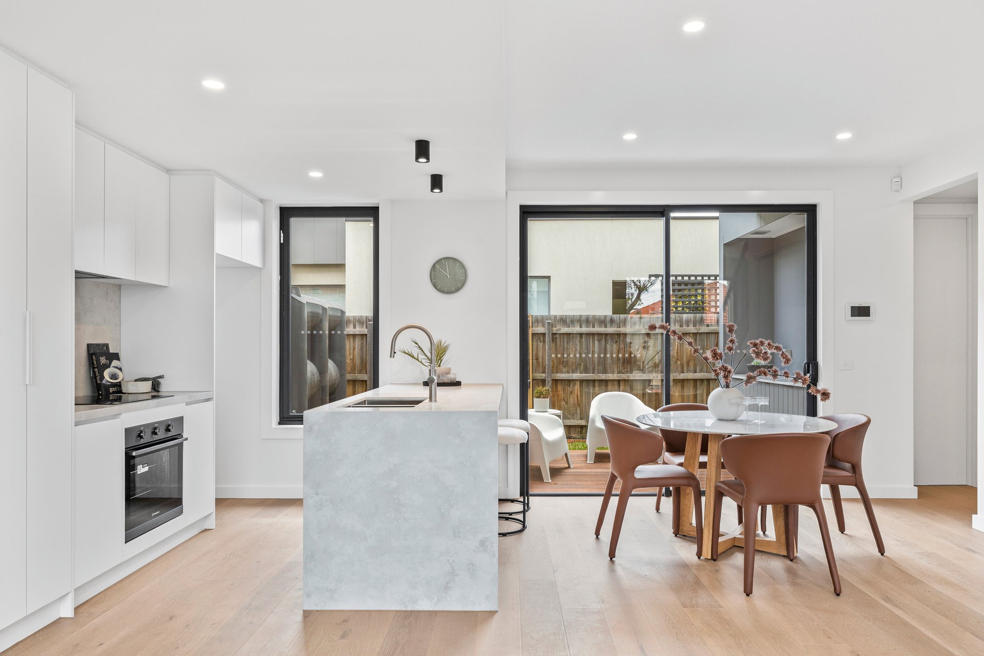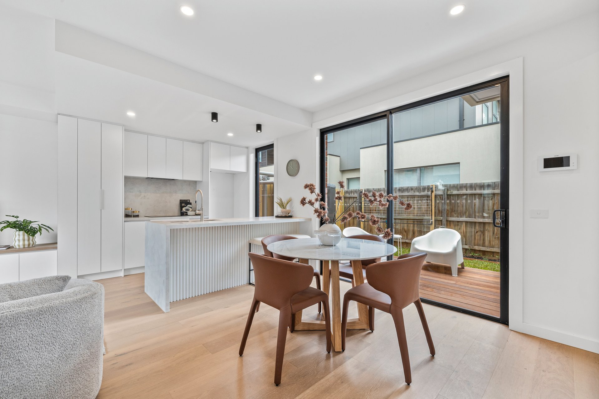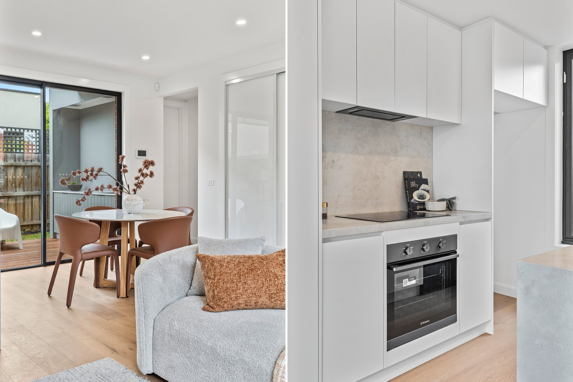 This newly built two level townhouse delivers modern living with a strong lifestyle focus in one of Yarraville’s most connected pockets. Abundant natural light flows through large windows, enhancing the open plan living, dining and kitchen zone with engineered flooring underfoot. A split system air conditioner provides year round comfort, while the kitchen features an induction cooktop, electric oven and a dishwasher for easy everyday living.