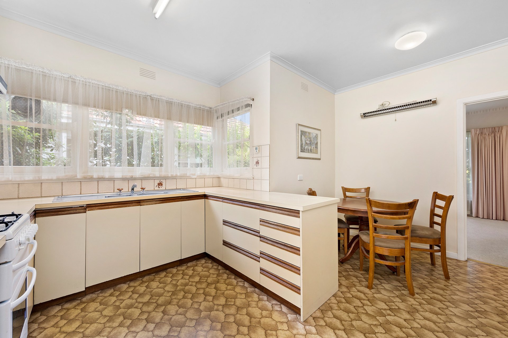 Surrounded by some 730m2 approx, offering sought after zoning to Balwyn High School, this original 3 bedroom property has huge appeal from renovation, investment and re-development perspectives, STCA. Each approach will in its own way make the most of an exceptional setting where proximity to Minifie Park, the Balwyn Walking Trail, Belmore Road shopping and Gordon Barnard Reserve complements the significant advantage of the school zone. Classically comfortable in its current day form, the traditional character of living and dining spaces is matched by the retro mood of the kitchen. Garden dimensions, a garage and extra parking further enhance the chance to secure an address with exceptional advantages, past, present and future.