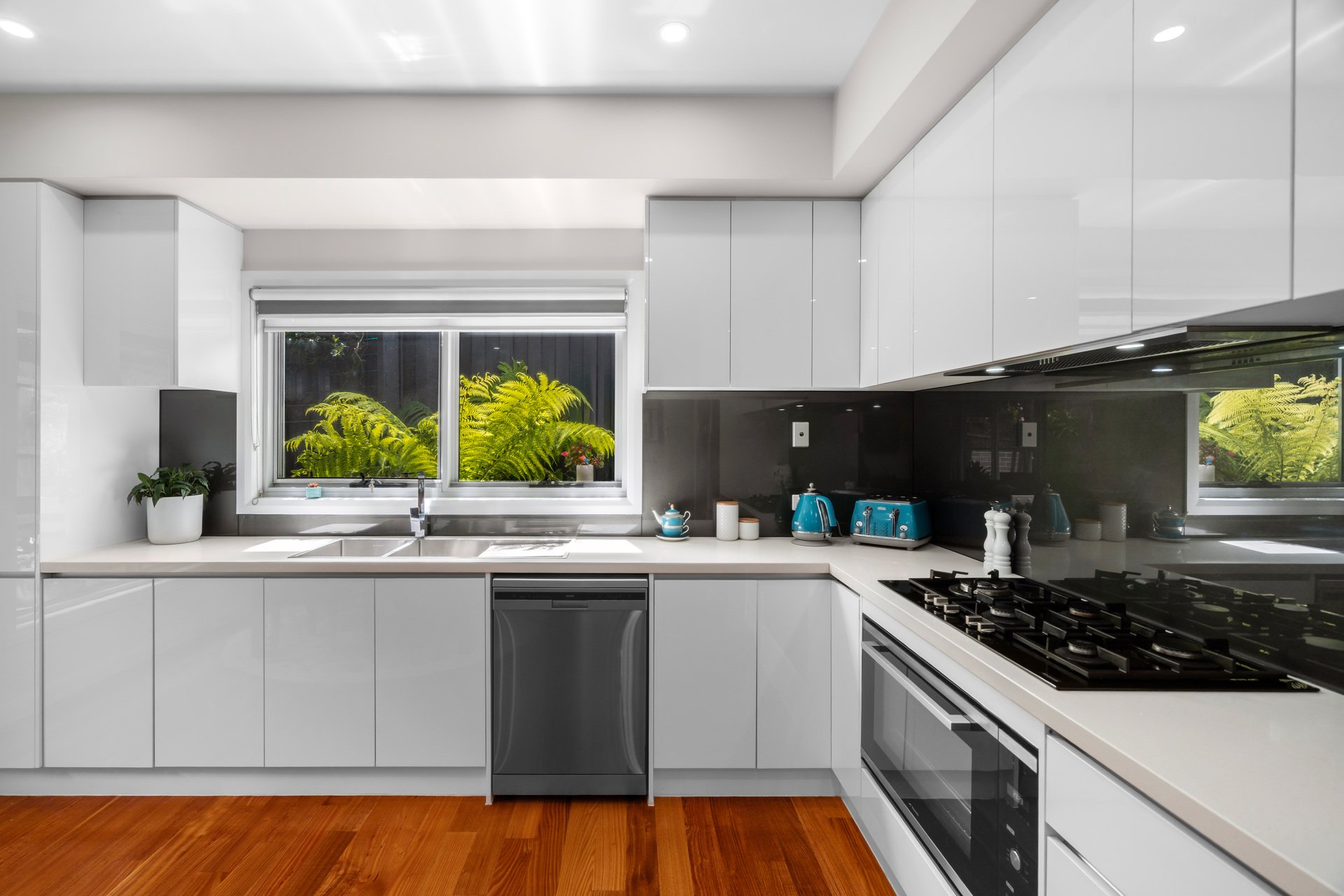 Step inside to a sun-drenched, open living and dining zone that flows to a tranquil north-facing courtyard, perfect for alfresco brunches or unwinding in your own green oasis with water feature. The kitchen includes stone benches, a 900mm gas cooktop, new 900mm oven, dishwasher, rangehood and plenty of storage, making it a practical and enjoyable space to cook in. The master bedroom offers a fully tiled ensuite, while additional bedrooms provide plush carpeted comfort, built-in robes, and ceiling fans for year-round ease. A spacious and skylit central bathroom, concealed laundry, and thoughtful extras include intercom, Bosch alarm, ducted heating, evaporative cooling, polished timber floors, roller blinds, remote garage (internal entry) and OSP.