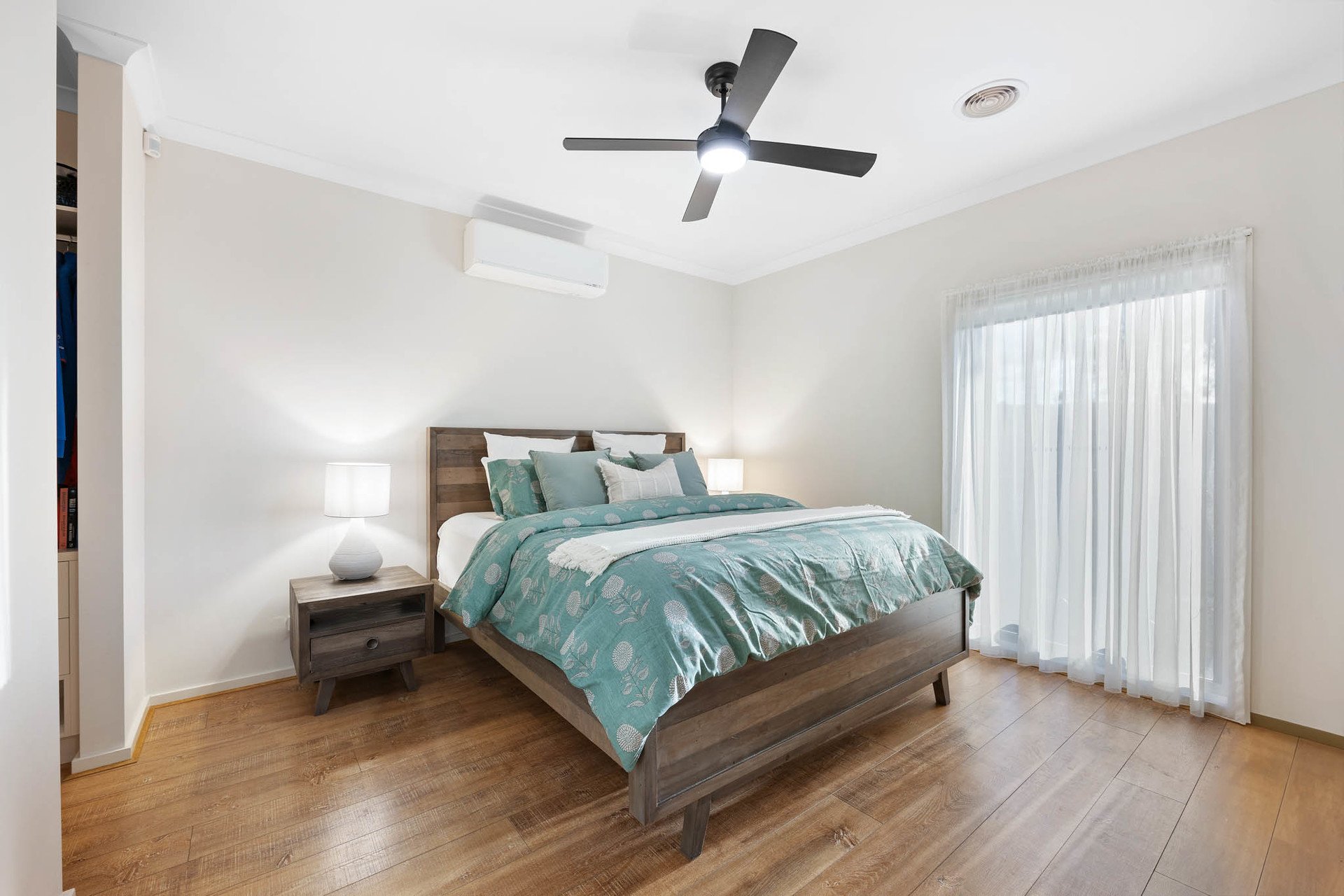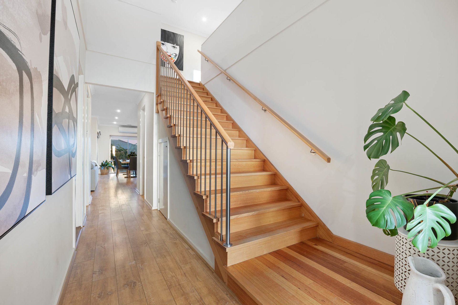 Set on approximately 700m², this beautifully appointed family home combines generous proportions with modern comforts, all within easy reach of Sunbury's amenities. Engineered flooring flows throughout the lower level, complemented by split systems, ducted heating, and evaporative cooling upstairs for year-round comfort. The front porch opens to an inviting entry foyer, leading to the main bedroom with ceiling fan, an impressive galley-style walk-in robe, and a stylish ensuite featuring large format tiles, a double vanity, and a spacious shower with niche.