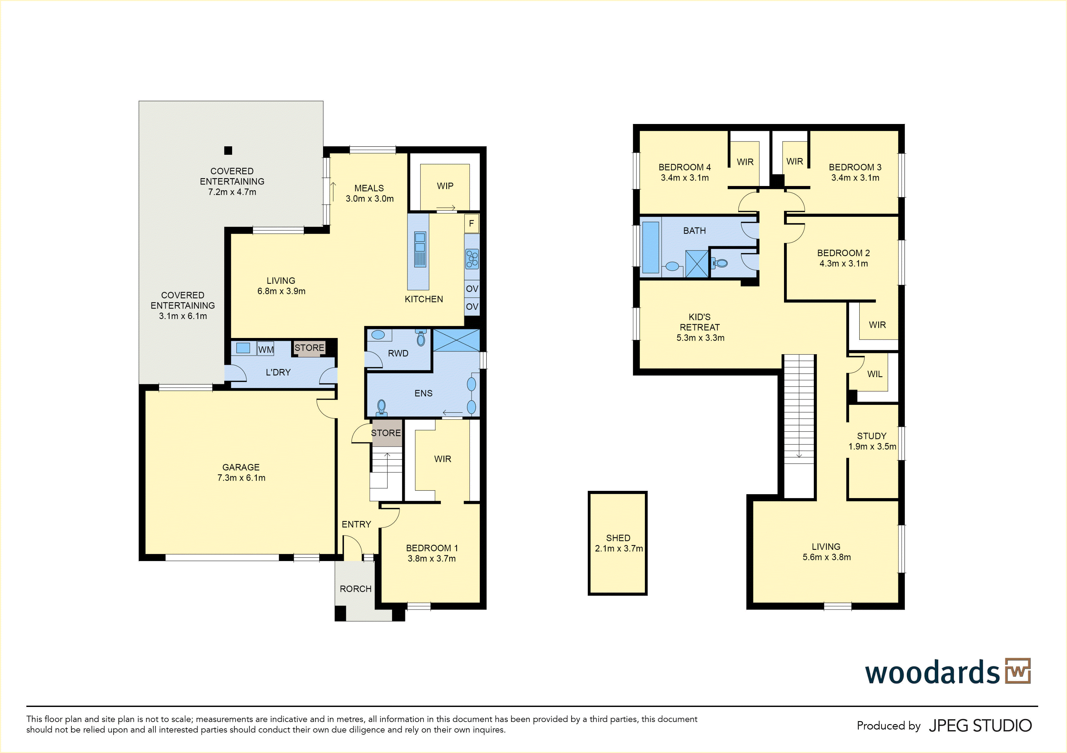 Upstairs, an extra-wide staircase leads to a children's retreat, three bedrooms with walk-in robes, a walk-in linen closet, study nook, and a central bathroom with full-size bath and separate toilet. A light-filled living or games room completes the upper level.