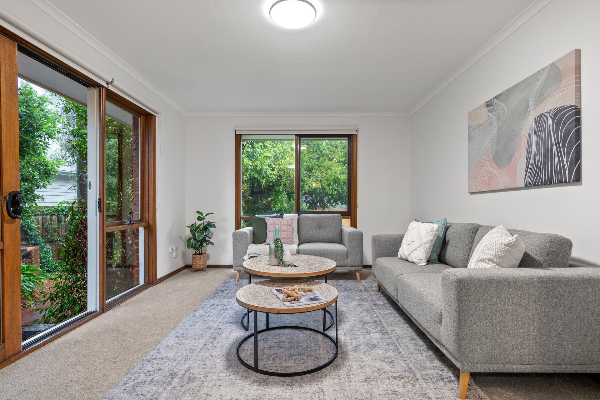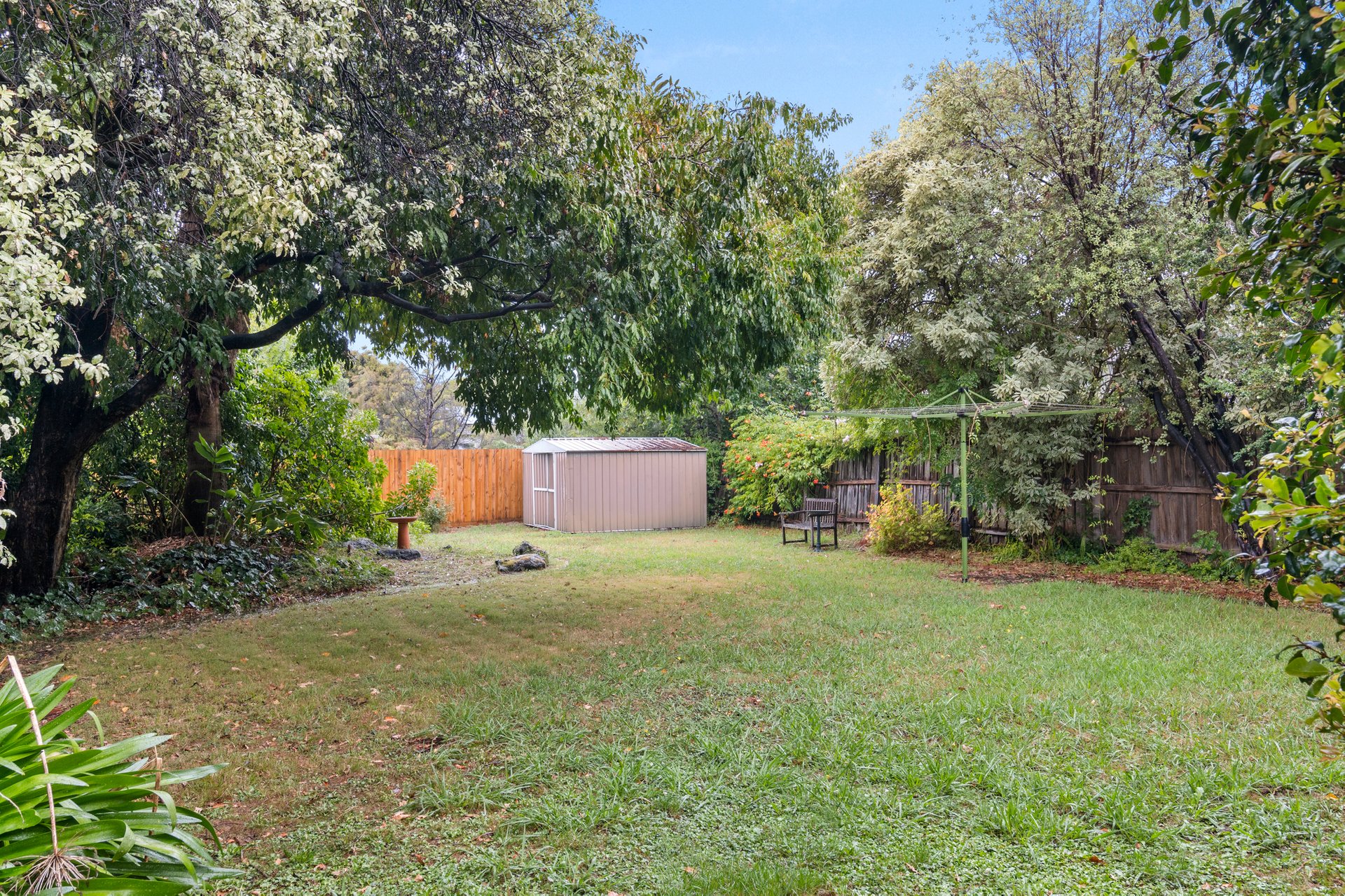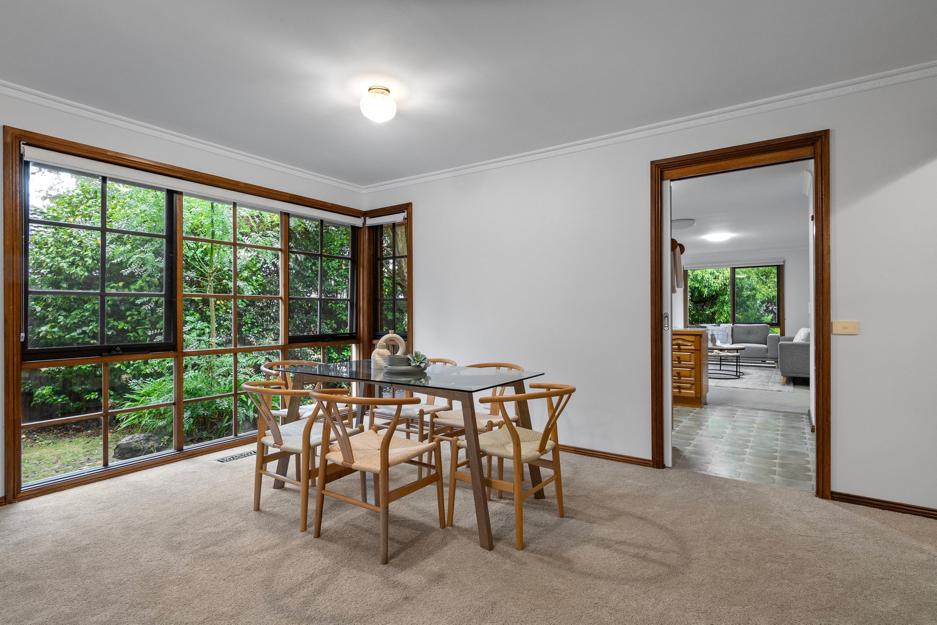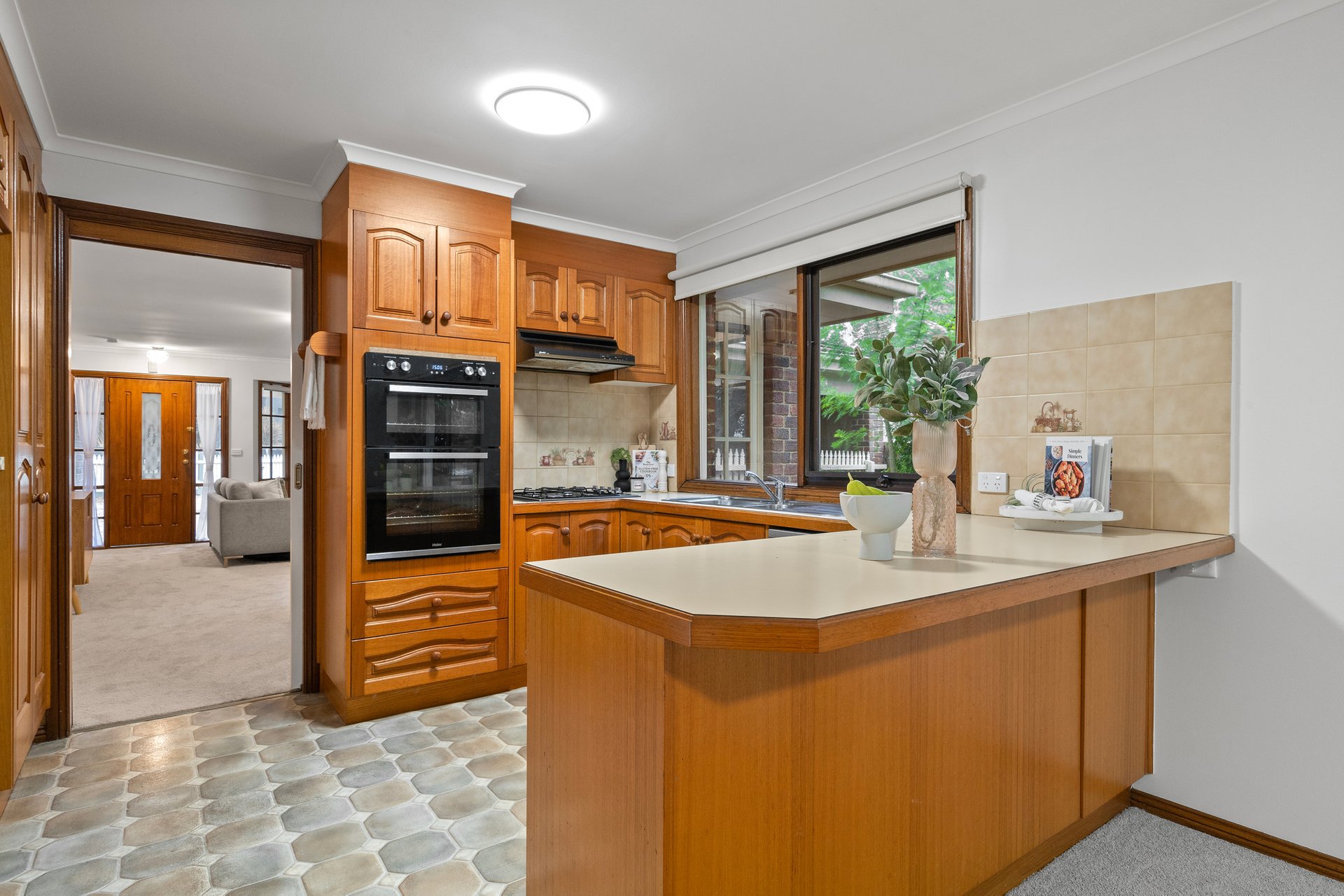 Two living and dining rooms provide plenty of space to spread out, both capturing lush garden outlooks, with Mount Dandenong visible at the rear. Positioned between them, the kitchen is fully equipped with all the essential appliances and offers a footprint that’s easy to work with. A paved alfresco complements the areas, leading to a backyard sized for children and pets to run around, kick a ball or enjoy a hit of cricket.