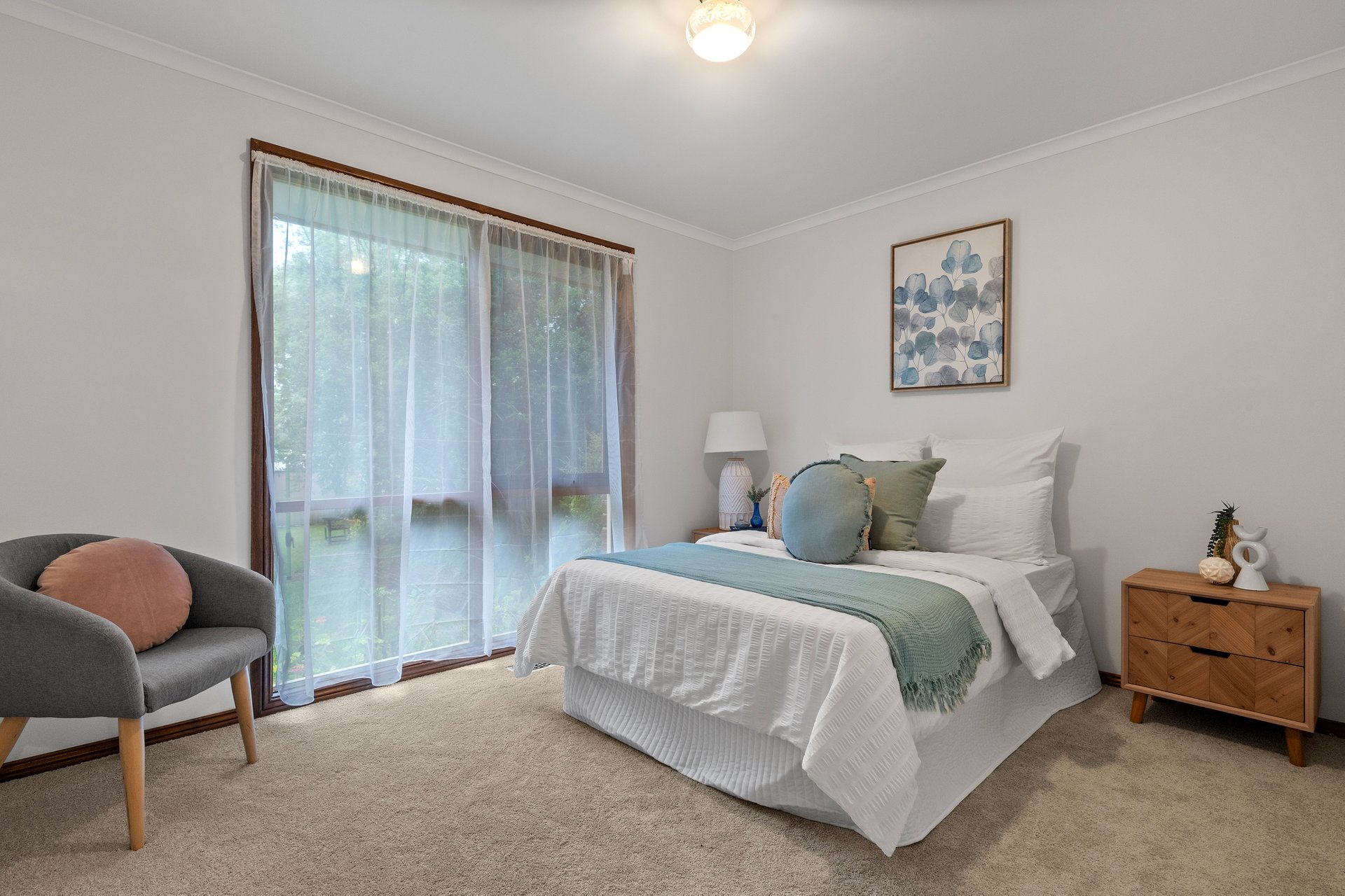 Three robed bedrooms and two bathrooms are spread across the home for sleep and bathing, including the front master boasting a walk-in wardrobe and an ensuite.