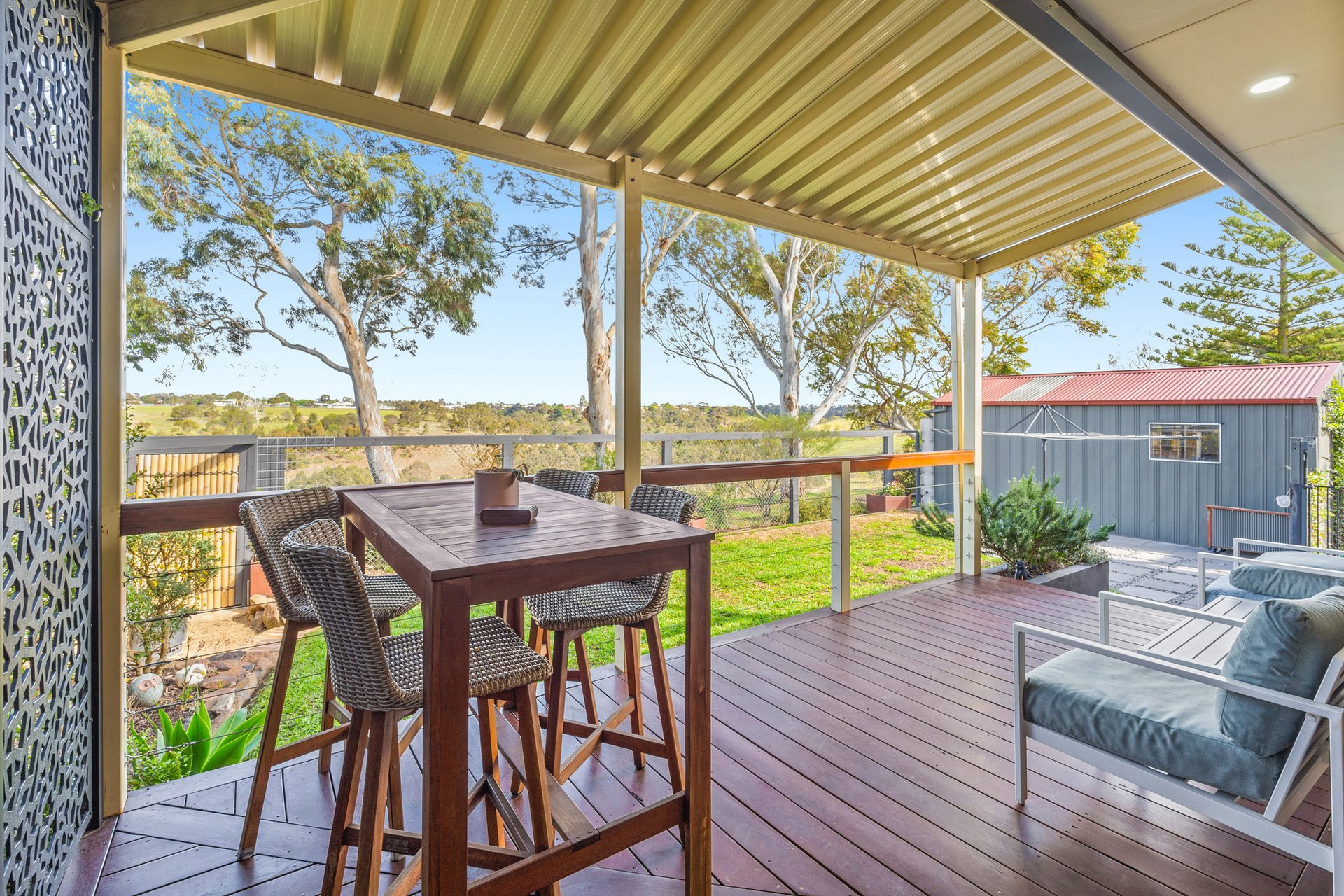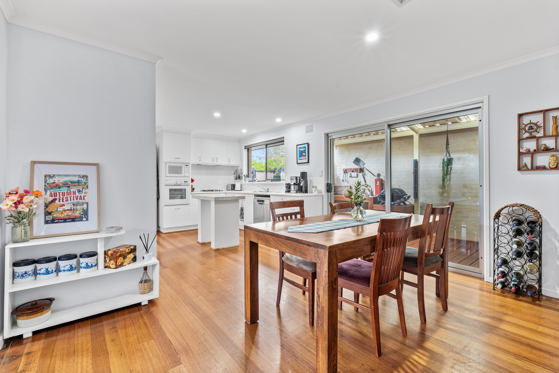Lovingly maintained and full of warmth, this AV Jennings home offers effortless single level living in a peaceful family estate. The inviting lounge with Jetmaster gas log fireplace flows to a spacious kitchen and dining area featuring a stone island bench, concealed fridge, twin pantry, Miele wall oven, gas cooktop, and Bosch dishwasher. Entertaining is a delight with wraparound outdoor spaces, including a covered deck with pizza oven, integrated barbecue bench, and TV, all overlooking Taylors Creek/Green Gully Reserve. Enjoy tranquil views, birdlife, and an above-ground 3-person hydrotherapy spa within secure fencing, plus a grassed area for family fun. Four versatile bedrooms (2 built-in wardrobes), one with floor-to-ceiling shelving. Highlights include two bathrooms, a well-equipped laundry with stone bench, solar panels, attic storage, LED lighting, twin roller blinds, ducted heating, Brivis A/C, garage/workshop, twin carport, and off-street parking. Walk to Calder Rise Reserve Park, and bus stops, with primary and secondary schools, village shops, and freeway access just minutes away.