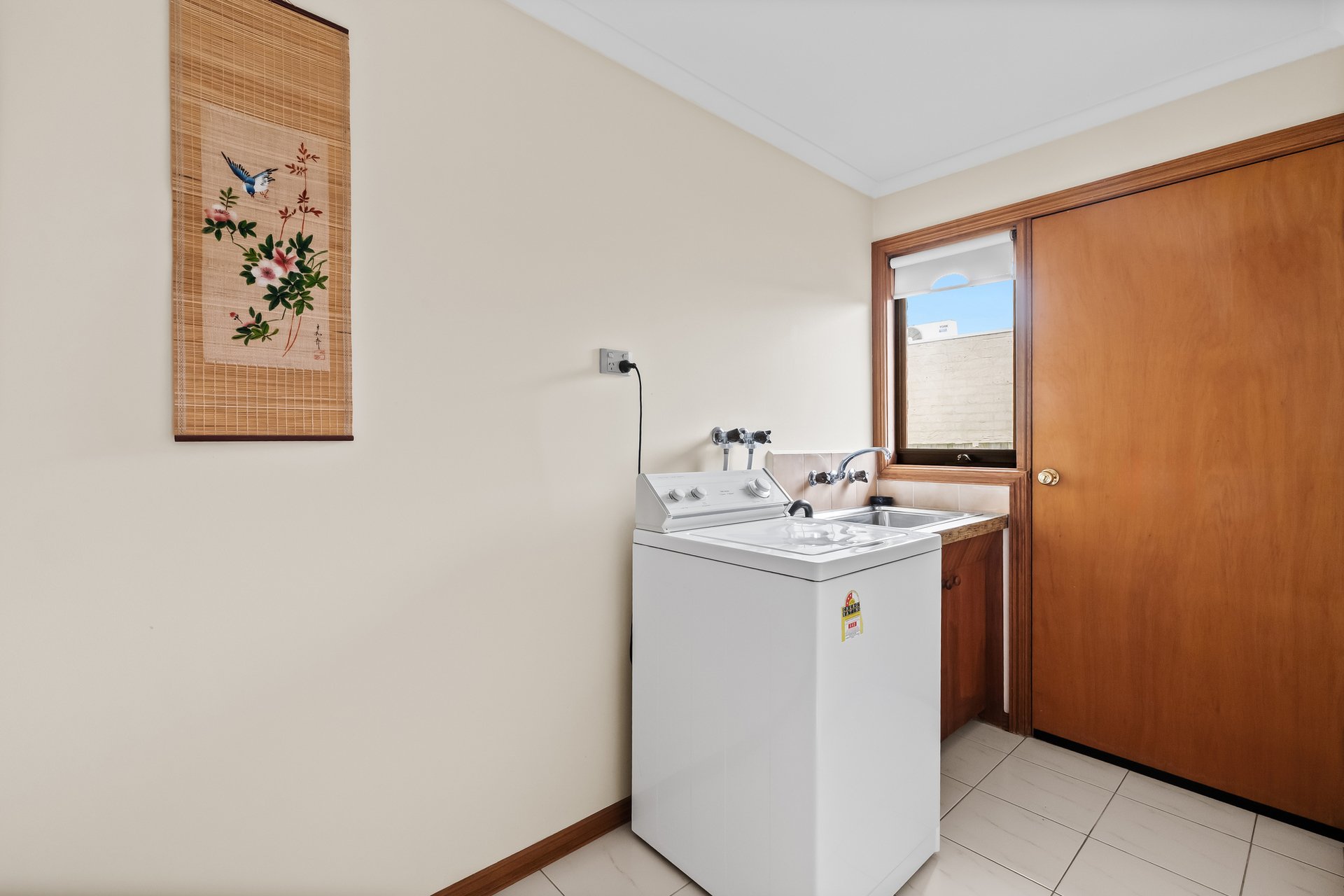 The light-filled layout features a welcoming living room flowing through to a well-appointed kitchen and meals area, both bedrooms with built-in robes, and a full-size laundry with external access. Year-round comfort is assured with heating and cooling, while the north-facing courtyard and beautifully maintained gardens provides a private and sunny outdoor living area.