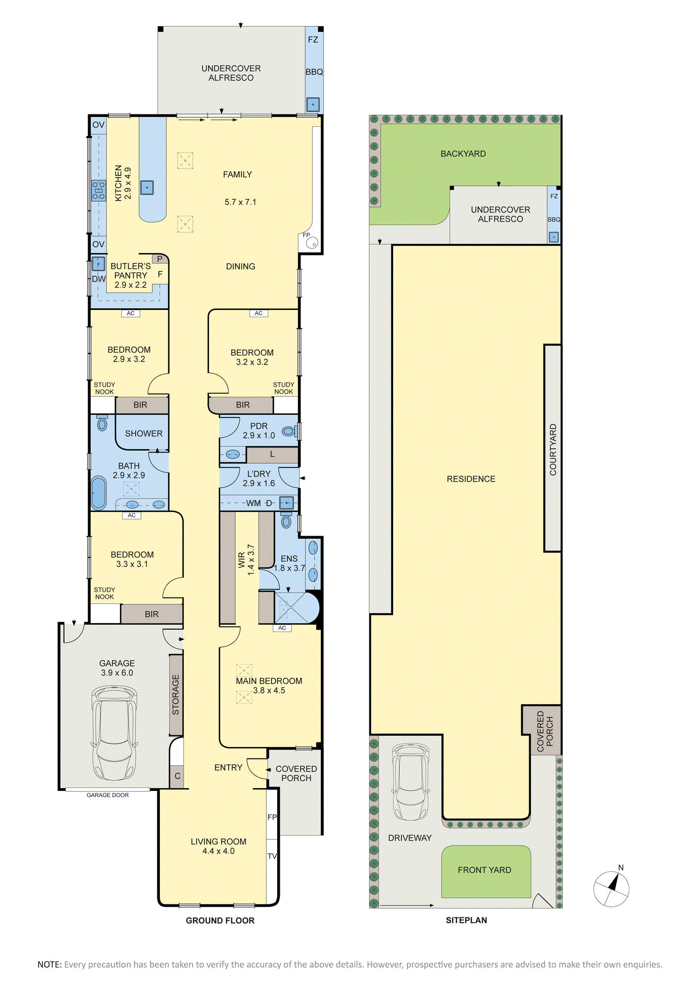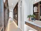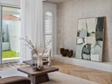 A calming sense of scale and balance is evident from the moment you enter. A separate front lounge offers a peaceful retreat, warmed by a feature fire. The main bedroom suite is privately positioned and features a fitted walk-in robe and an ensuite finished with Italian tiles and gunmetal fixtures. Three further bedrooms, each appointed with built-in robes and study nooks, are serviced by a sleek central bathroom, powder room, and a full laundry with external access.