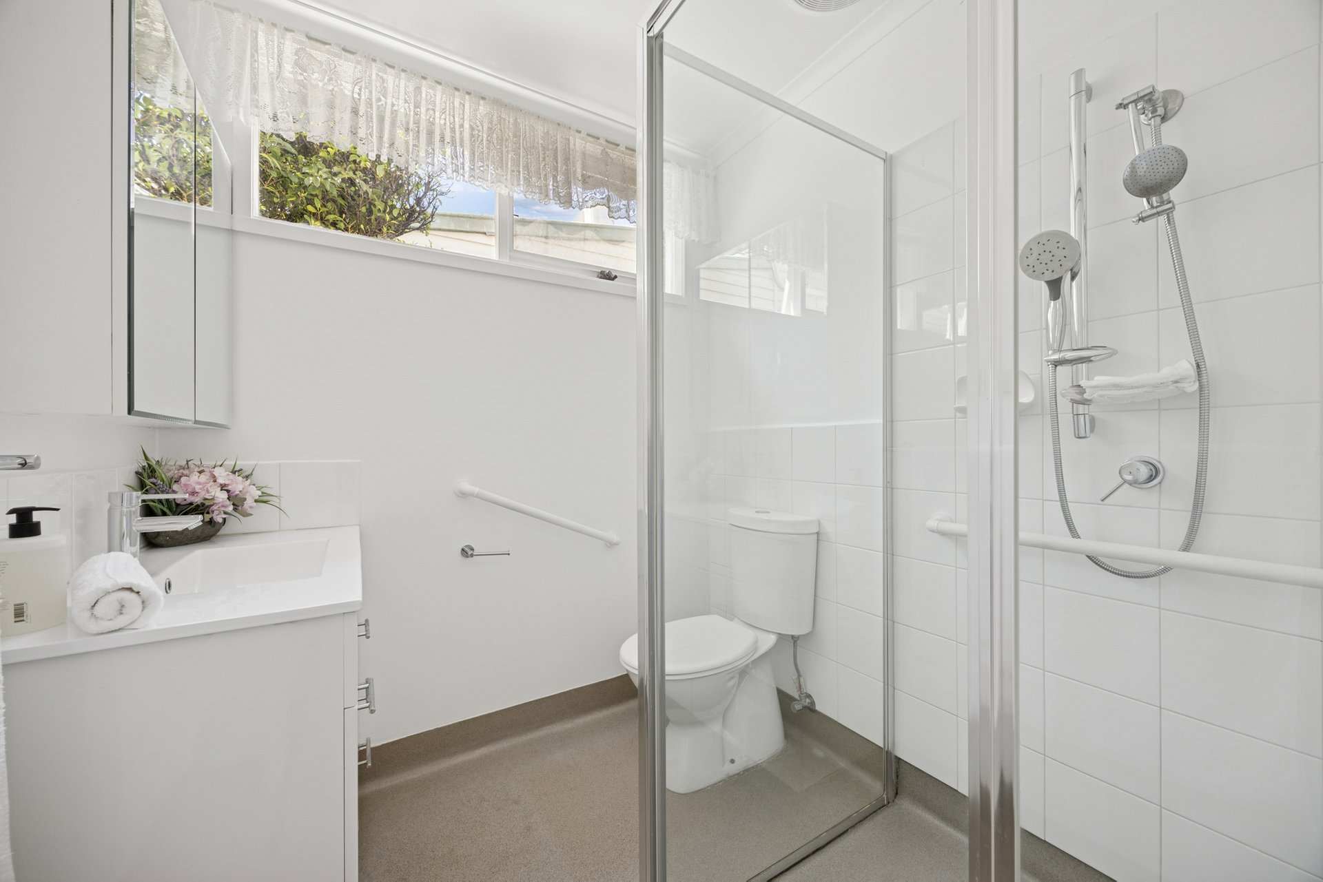 A refurbished bathroom with shower and toilet is paired with a second toilet and a dedicated laundry with extra storage.
