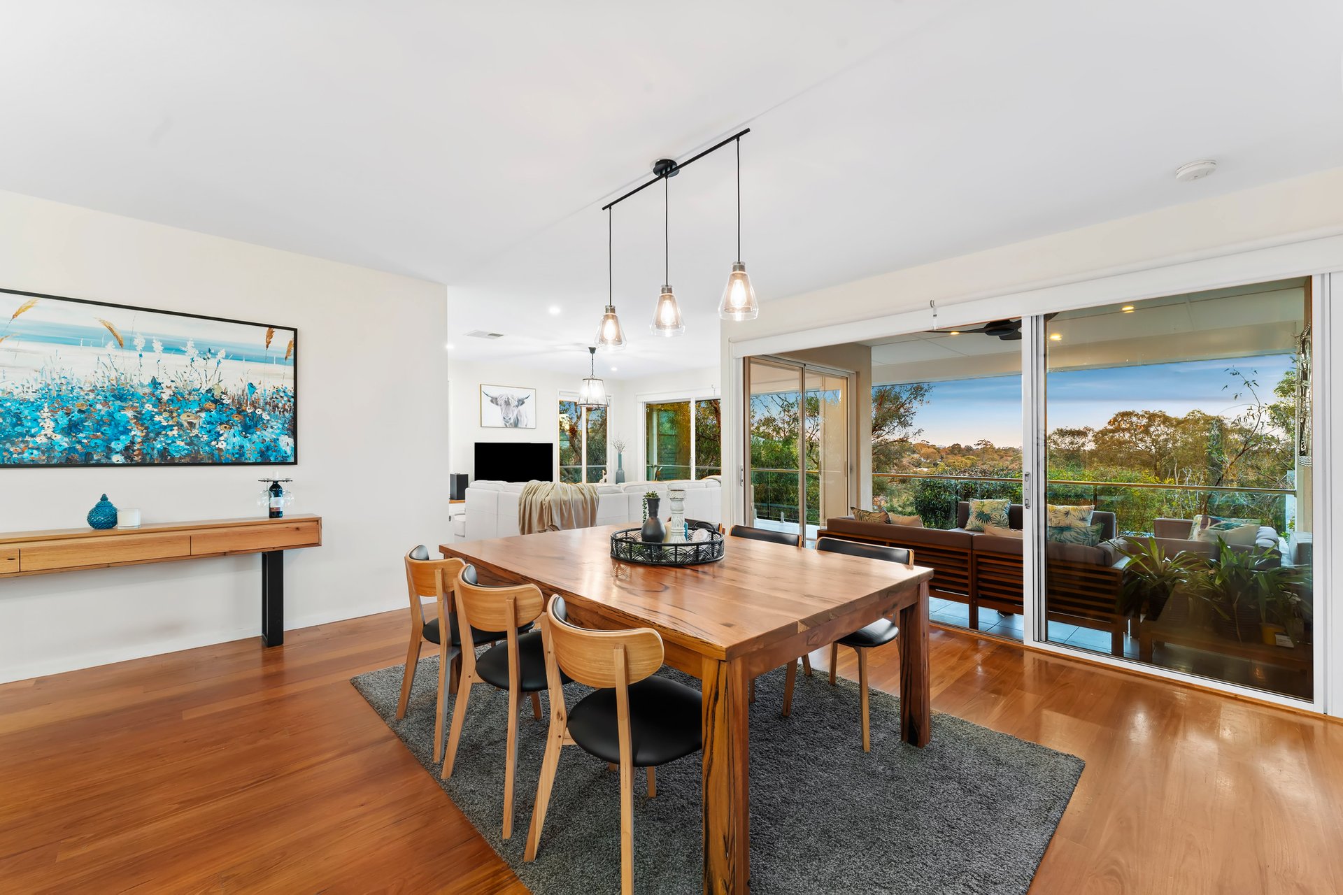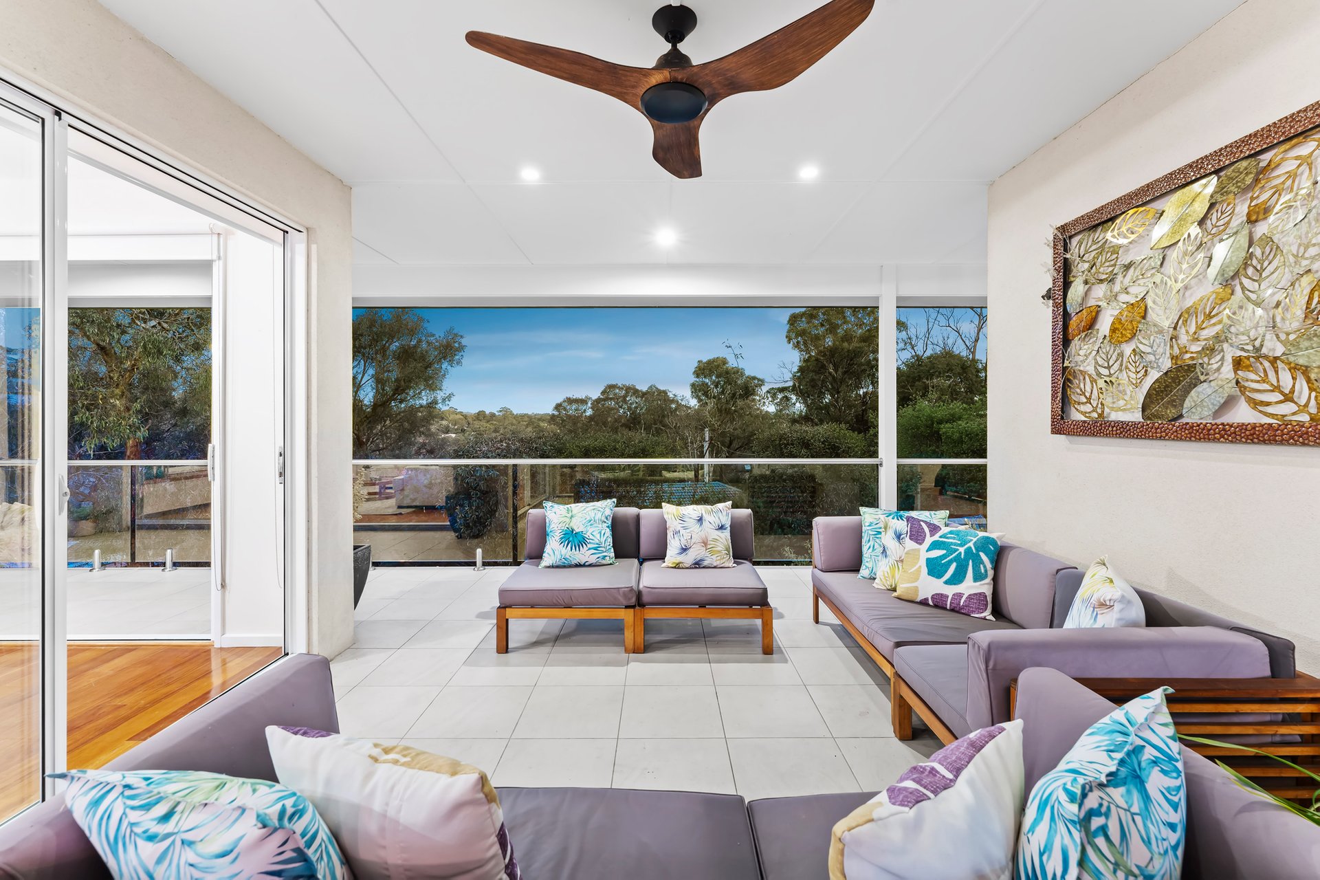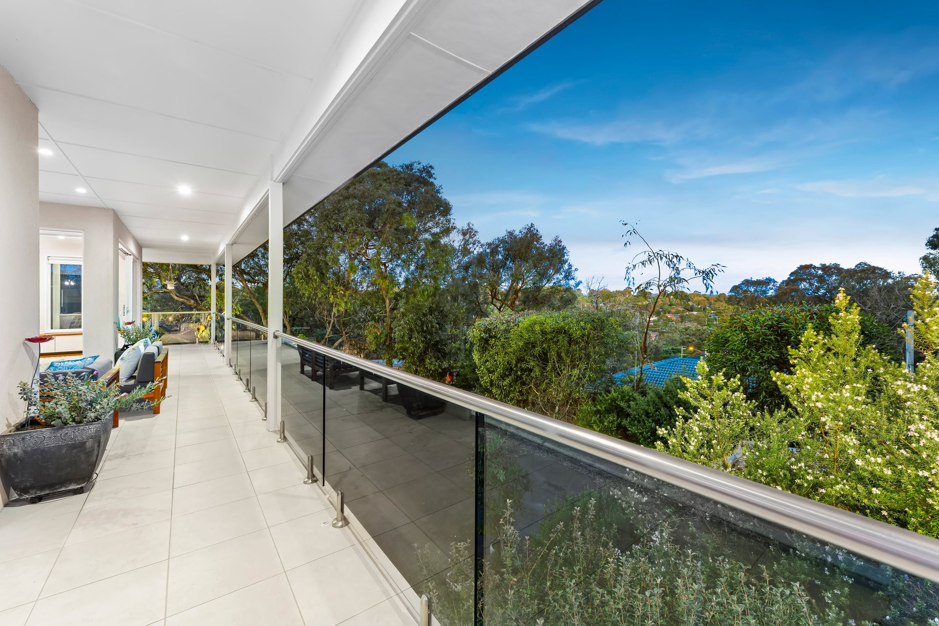 The low-maintenance home is a setting of space and warmth with amazing views, and an offering that is matched by a peaceful address close to a wonderful raft of amenities. Cleverly zoned for family harmony, the home cascades across two uncompromising levels. Upon entry, a foyer with high ceilings and statement lighting welcomes guests and leads to a versatile study, an expansive zone including dining and stunning lounge room, from here, head outside to discover the sheltered alfresco area with ceiling fan, all complemented by a sophisticated gourmet kitchen with high-end finishes and a walk-in pantry designed for effortless indoor-outdoor entertaining. With plenty of room for relaxation, special gatherings and everything in between, you can enjoy far-reaching views across the treetops from all aspects of this this open plan masterpiece. The beautifully appointed master suite with designer ensuite, dressing room/robe and split system heating/cooling are highlights, along with the balcony and expansive views from here too. Continuing on this level are the remaining three bedrooms—with bespoke wardrobes—and a stylish family bathroom. An entertaining zone/rumpus/family room which leads out to another dining alfresco area completes this level with an enchanted garden and firpit adding to the charm.
