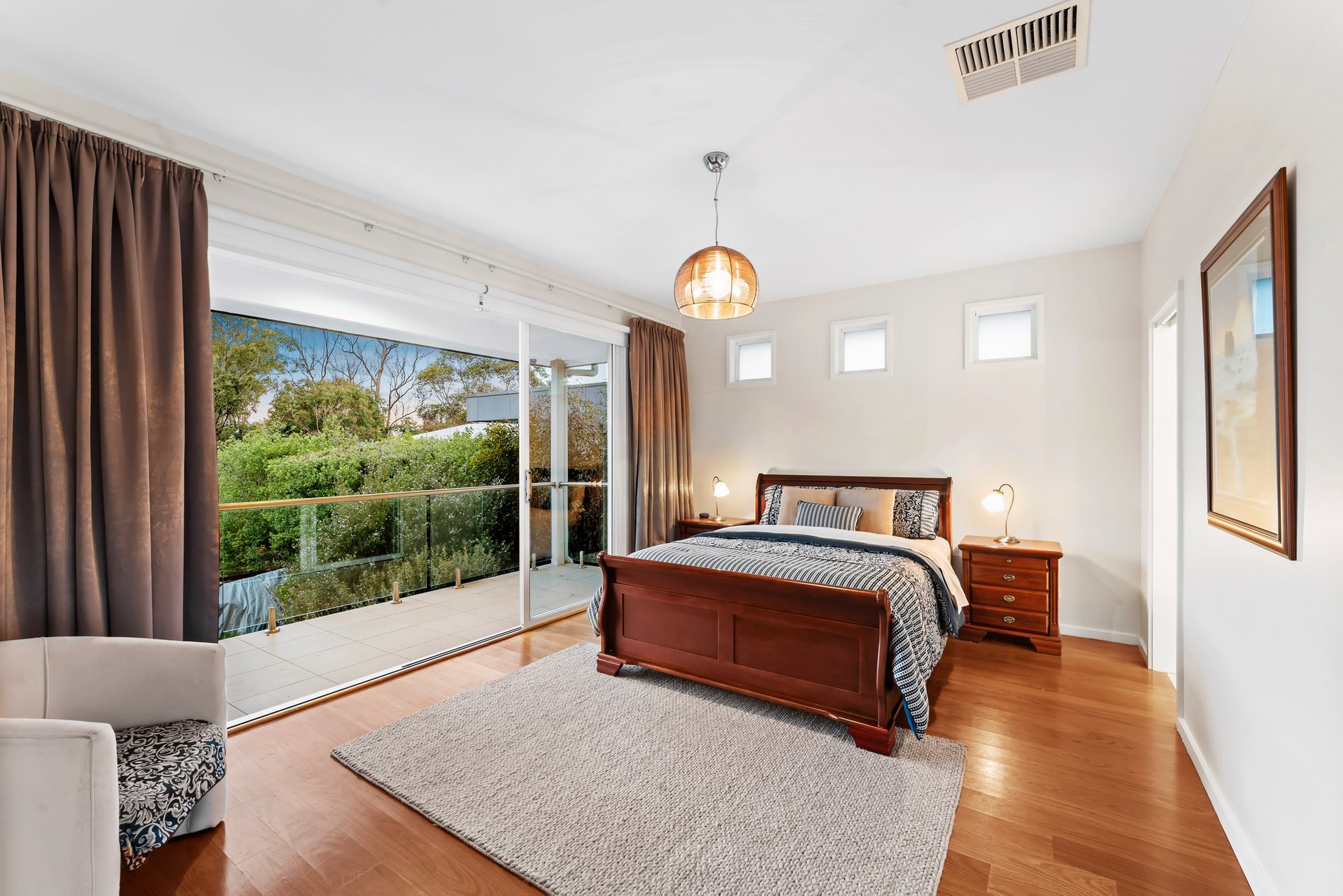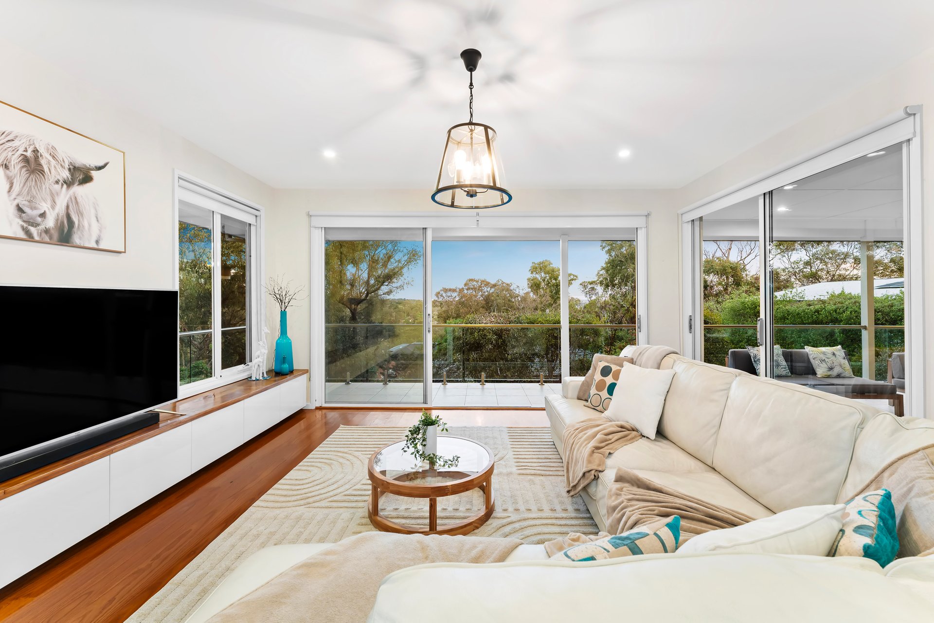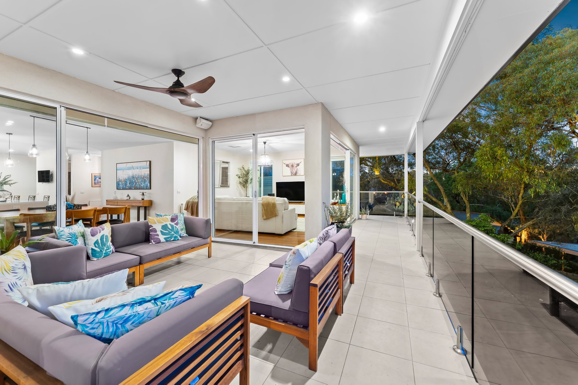 The low-maintenance home is a setting of space and warmth with amazing views, and an offering that is matched by a peaceful address close to a wonderful raft of amenities. Cleverly zoned for family harmony, the home cascades across two uncompromising levels. Upon entry, a foyer with high ceilings and statement lighting welcomes guests and leads to a versatile study, an expansive zone including dining and stunning lounge room, from here, head outside to discover the sheltered alfresco area with ceiling fan, all complemented by a sophisticated gourmet kitchen with high-end finishes and a walk-in pantry designed for effortless indoor-outdoor entertaining. With plenty of room for relaxation, special gatherings and everything in between, you can enjoy far-reaching views across the treetops from all aspects of this this open plan masterpiece. The beautifully appointed master suite with designer ensuite, dressing room/robe and split system heating/cooling are highlights, along with the balcony and expansive views from here too. Continuing on this level are the remaining three bedrooms—with bespoke wardrobes—and a stylish family bathroom. An entertaining zone/rumpus/family room which leads out to another dining alfresco area completes this level with an enchanted garden and firpit adding to the charm.