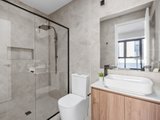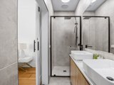 The evocative entry hall leads to the master bedroom, which features a stunning ensuite with floor-to-ceiling tiling, double ceramic countertop basins, stone benchtop and ample stone storage. A second generous bedroom opens to a central decked courtyard. The two upstairs bedrooms (one of which has its own sunny private balcony) are serviced by an equally opulent bathroom.