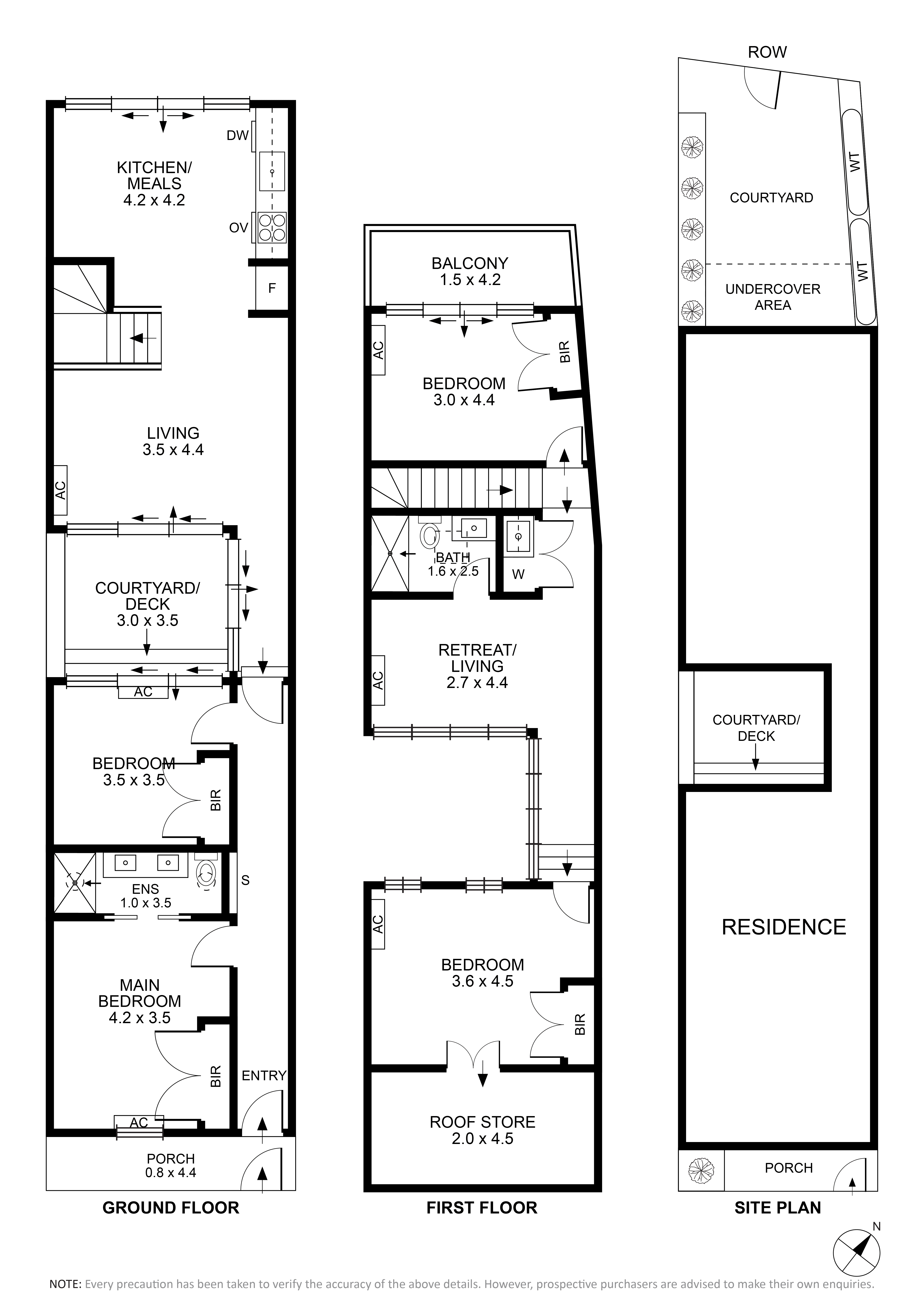 The living room opens onto the courtyard decking for easy indoor-outdoor flow, while the kitchen and meals area extends to a private north-facing courtyard, creating a relaxed space for entertaining guests or enjoying quiet outdoor moments.