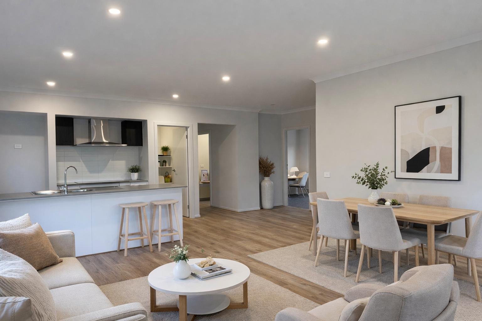 Thoughtfully designed with a functional floorplan, the home features a spacious open-plan kitchen, meals and family zone that forms the heart of the property. The contemporary kitchen is complete with a walk-in pantry, island bench and ample storage, making it perfect for everyday living and entertaining.