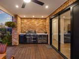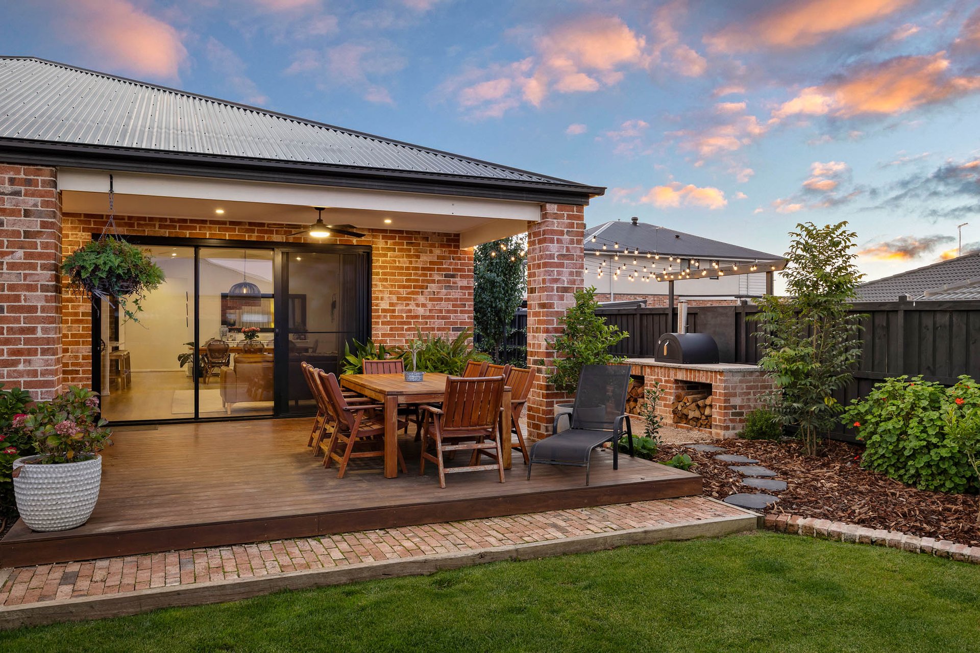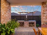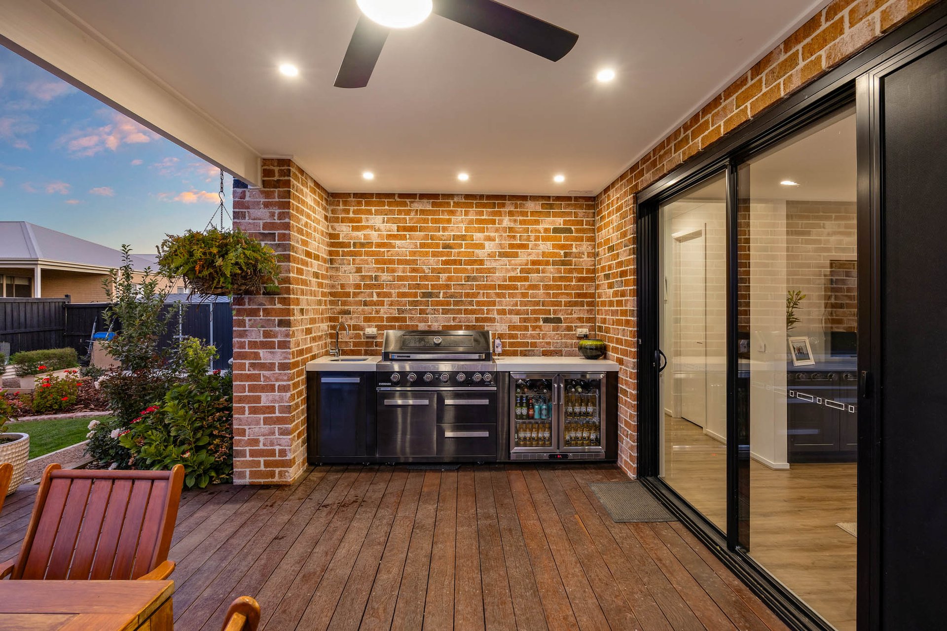 A home theatre/lounge provides further flexibility, equally suited as an oversized home office or study. Interiors transition seamlessly to a covered alfresco domain, where wide Merbau decking, an exterior fan, TV points, and an inbuilt Everdure BBQ with stone servery and bar fridge establish a highly functional entertaining environment. A Matador wood-fired pizza oven further enhances the outdoor offering.