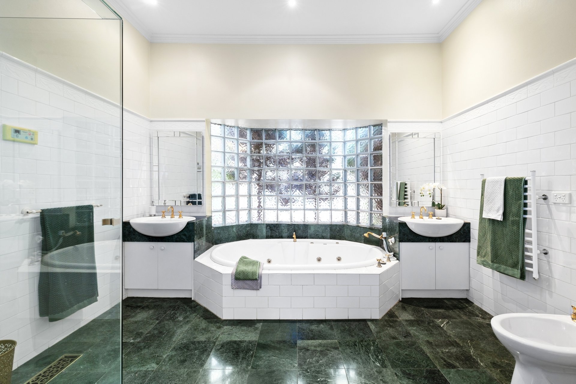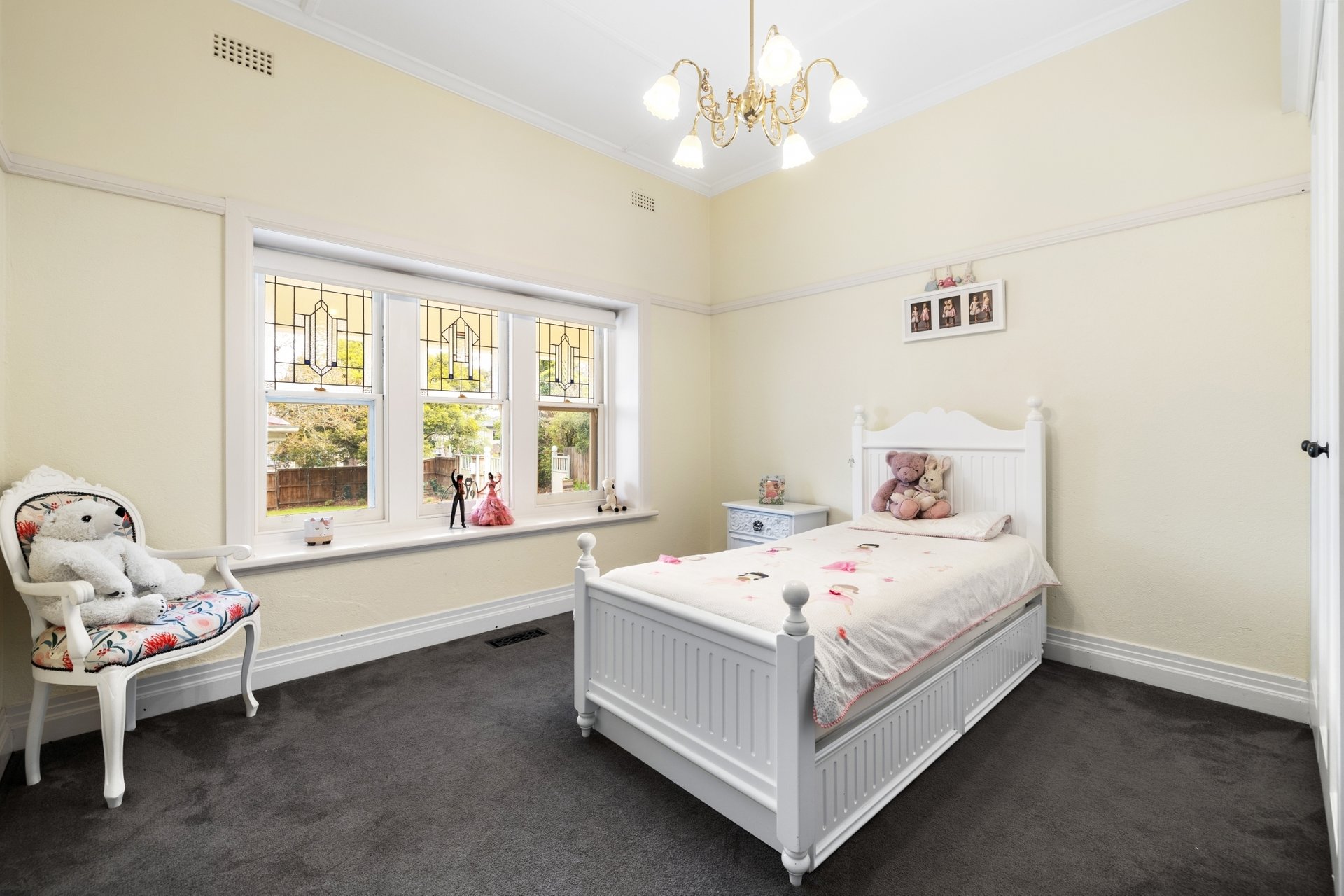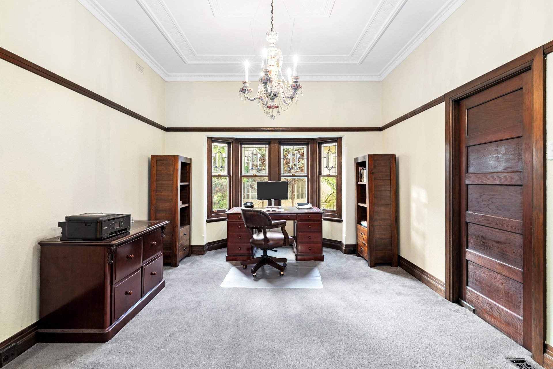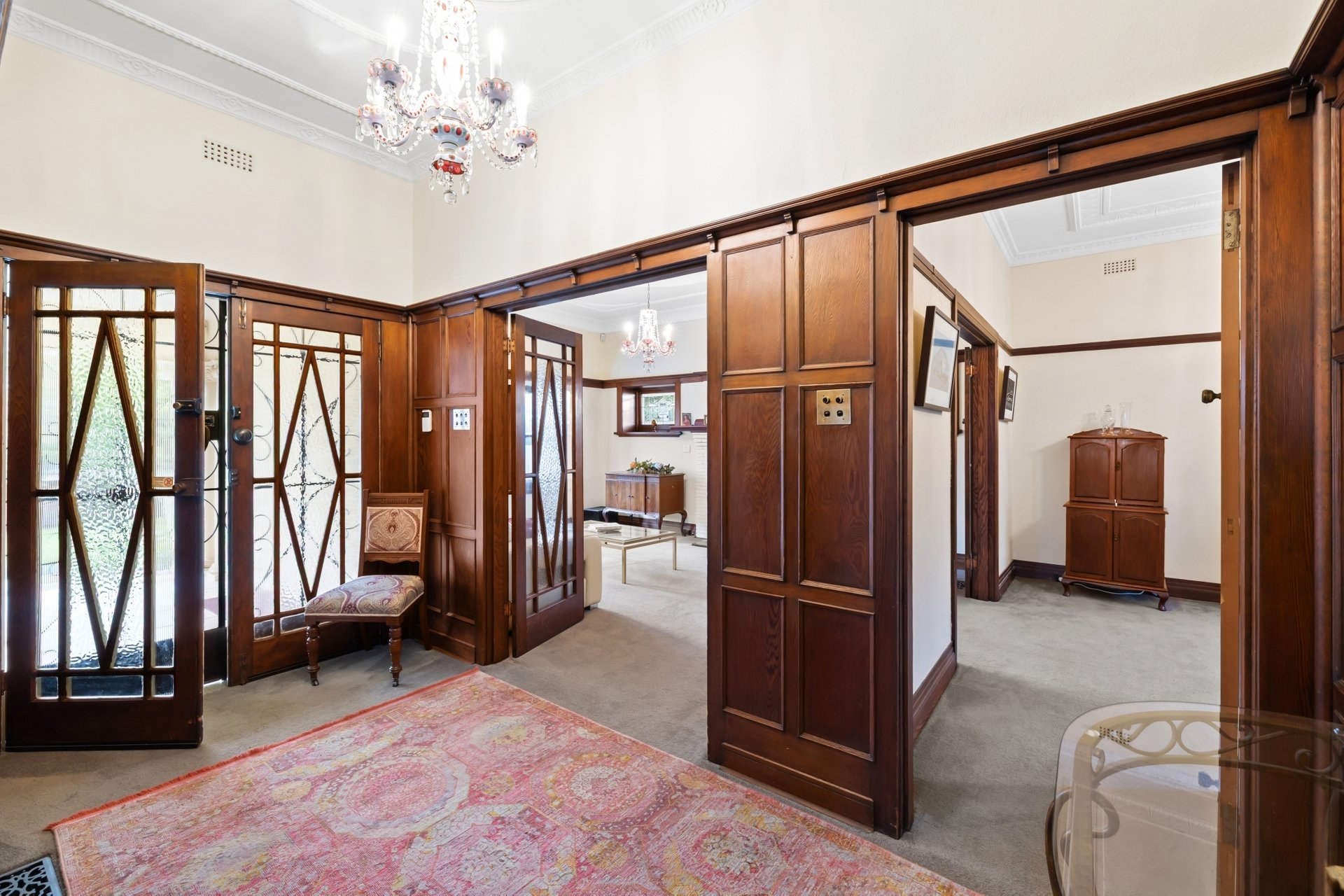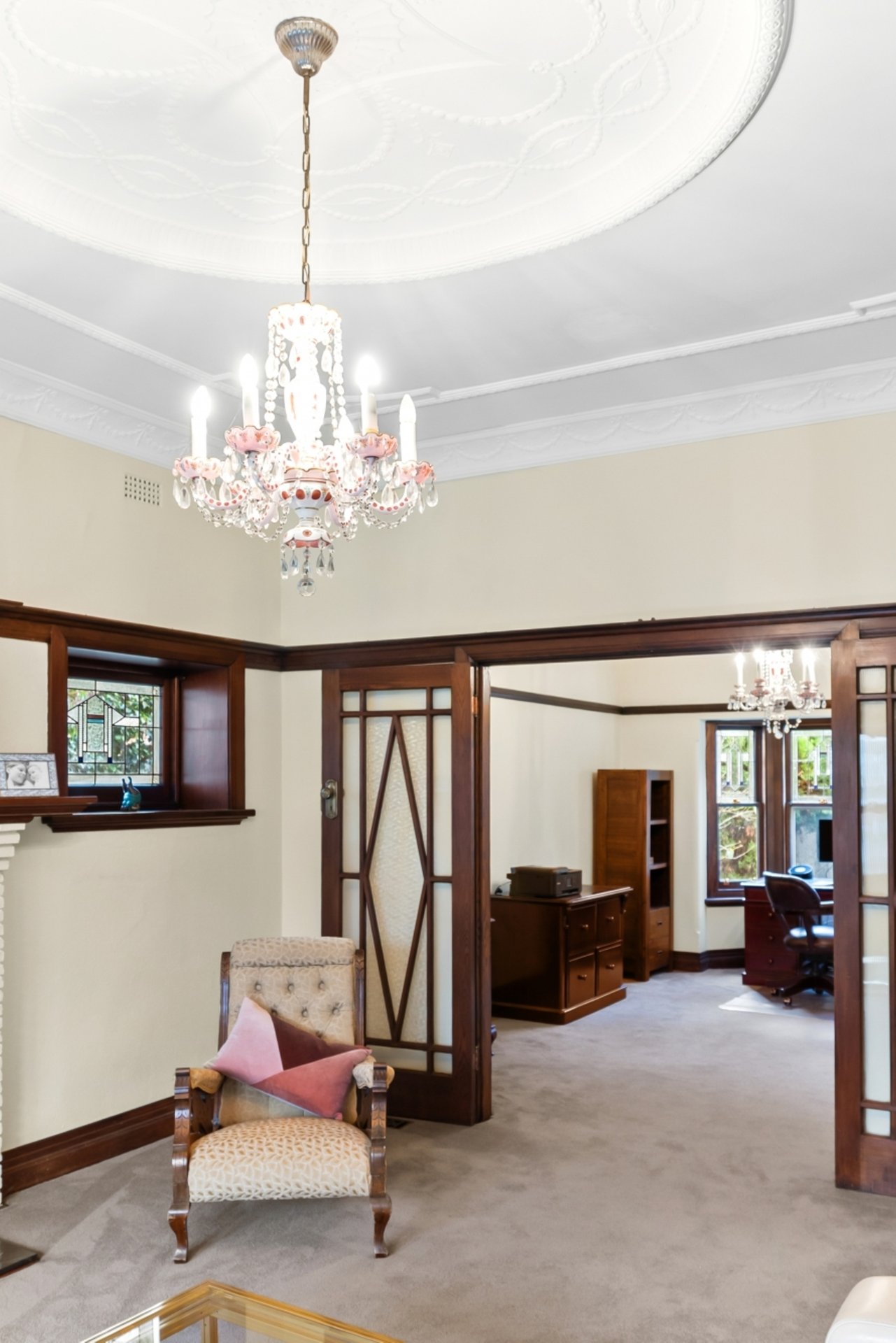 Set back behind automatic gates, the incredibly private residence, fronted by a magnificent entrance, makes an unforgettable impression. Double brick construction, leadlight-adorned bay windows, a timber-panelled entry and 10-foot ornate ceilings all speak to its early 20th-century pedigree, while a sympathetic renovation has expanded its footprint to suit the needs of a growing family.