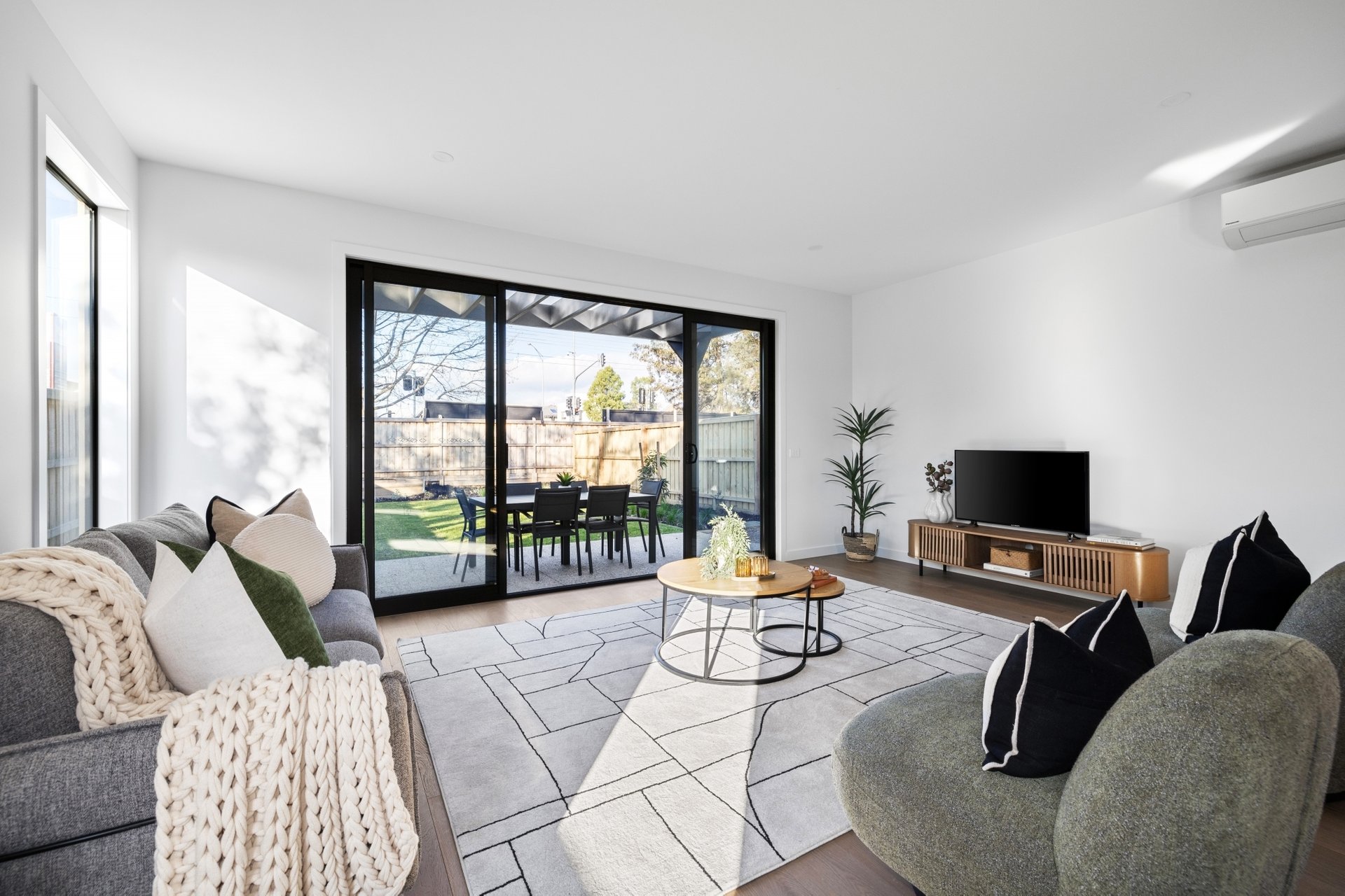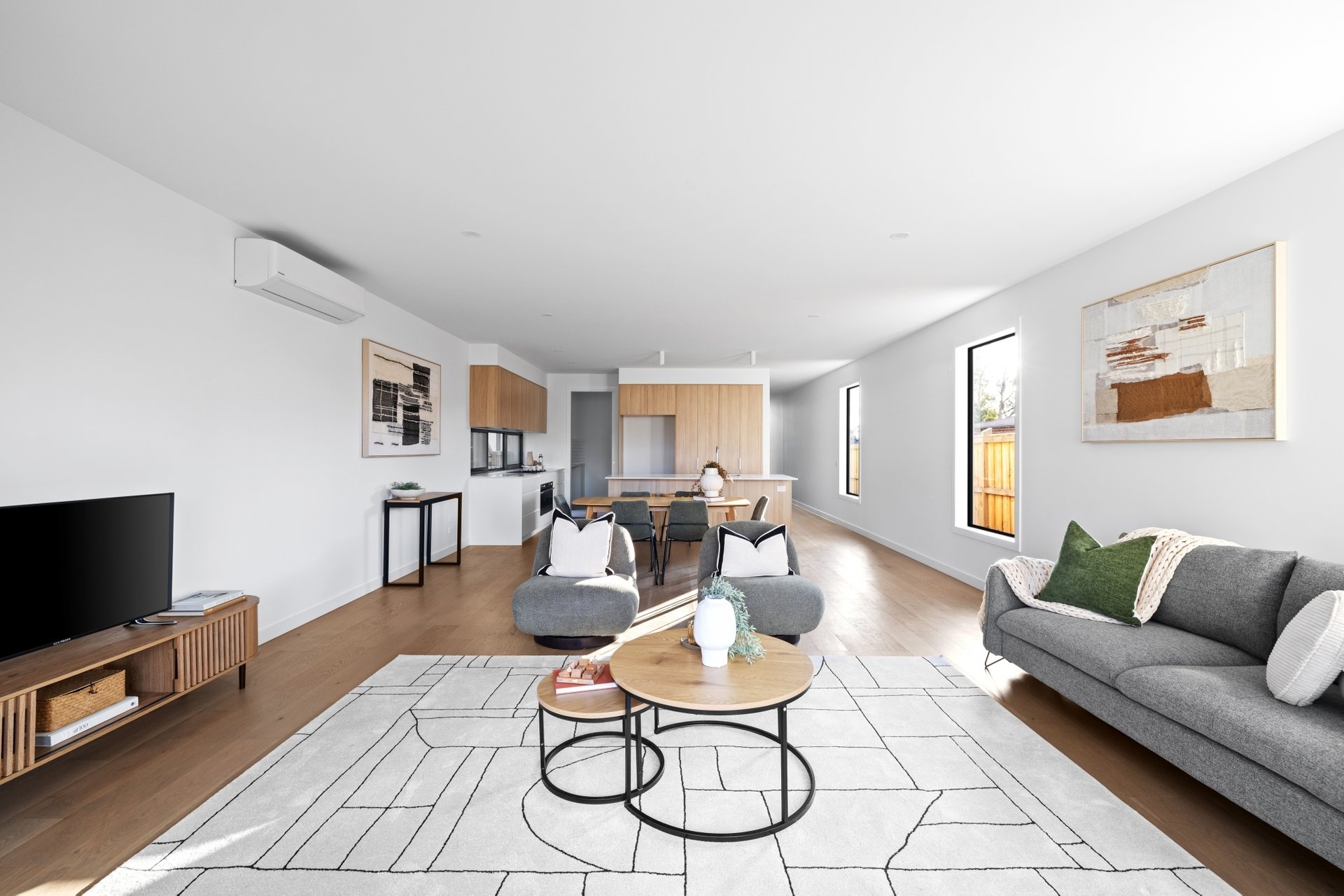 - Open plan living/dining rooms