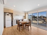 Two generously sized bedrooms, each with built-in robes, offer peaceful retreat, while the modern bathroom flaunts a stone-topped vanity, soft grey tiling underfoot, and a pristine shower. Additional features include privacy blinds, split system heating and cooling, and a secure car space on title.