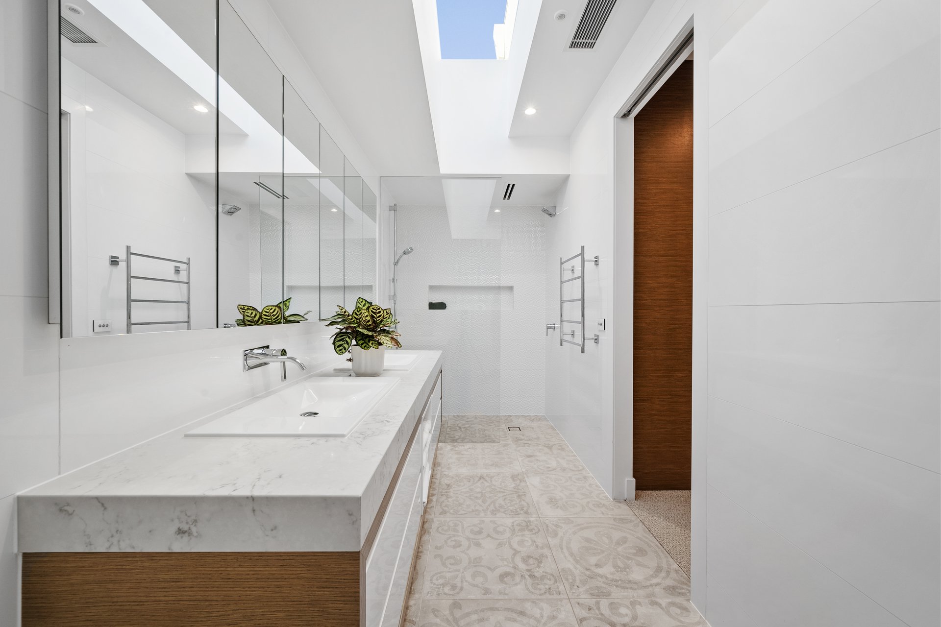A sanctuary of indulgence, the ground-floor master suite enjoys private garden access, a custom dressing room, and a skylit ensuite of exquisite design. Upstairs, two additional suites each feature private walk-in robes, a stunning central bathroom, and a guest retreat with its own dressing table and balcony. Living spaces are equally impressive, from the serene sitting room to the expansive open-plan domain where family life and entertaining unfold.