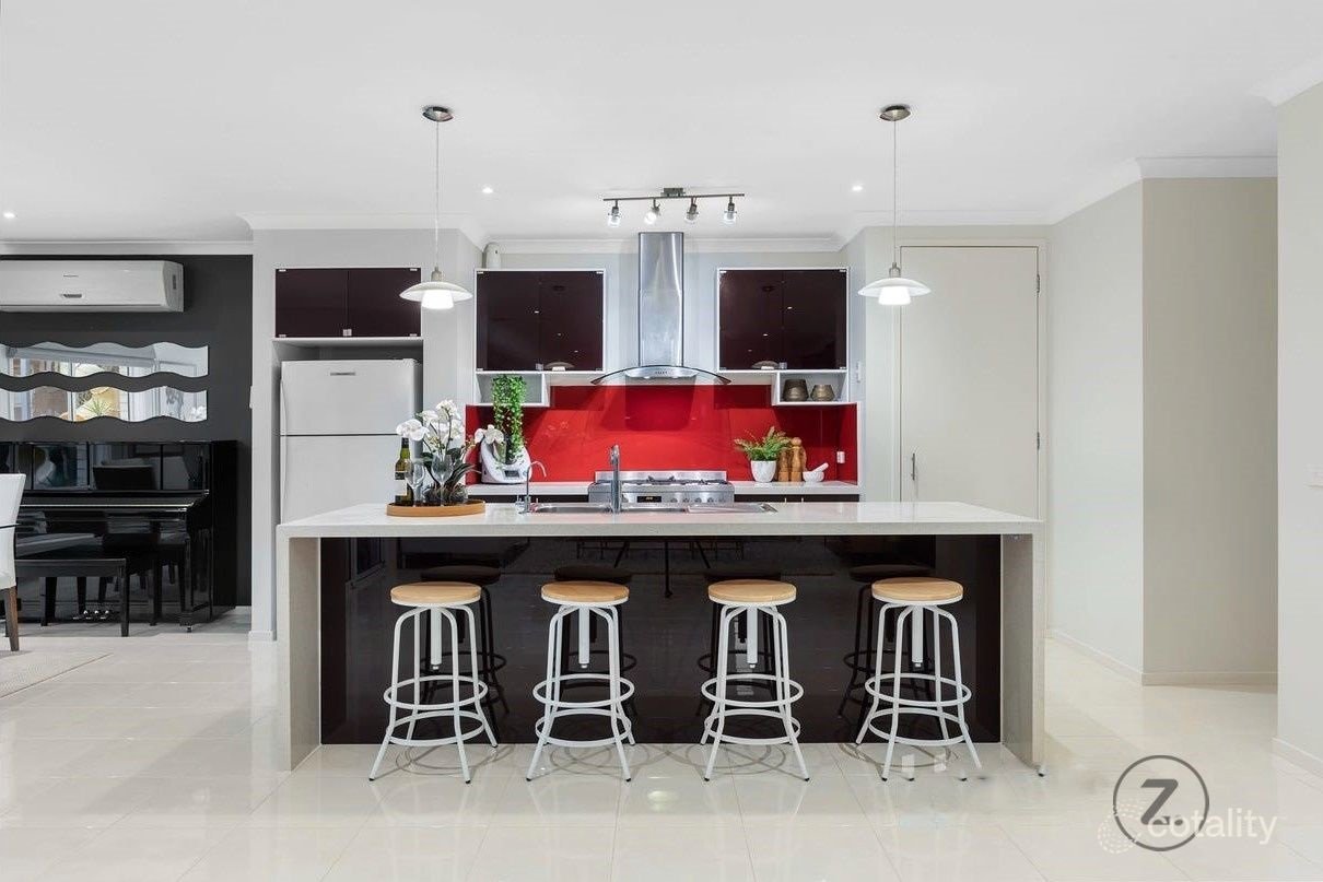 At the heart of the home are multiple living zones, including a dedicated home theatre, ideal for entertaining or relaxing in comfort. The open-plan living and dining areas flow seamlessly to a welcoming alfresco space, overlooking a beautifully landscaped backyard—perfect for outdoor dining and weekend enjoyment.