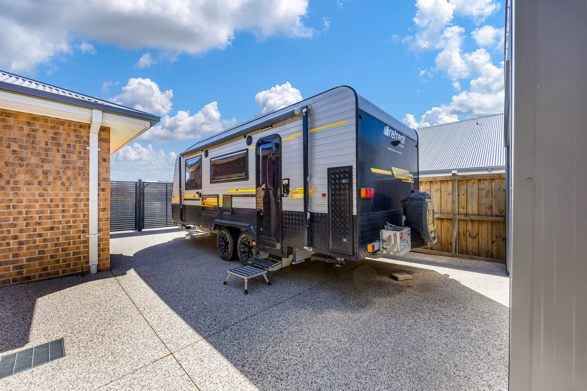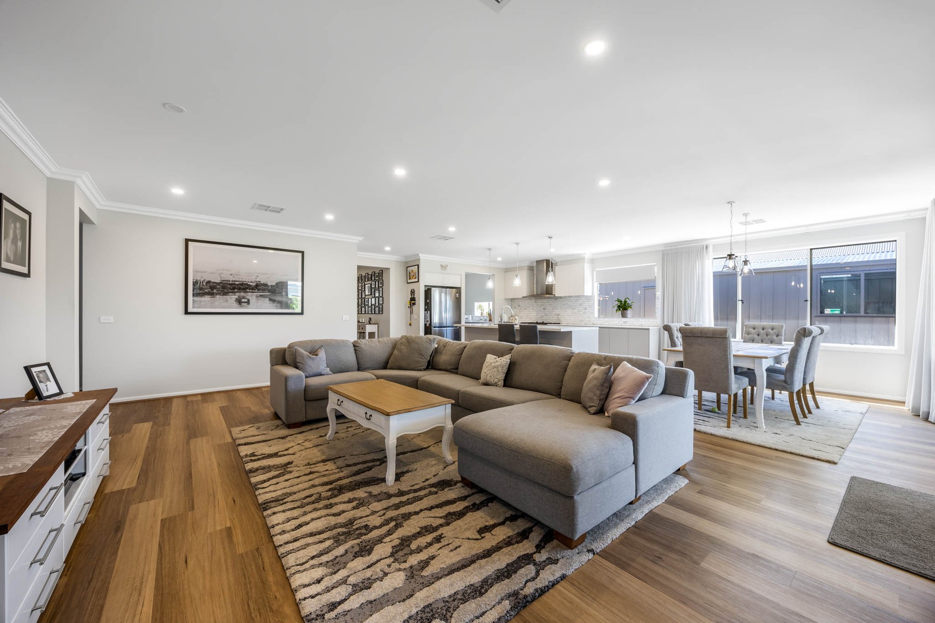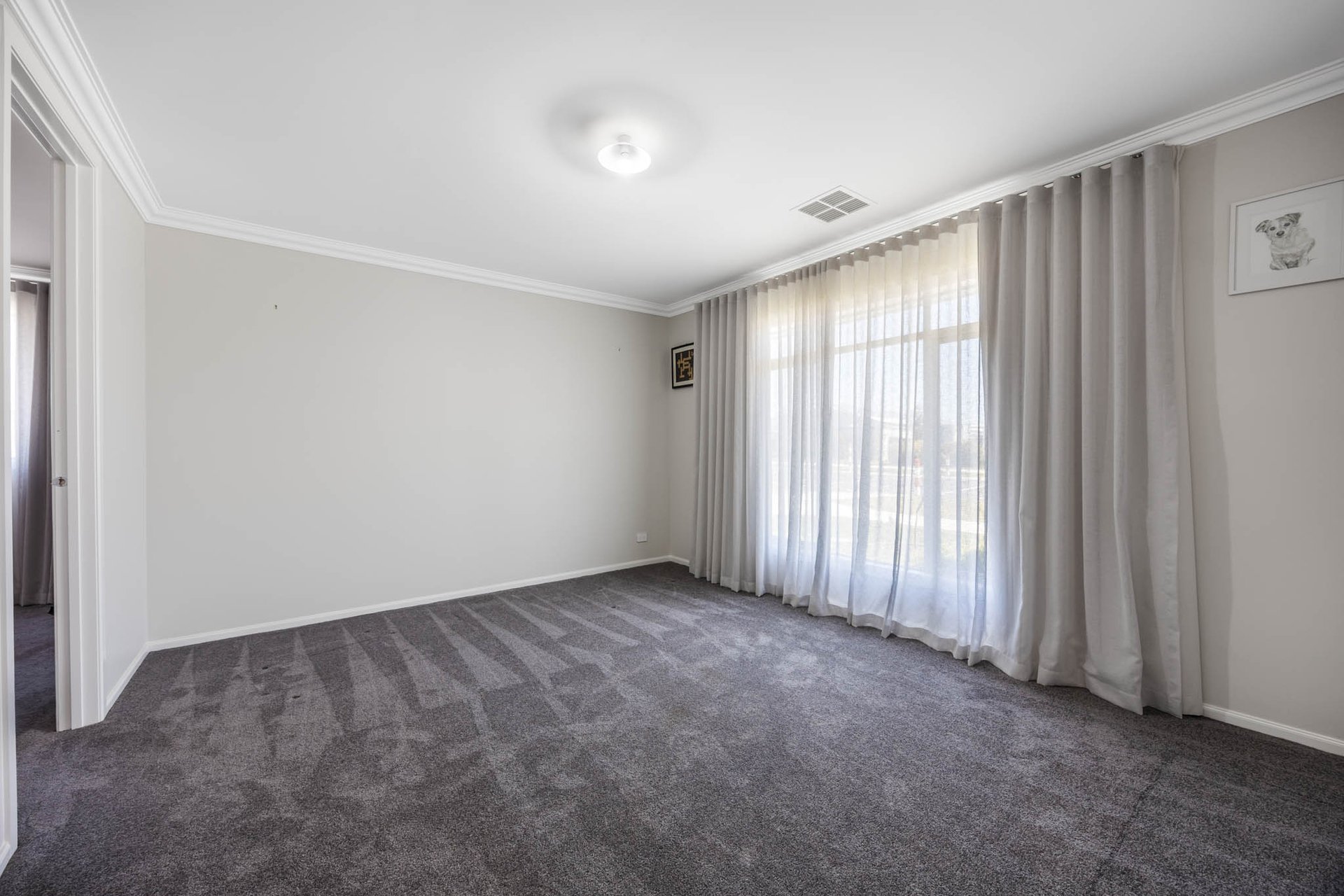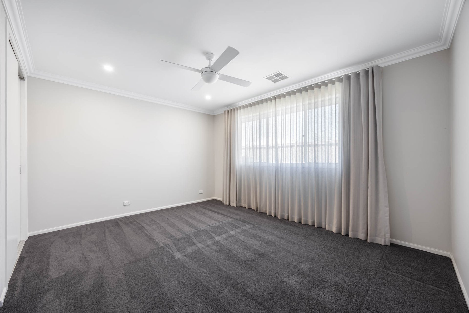 Practical excellence continues with an integrated remote-controlled double garage complemented by a gated side driveway to an aggregate-concrete driveway ideal for caravan or boat parking. A large, powered shed with a roller door and separate workshop room suits trades or hobbyists, and the corner allotment provides additional side gated access off Cotton Circuit. Further features include ducted heating, refrigerated cooling, floor-to-ceiling sheers and quality drapes, a 5,000-litre water tank, and fully irrigated grounds.