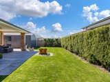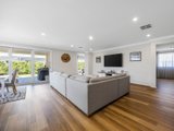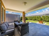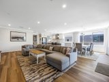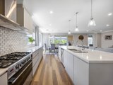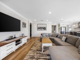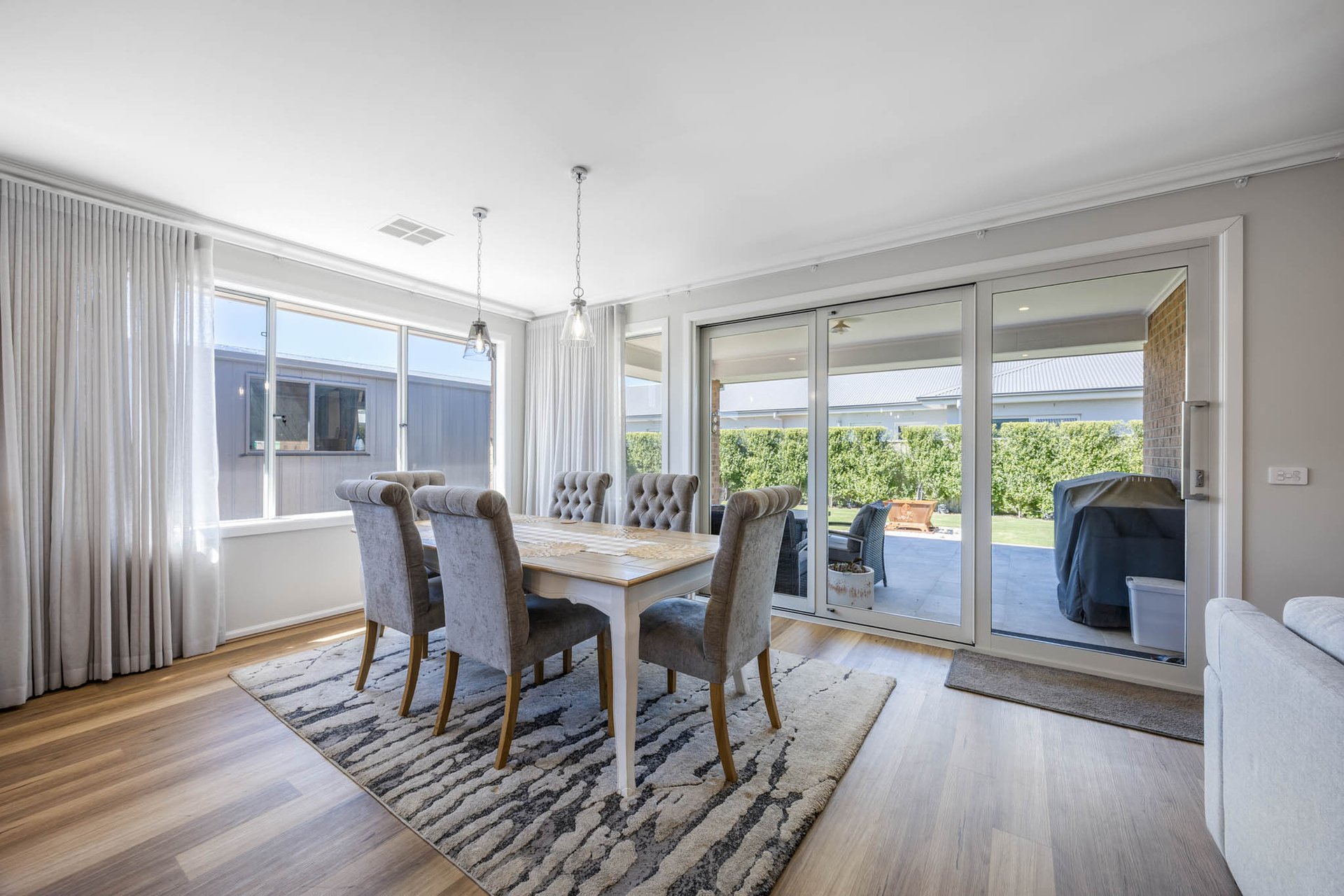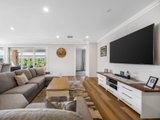 The adjoining dining and living domain connects via a trio of glass stacker sliding doors to a beautiful alfresco entertaining area, overlooking the private rear yard with trimmed Lilly Pilly hedging, a manicured lawn, and a fire-pit area.