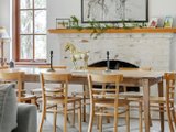 Living and dining area with a new combustion wood fireplace