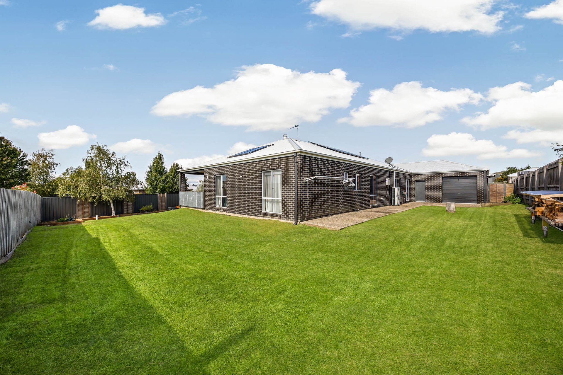 The landscaped grounds wrap around the 1,168m2 (approx.) corner allotment, with expansive lawns complemented by established plantings including apple, apricot, and pear trees, silver birch, berries, passionfruit, and productive vegetable and herb gardens.