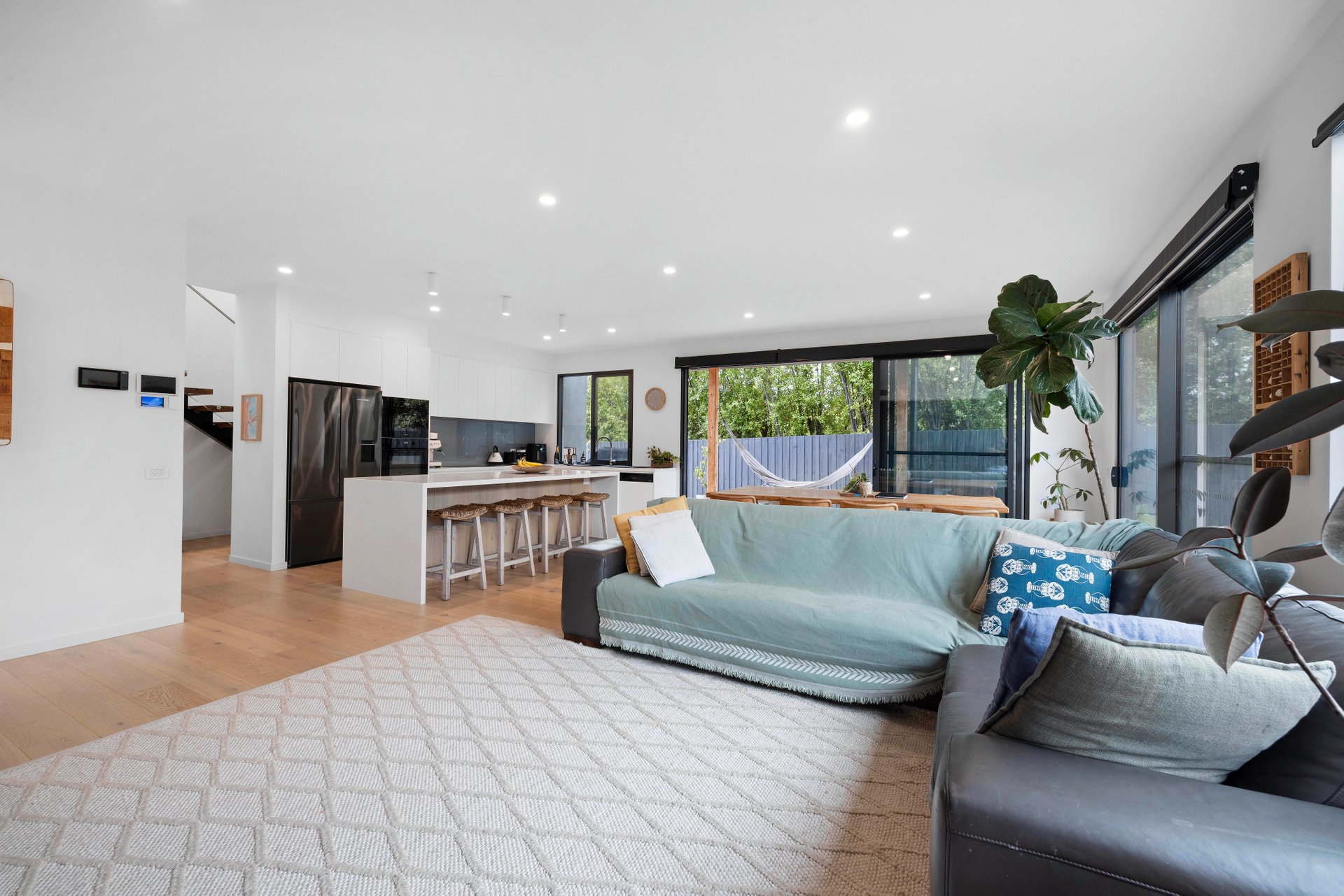 Step inside to discover an open-plan design that seamlessly connects the living, dining, and kitchen areas, all leading to a stunning alfresco deck. The main bedroom on the ground floor boasts a luxurious ensuite and walk-in robe, providing a private sanctuary. Upstairs, two additional bedrooms are complemented by a central bathroom and a second living area that opens onto a balcony, offering a perfect retreat for family or guests.