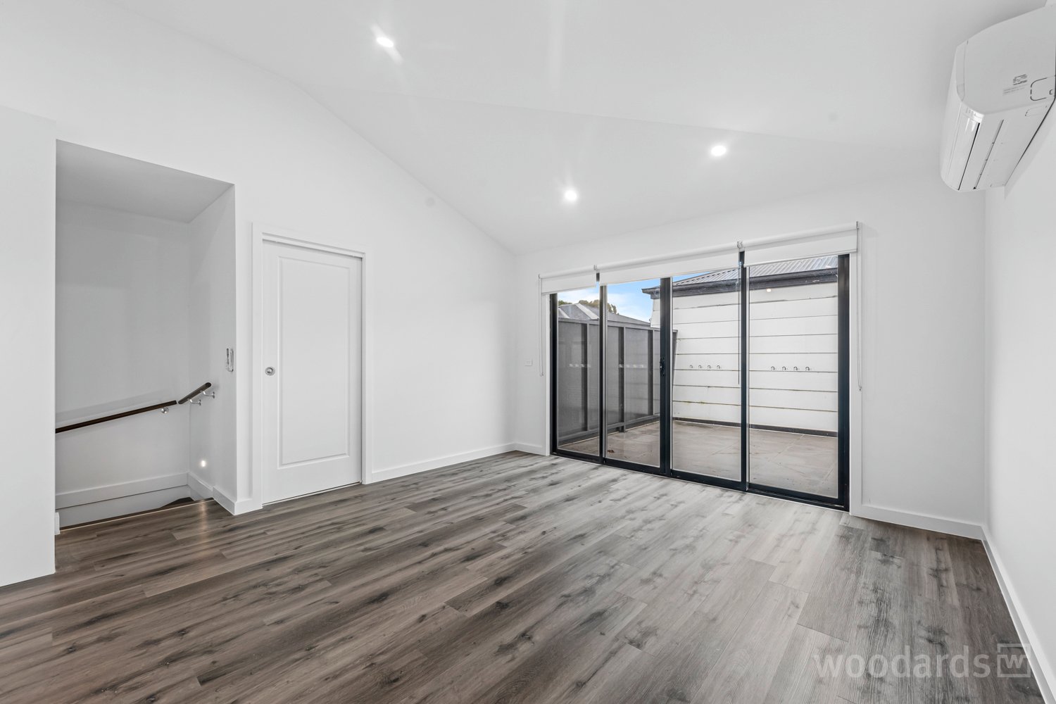 The open-concept living and kitchen area boasts sleek floorboards underfoot, complemented by another split-system heating/cooling unit. Here, you'll find an intelligently designed European laundry and a separate, luxuriously appointed central bathroom with contemporary finishes.