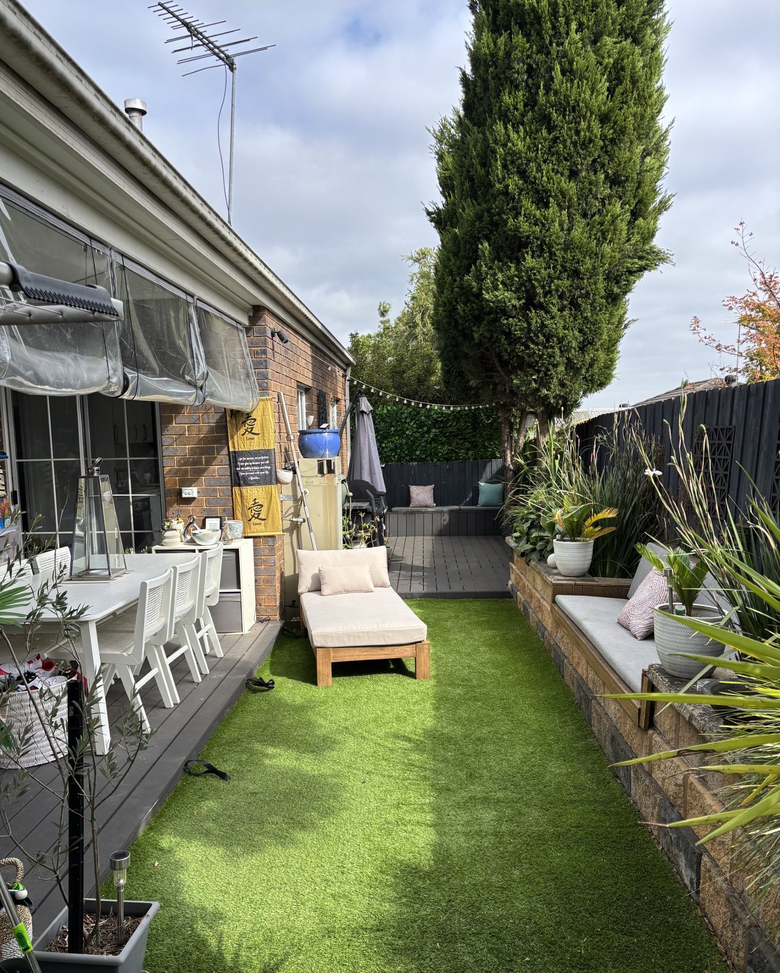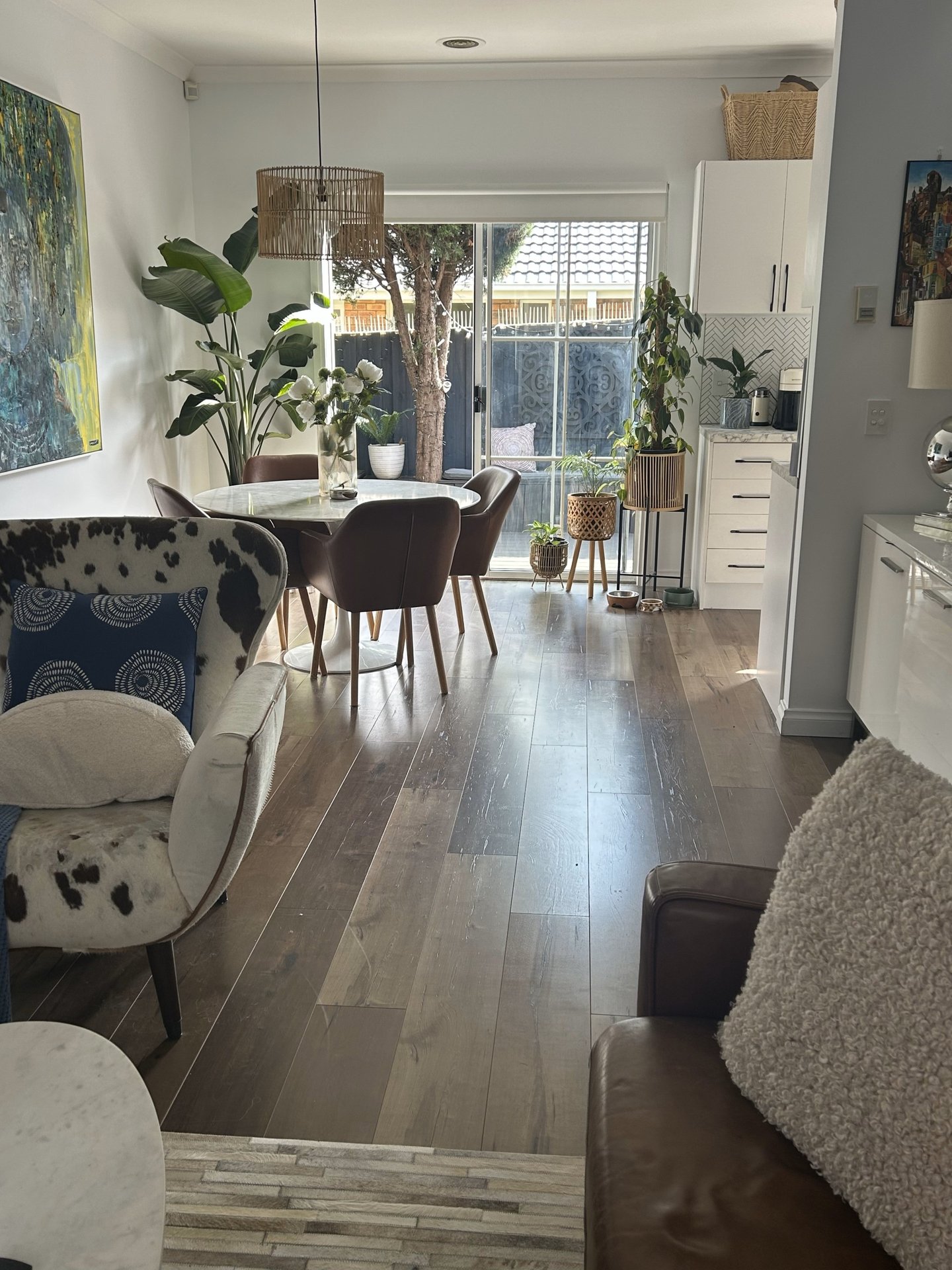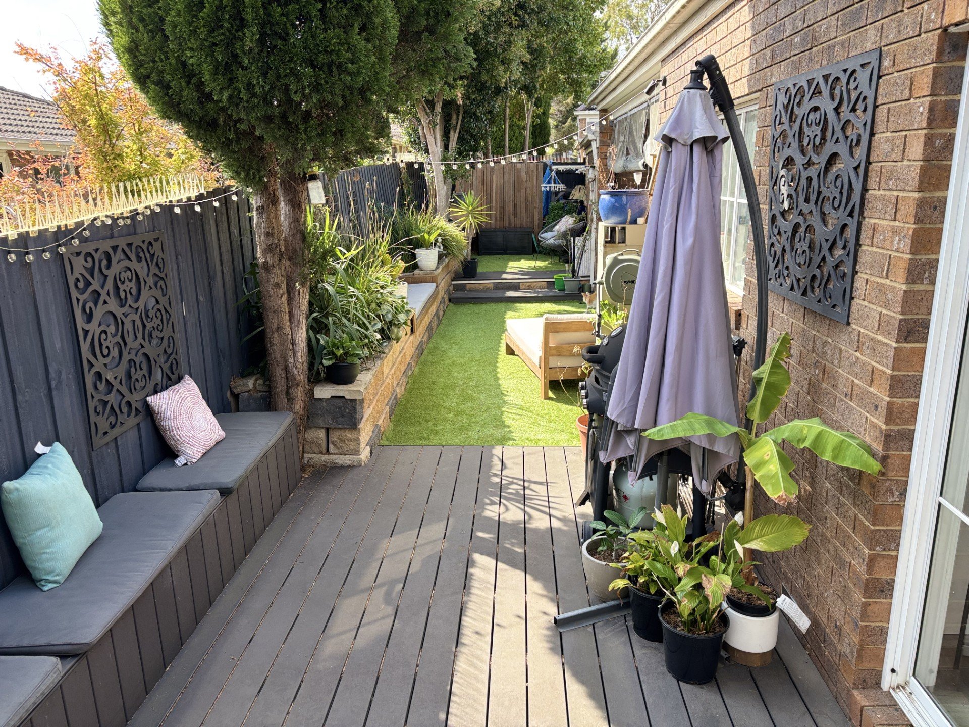 Tucked away in the middle of the complex and backing onto serene parklands, this home boasts a spacious and inviting living area that flows seamlessly into the dining space. Step through the sliding doors to a private, low-maintenance courtyard featuring built-in seating and roller blinds over the decking which is perfect for year round entertaining.