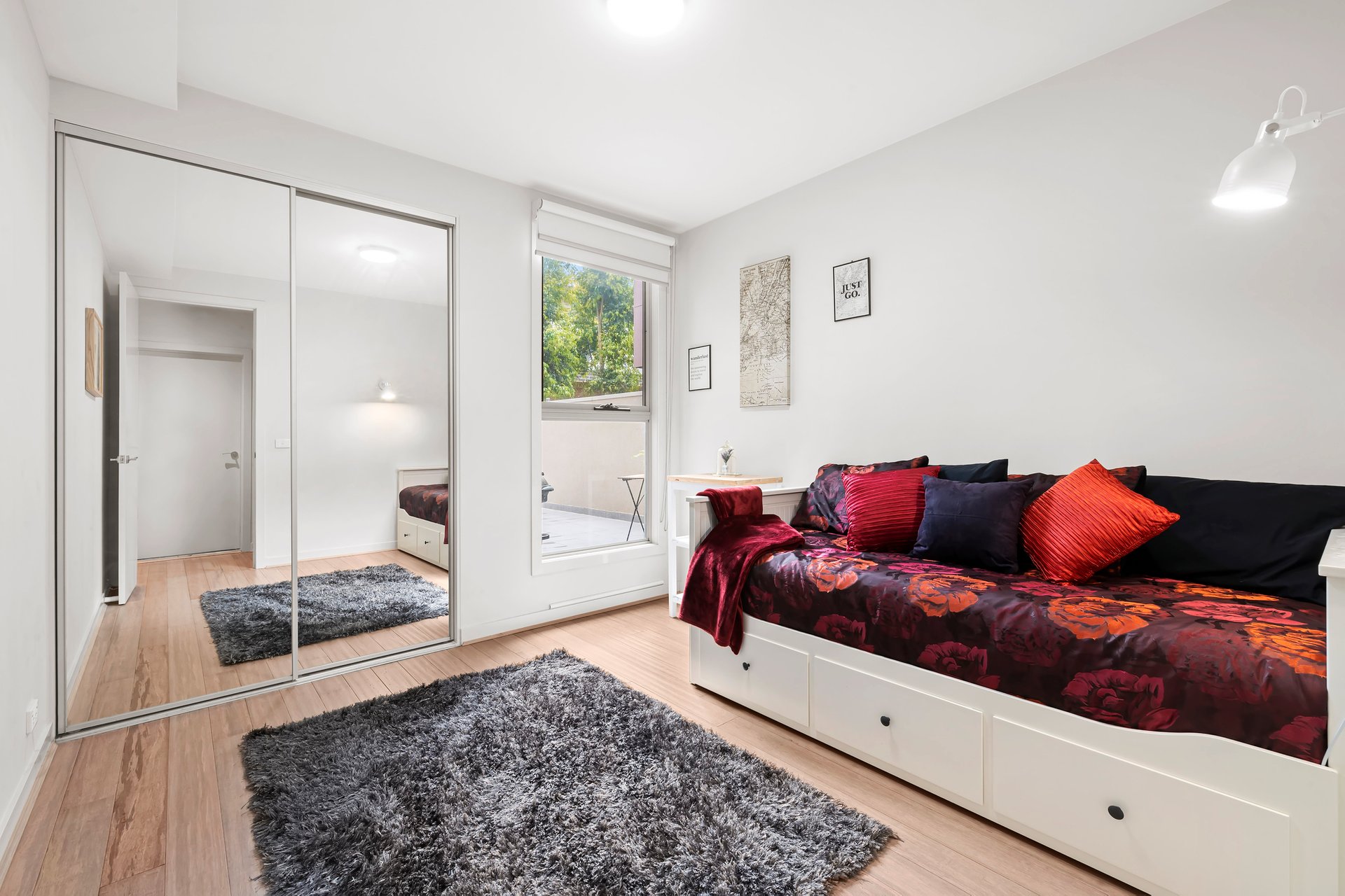 Beautifully appointed and cleverly designed, the apartment features two spacious bedrooms, two modern bathrooms, and a light-filled open-plan living and dining area that connects effortlessly to a rare private backyard — an inviting space for alfresco entertaining, relaxing weekends, or for those with pets and a love of the outdoors.