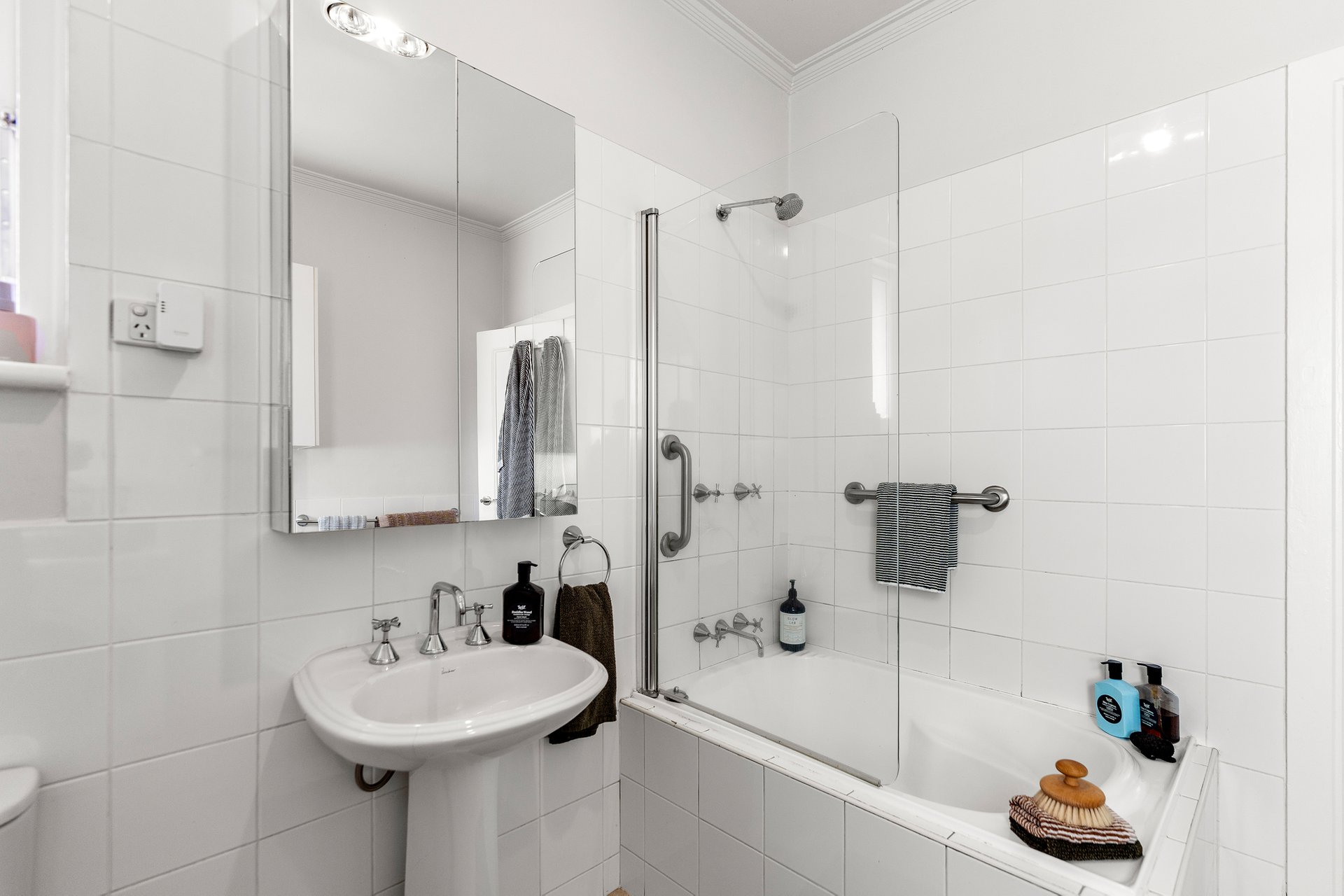 Upstairs, the accommodation continues the home’s sense of refinement. The generous main bedroom enjoys leafy outlooks and features bespoke custom wardrobes complete with dedicated jewellery storage and pull-out pant racks. Two additional bedrooms (or an optional study) are serviced by a central bathroom, while a newly introduced powder room on the lower level adds further convenience for guests and day-to-day living.