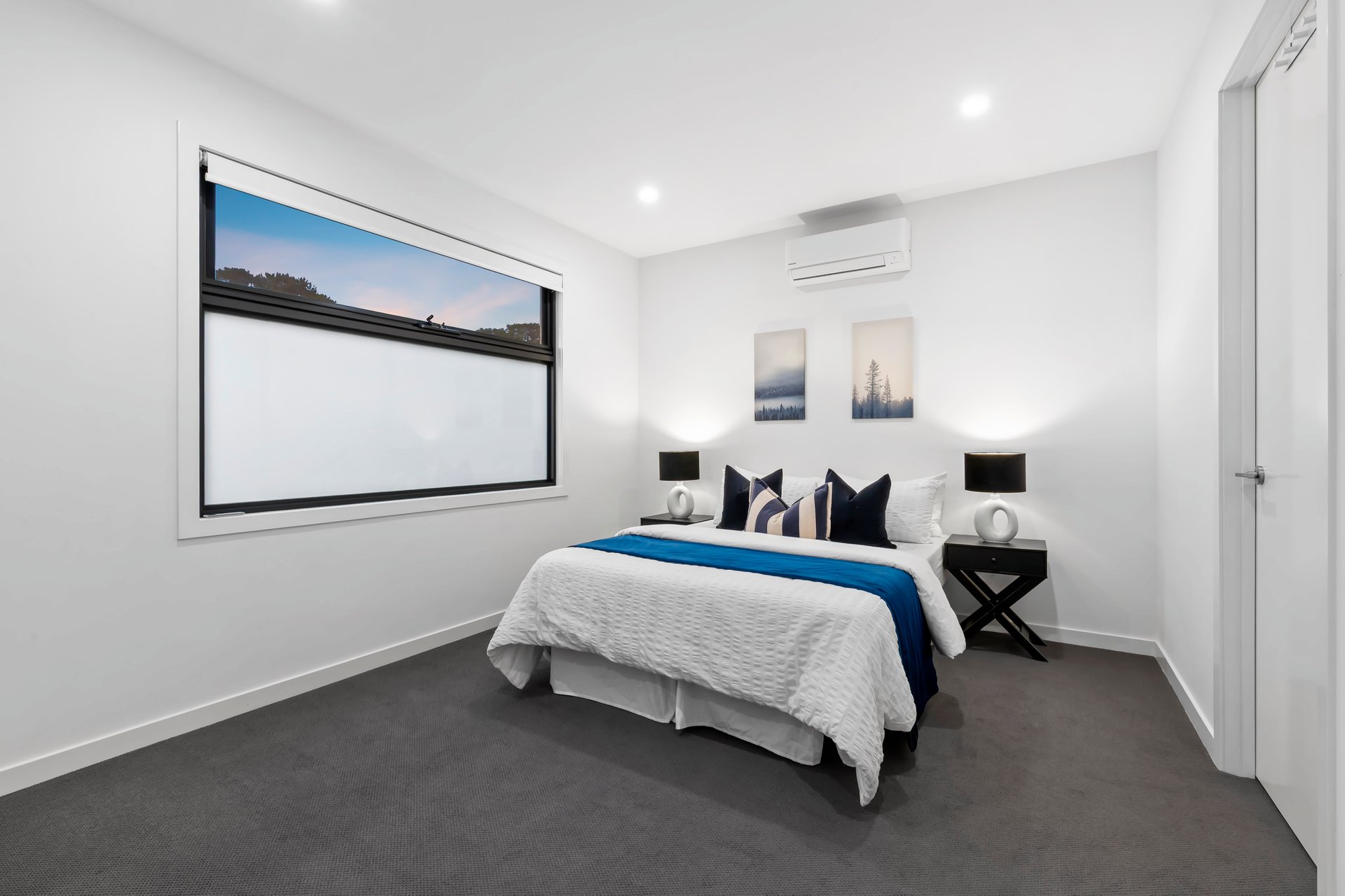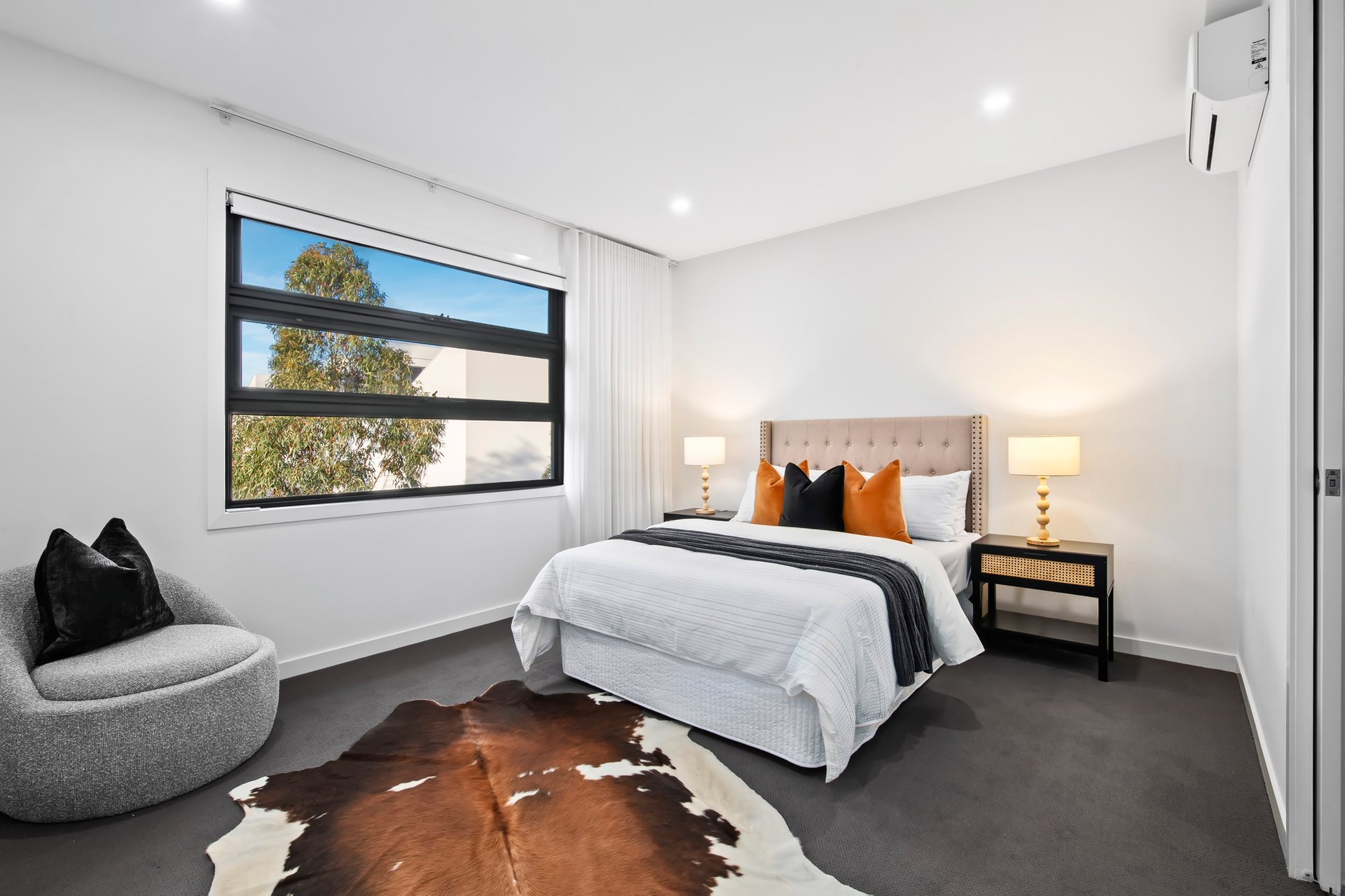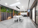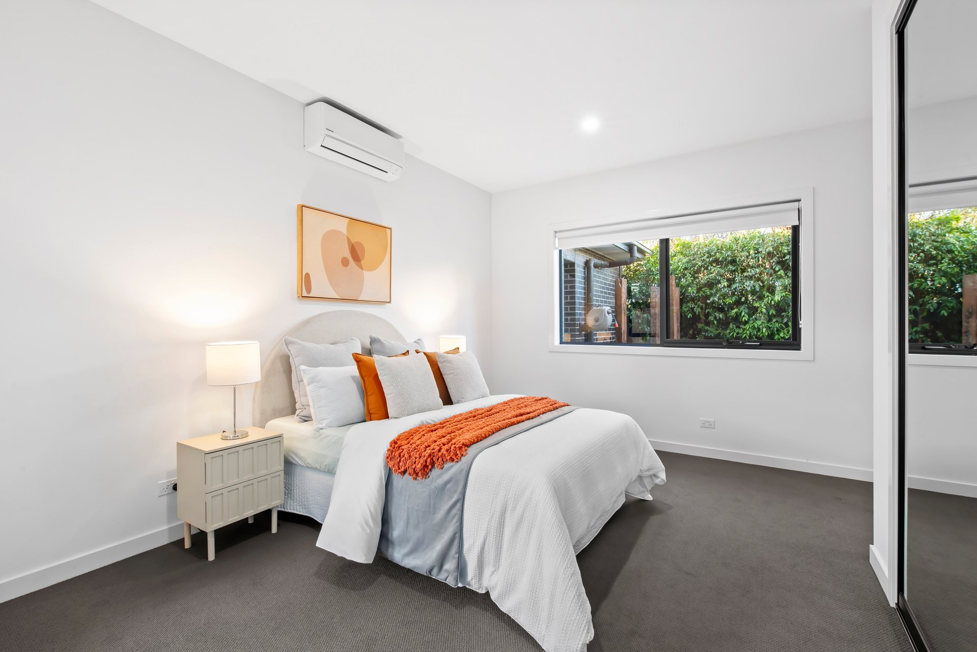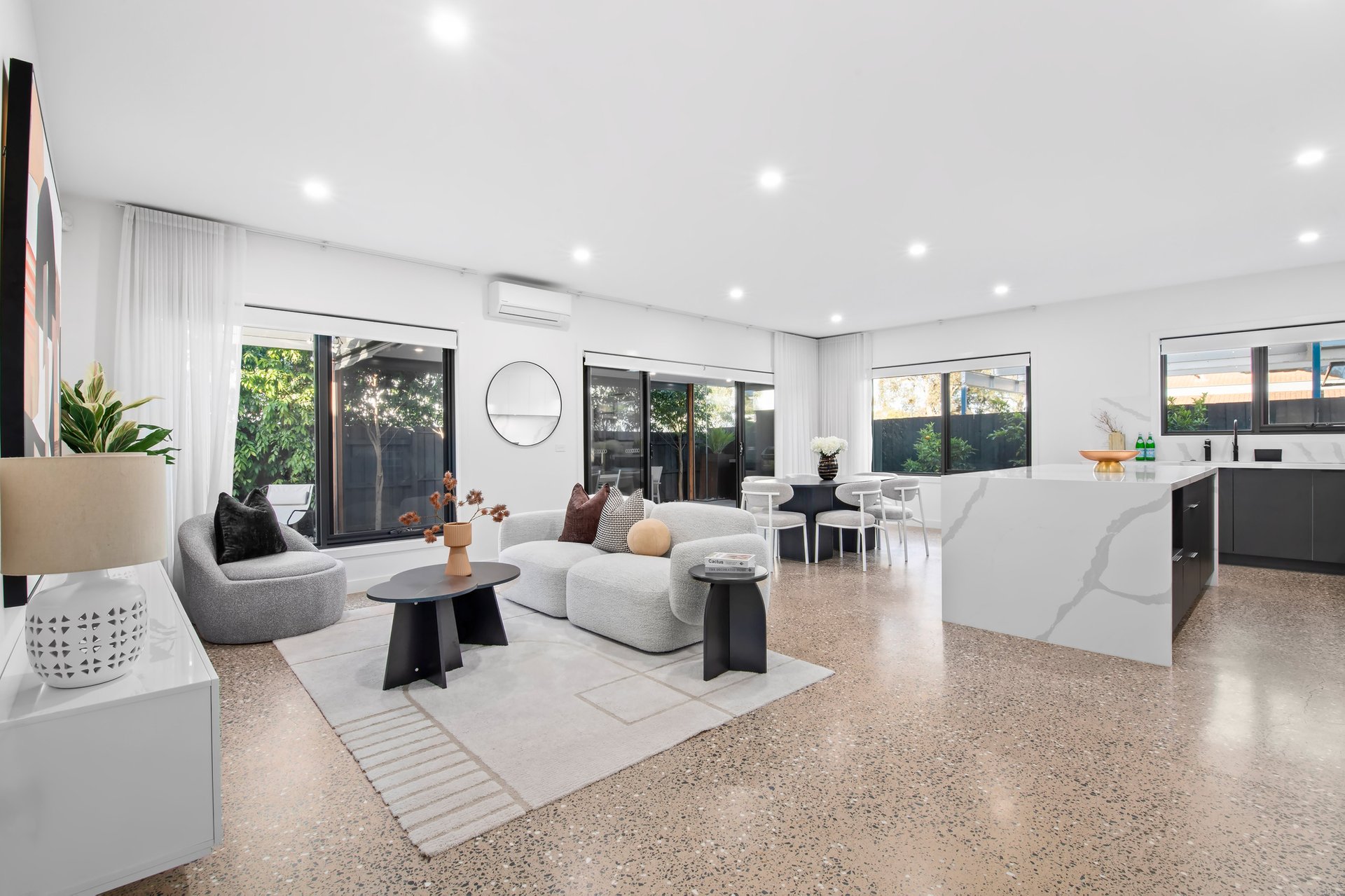 This architecturally refined townhouse delivers premium contemporary living with exceptional indoor–outdoor flow in a peaceful Nunawading position. Polished concrete floors and full-height glazing define the generous open-plan living zone, which extends effortlessly to a superb all-weather alfresco complete with electronic blinds, skylights and an integrated BBQ kitchen. Beyond the covered space, the landscaped rear garden reveals a tranquil fire-pit retreat surrounded by curated stonework and lush plantings, creating a rare outdoor sanctuary for year-round enjoyment.