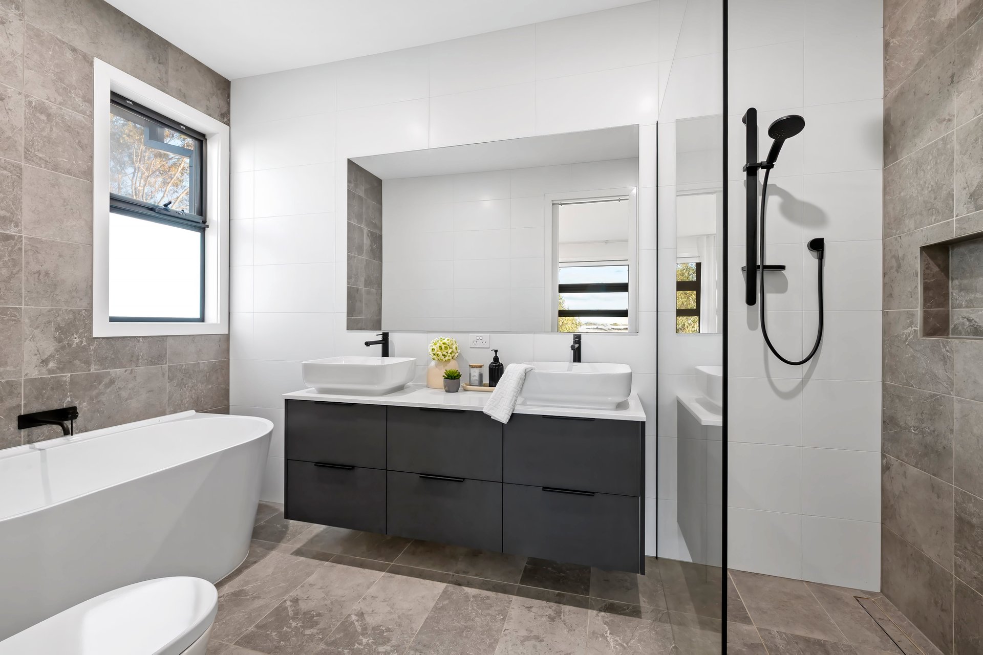 Accommodation is thoughtfully arranged with a ground-floor bedroom and full bathroom offering ideal flexibility for guests or multigenerational living. Upstairs, two private master suites each include walk-in robes and beautifully appointed ensuites, providing a luxurious dual-suite layout perfectly suited to families, professionals or shared living.