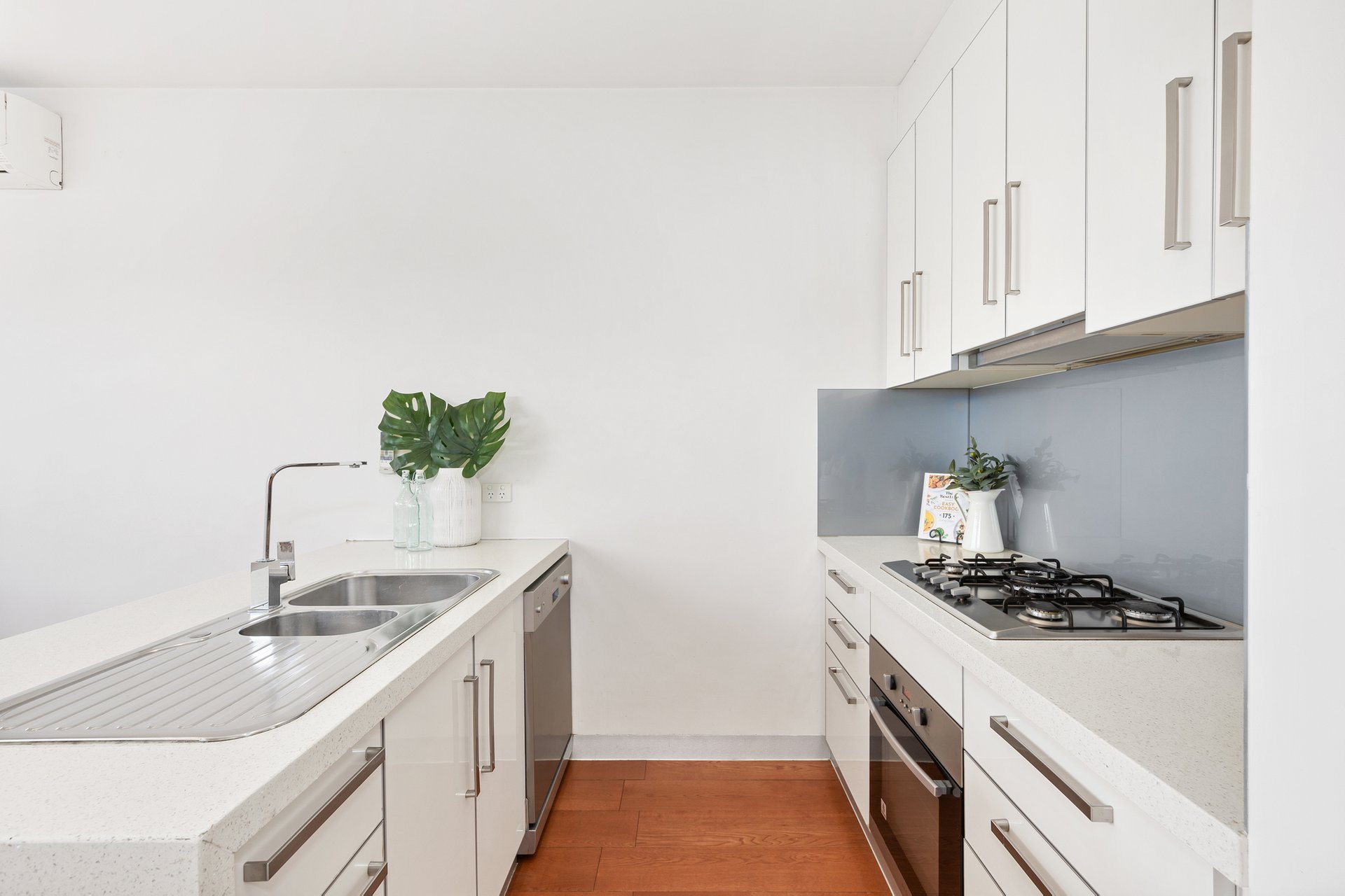 Step inside to discover a spacious open-plan living and dining area, bathed in natural light and seamlessly connecting to a private balcony. The modern kitchen features quality appliances, ample cabinetry, and stone bench tops.