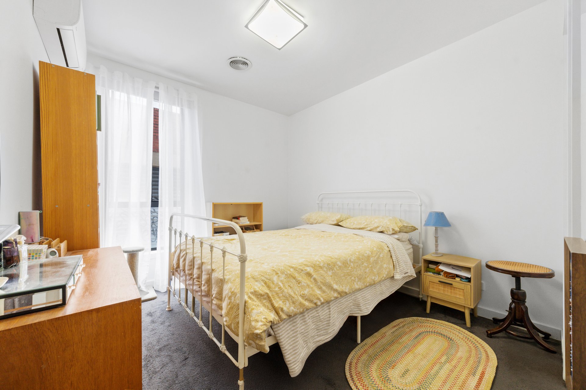 The generous bedroom offers a private and comfortable retreat, complete with a walk-in robe that provides direct access through to the bathroom. This clever design enhances both convenience and storage, while a split system unit ensures personalised climate control.