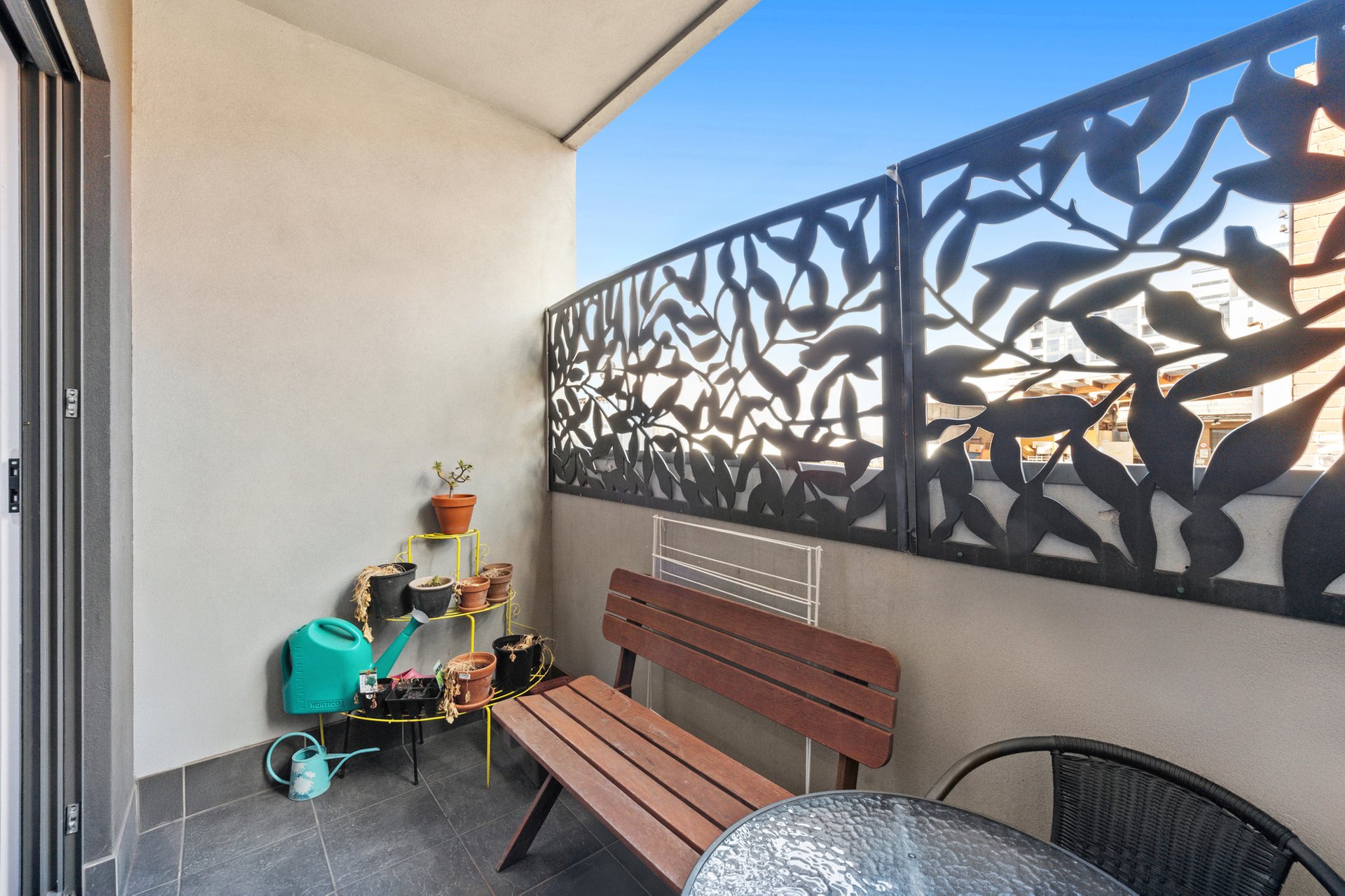 Stepping outside, a private balcony offers the perfect spot to unwind or enjoy fresh air. Additional features include secure intercom entry, a designated car space, storage cage, and access to a communal bike storage area, further enhancing the appeal of this well-rounded apartment.