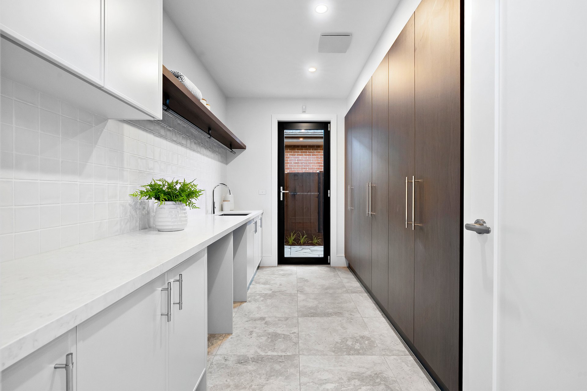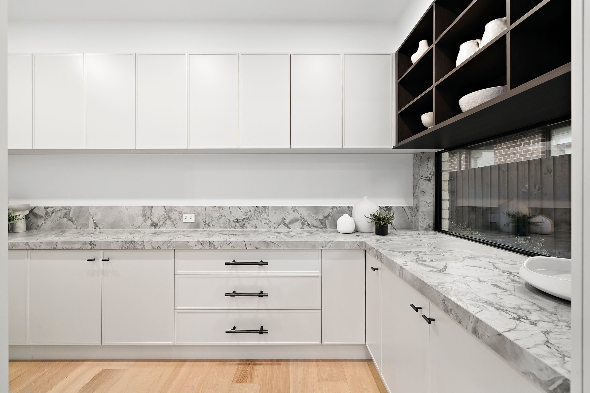 The kitchen is pure poetry in porcelain stone and soft-close craftsmanship. Hana anti-scratch undermount twin sinks. Butler’s pantry. Integrated fridge and freezer. Premium Bosch appliances. Every detail curated. Every finish refined.