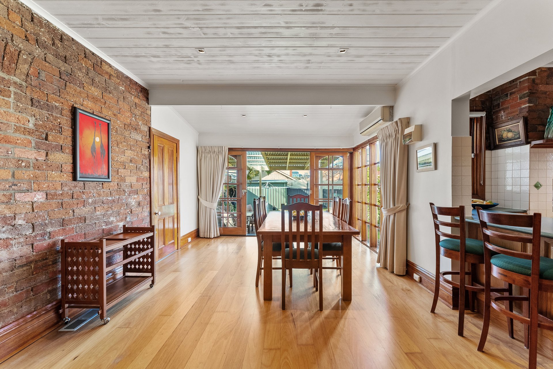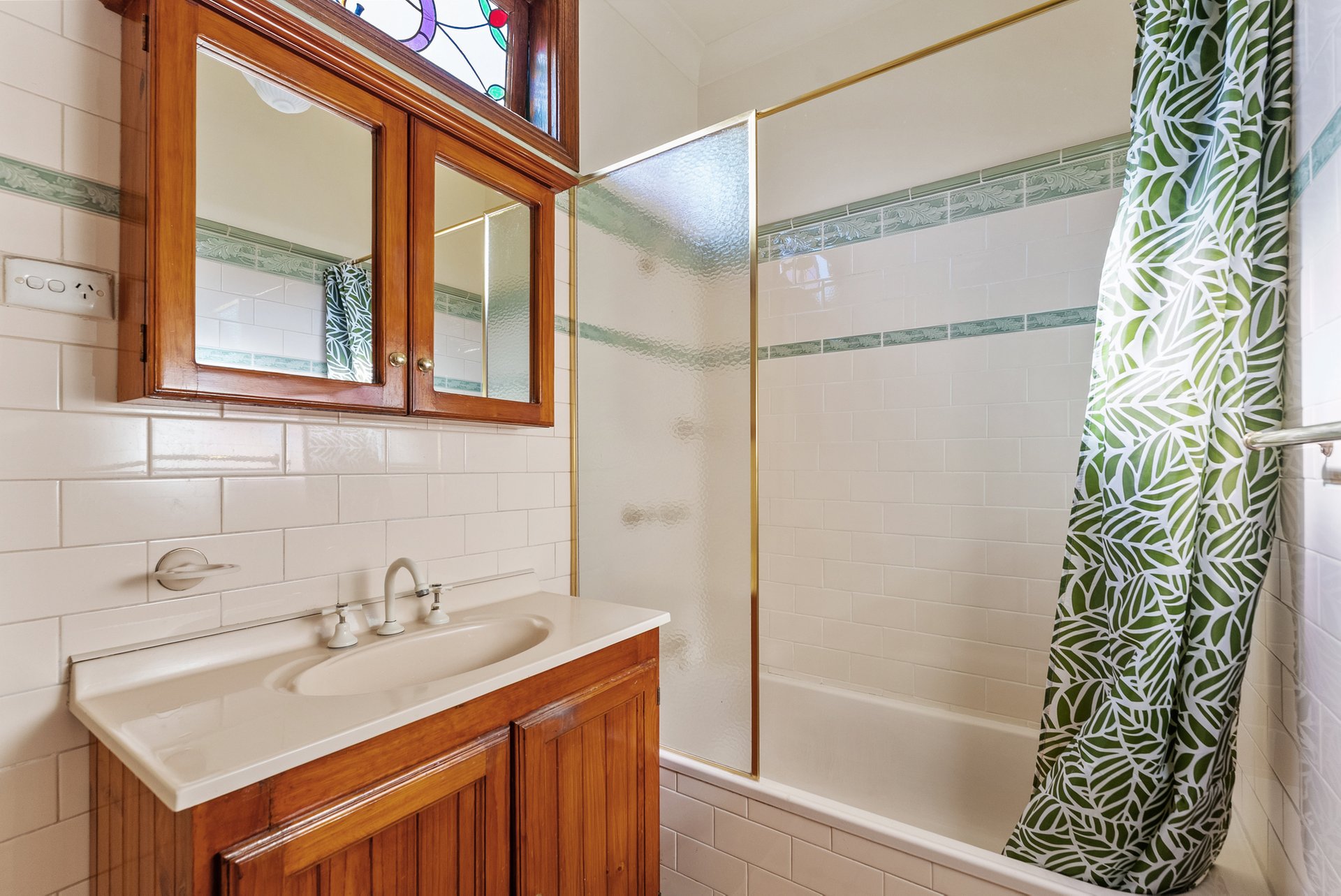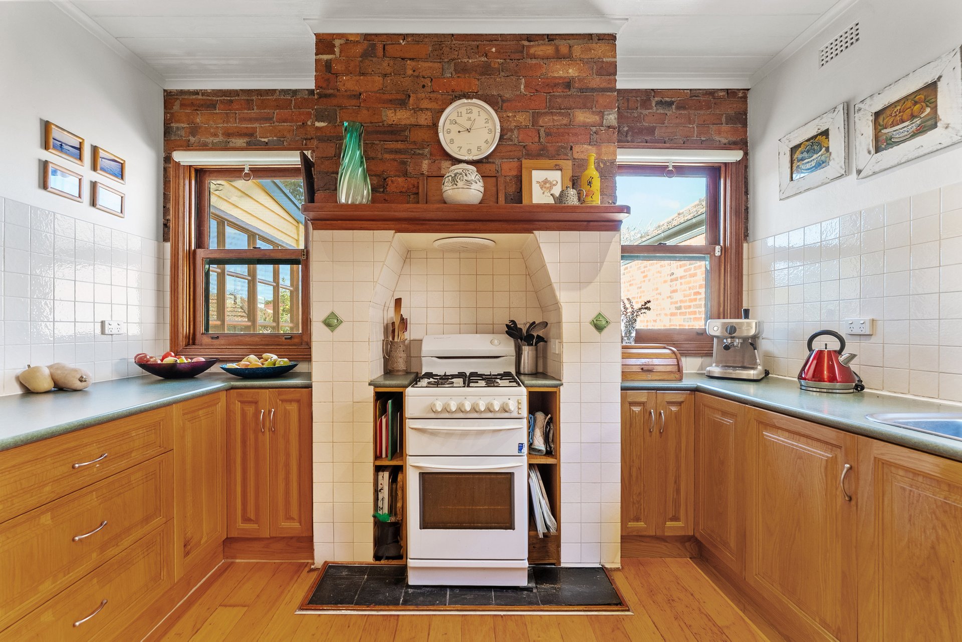 The large kitchen is light-filled and functional, overlooking the lush backyard where established gardens, BBQ and a thriving veggie patch create a tranquil oasis. Side access to the rear is a rare and valuable bonus. Four generous bedrooms share a charming period-style bathroom, adding to the home's classic appeal.