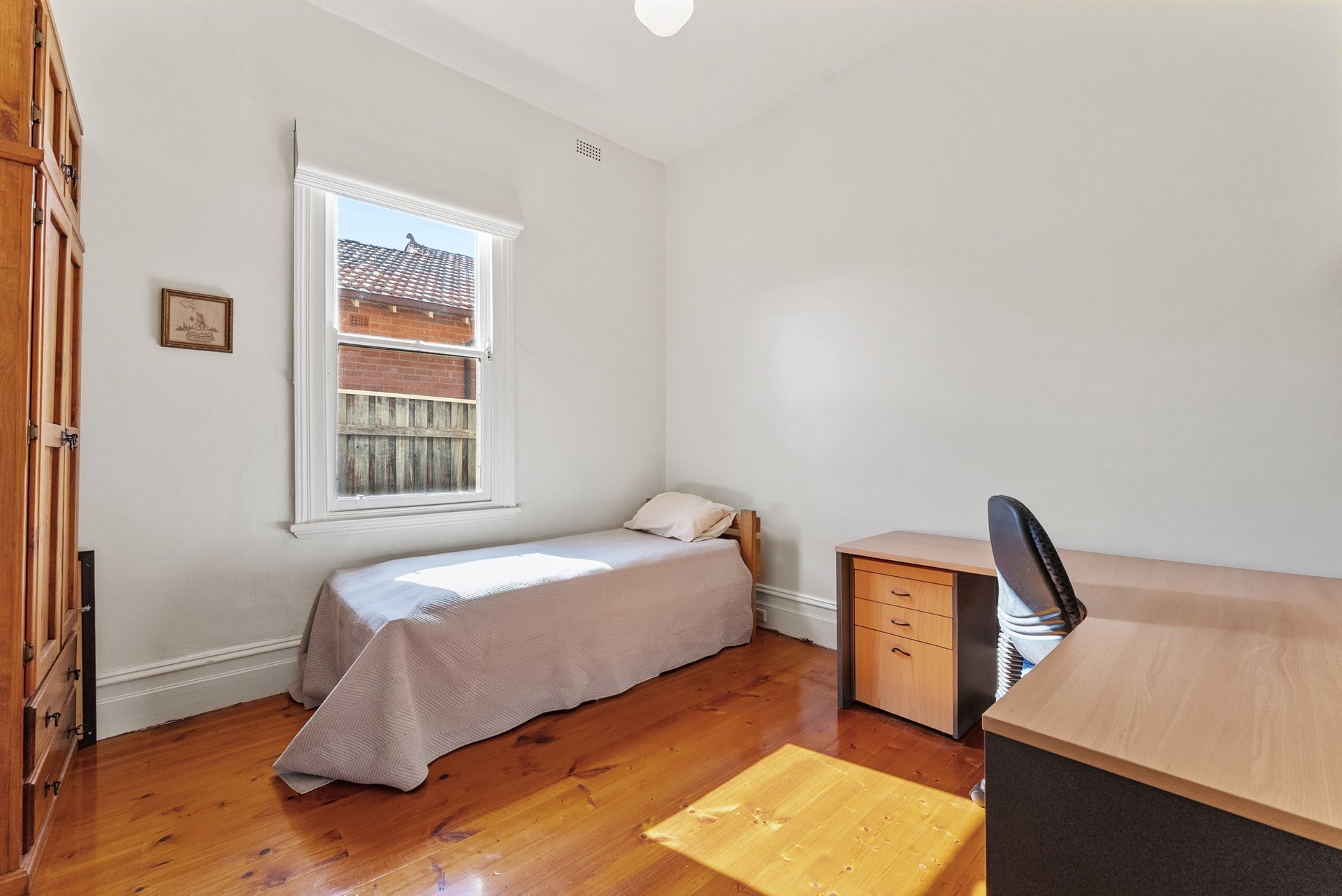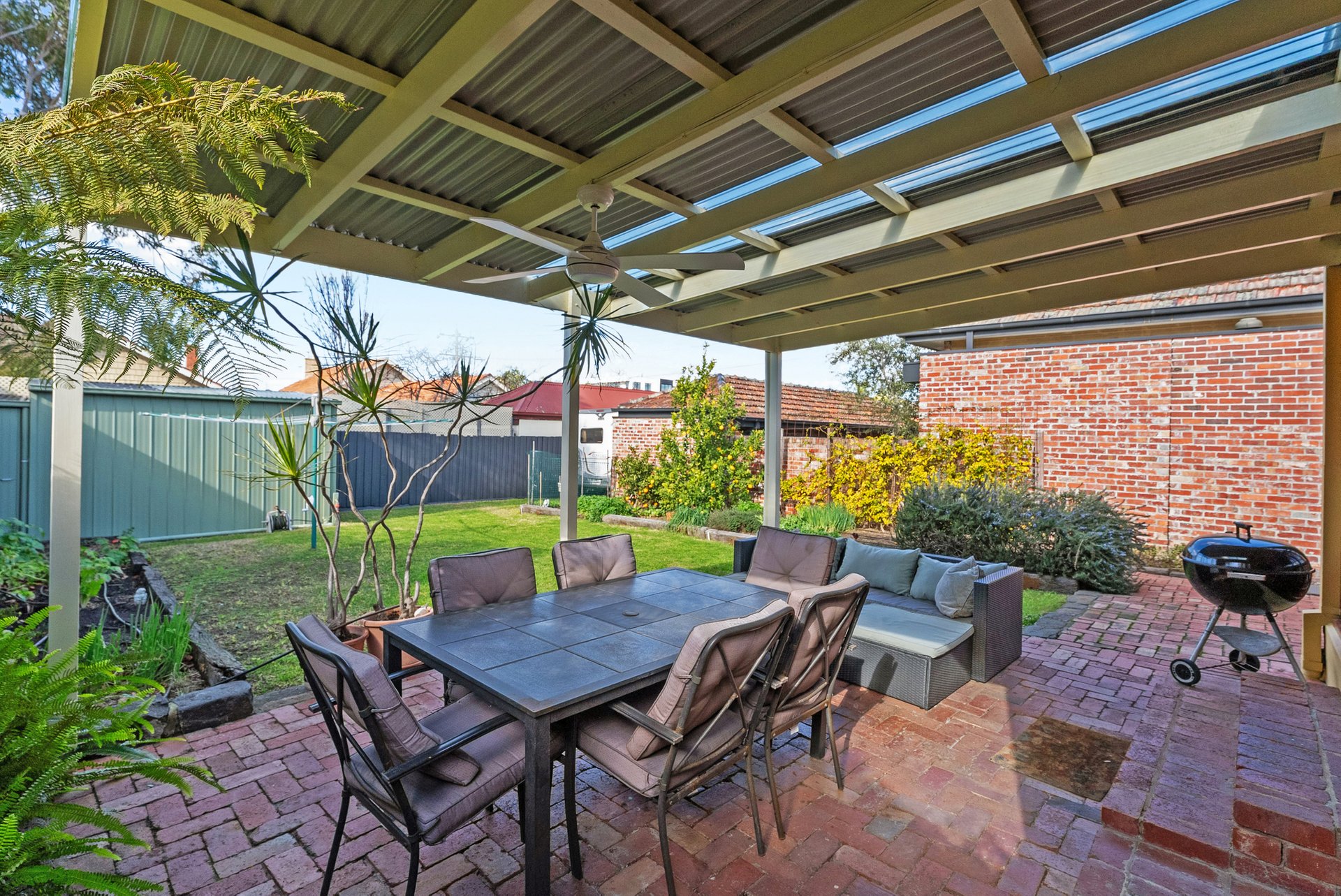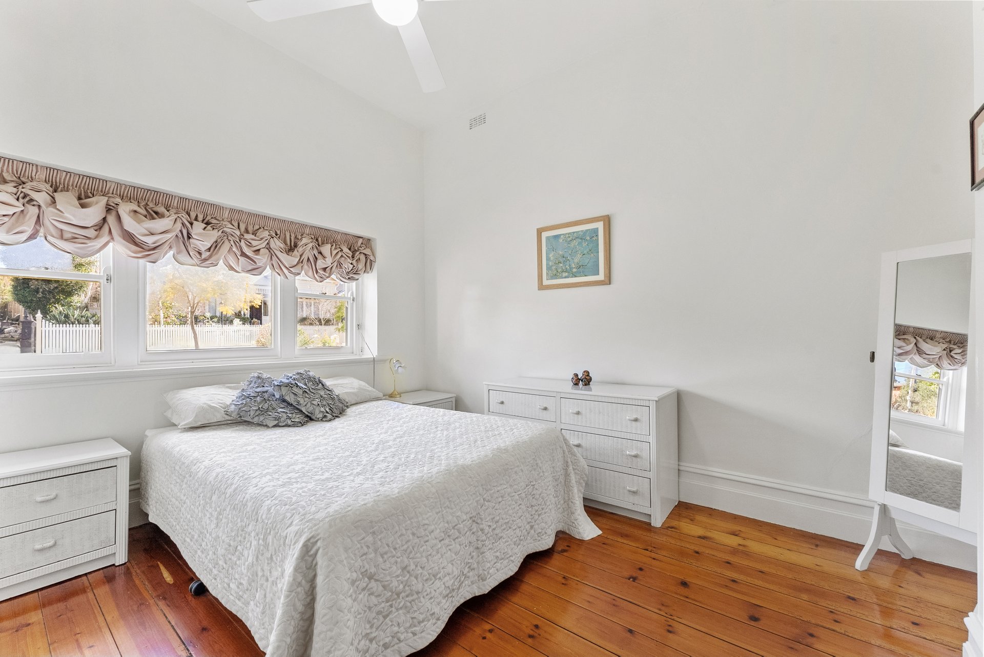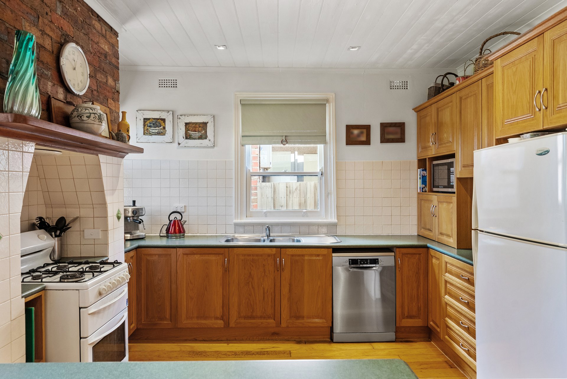The large kitchen is light-filled and functional, overlooking the lush backyard where established gardens, BBQ and a thriving veggie patch create a tranquil oasis. Side access to the rear is a rare and valuable bonus. Four generous bedrooms share a charming period-style bathroom, adding to the home's classic appeal.