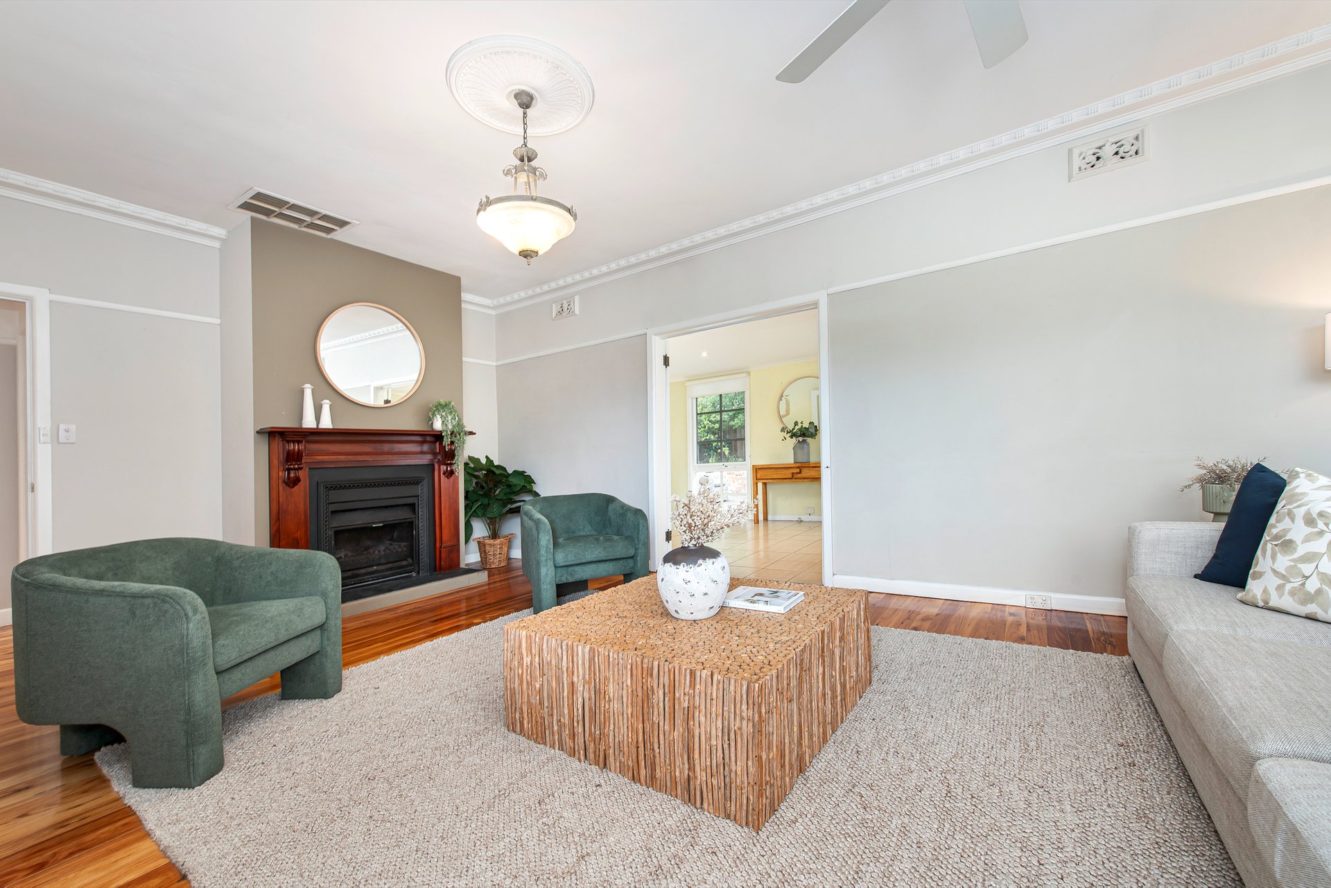 Thoughtful extras enhance family living, including polished timber floors, ornate cornices, ceiling roses, gas ducted heating, evaporative cooling, ceiling fans, a modern Colourbond roof, 1.52kW solar panels, two 2,000L water tanks connected to the laundry and garden, and a single garage with workshop.
