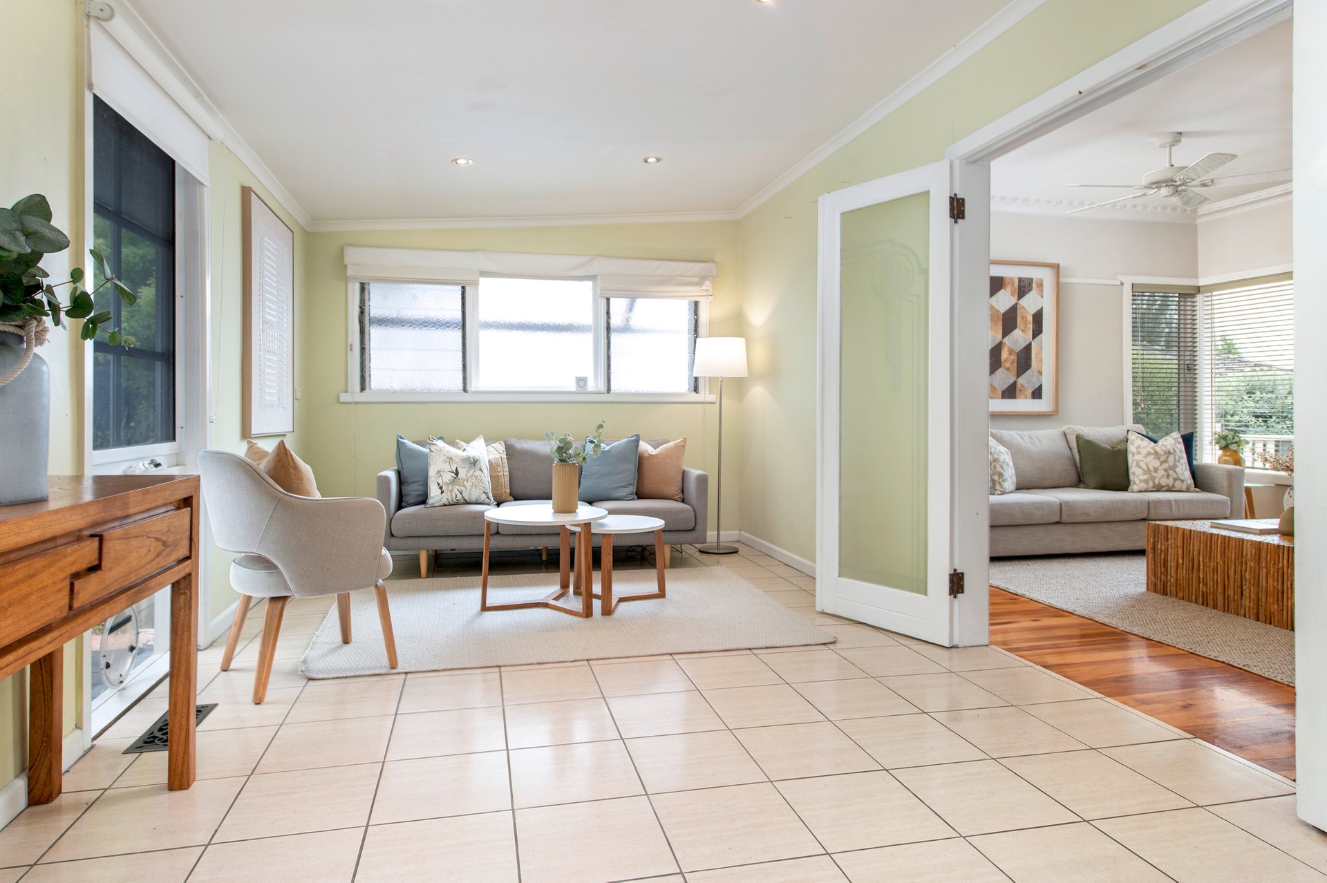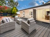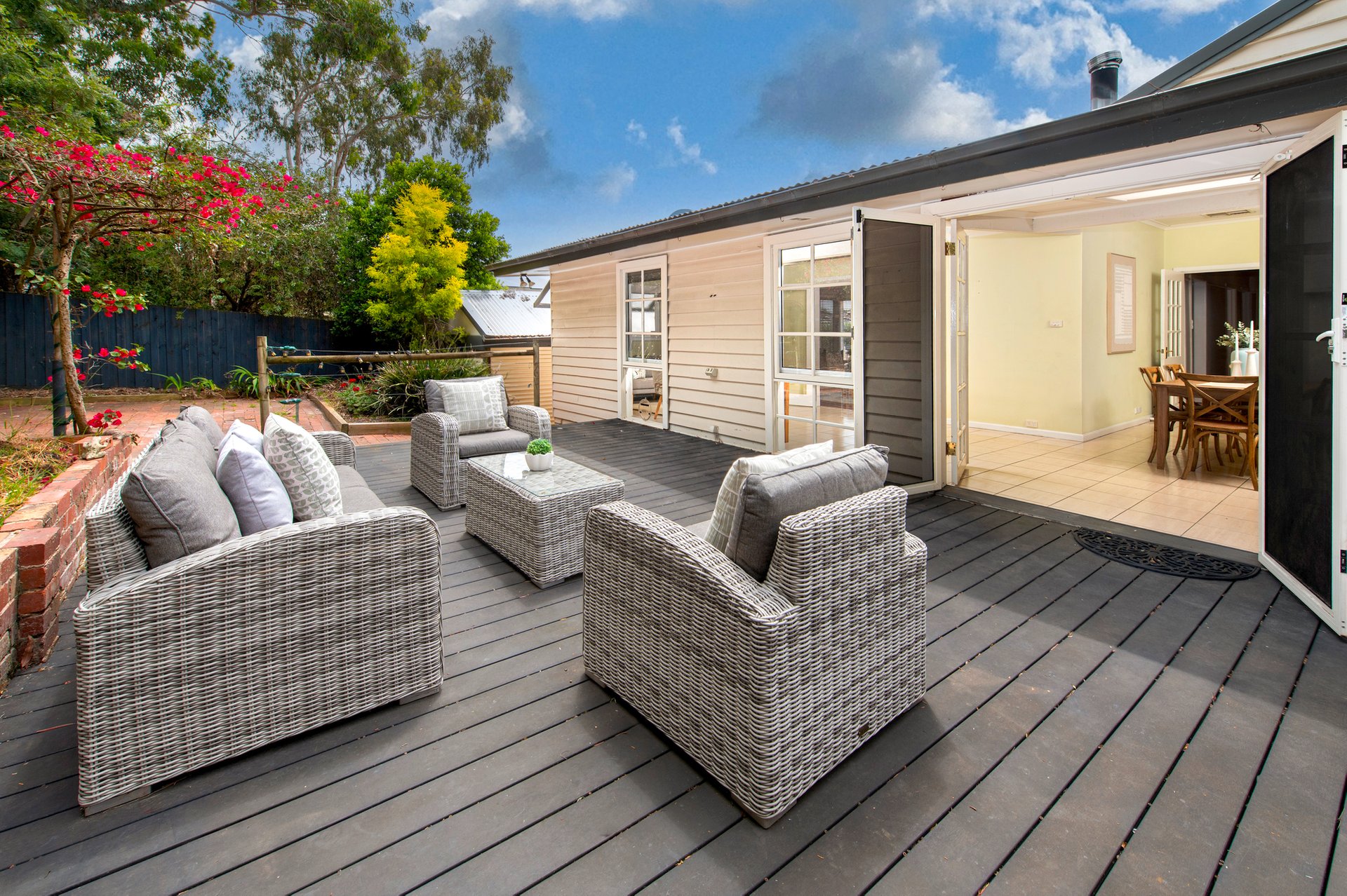 At the heart of the home, a light-filled, open-plan living and dining area provides abundant space for the whole family. French doors lead seamlessly to a rear deck, effortlessly extending the living area outdoors making it the ideal space for entertaining.