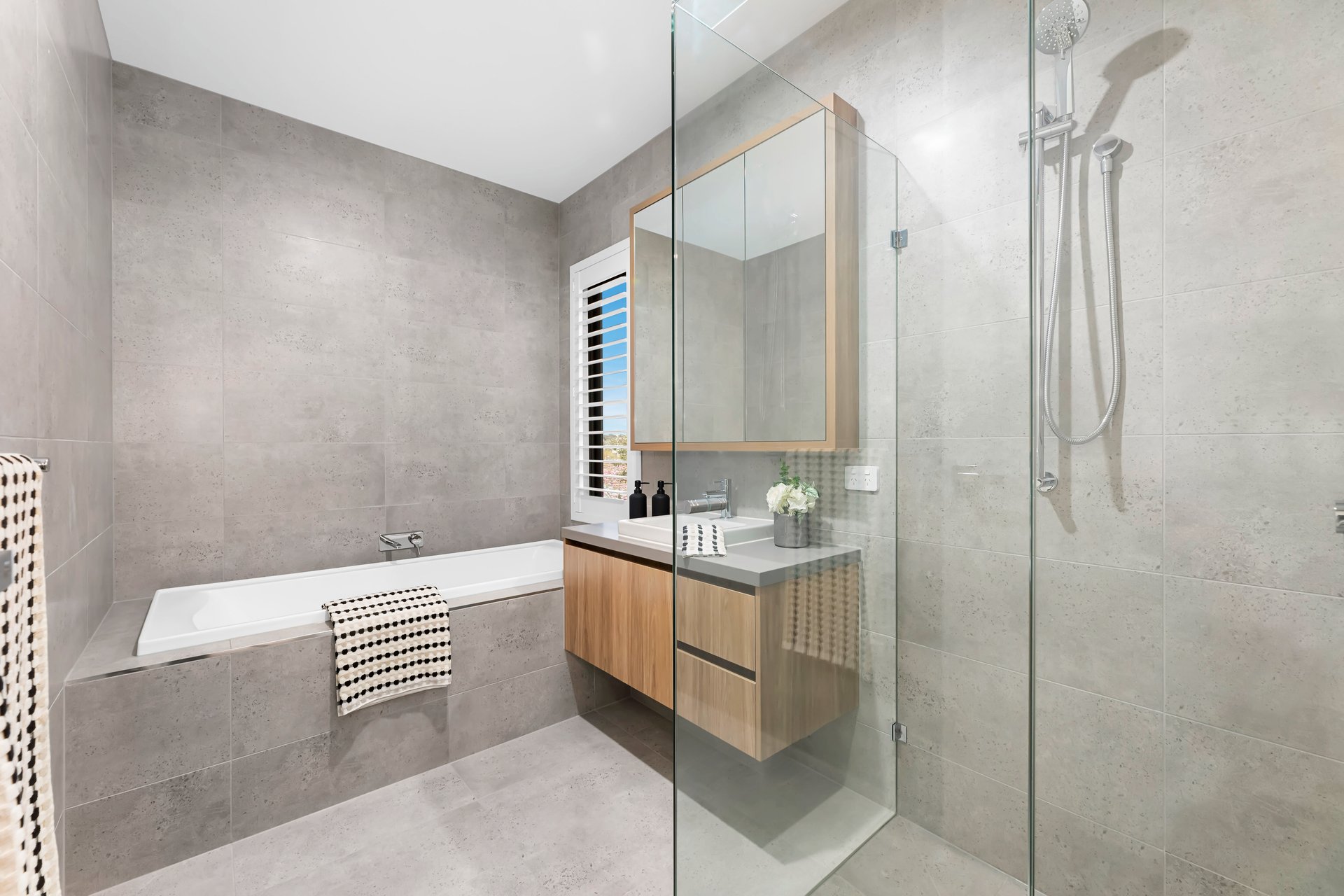 Attention to detail is evident in every corner, from plantation shutters on front-facing windows and bathrooms on first floor and quality roller blinds throughout, to mirrored built-in robes in bedrooms two and three upstairs. All bathrooms include crafted built-in-wall cabinetry and high-quality fittings. Outdoors, the home continues to impress with a remote-controlled louvred pergola over a merbau timber deck, complete with a gas line for effortless BBQs. The landscaped garden features an automated irrigation system, slimline water tank, and a handy garden shed. Additional highlights include a secure Milkcan parcel mailbox, durable Colorbond fencing, leaf guard to guttering and a permeable driveway designed for both aesthetics and sustainability.
