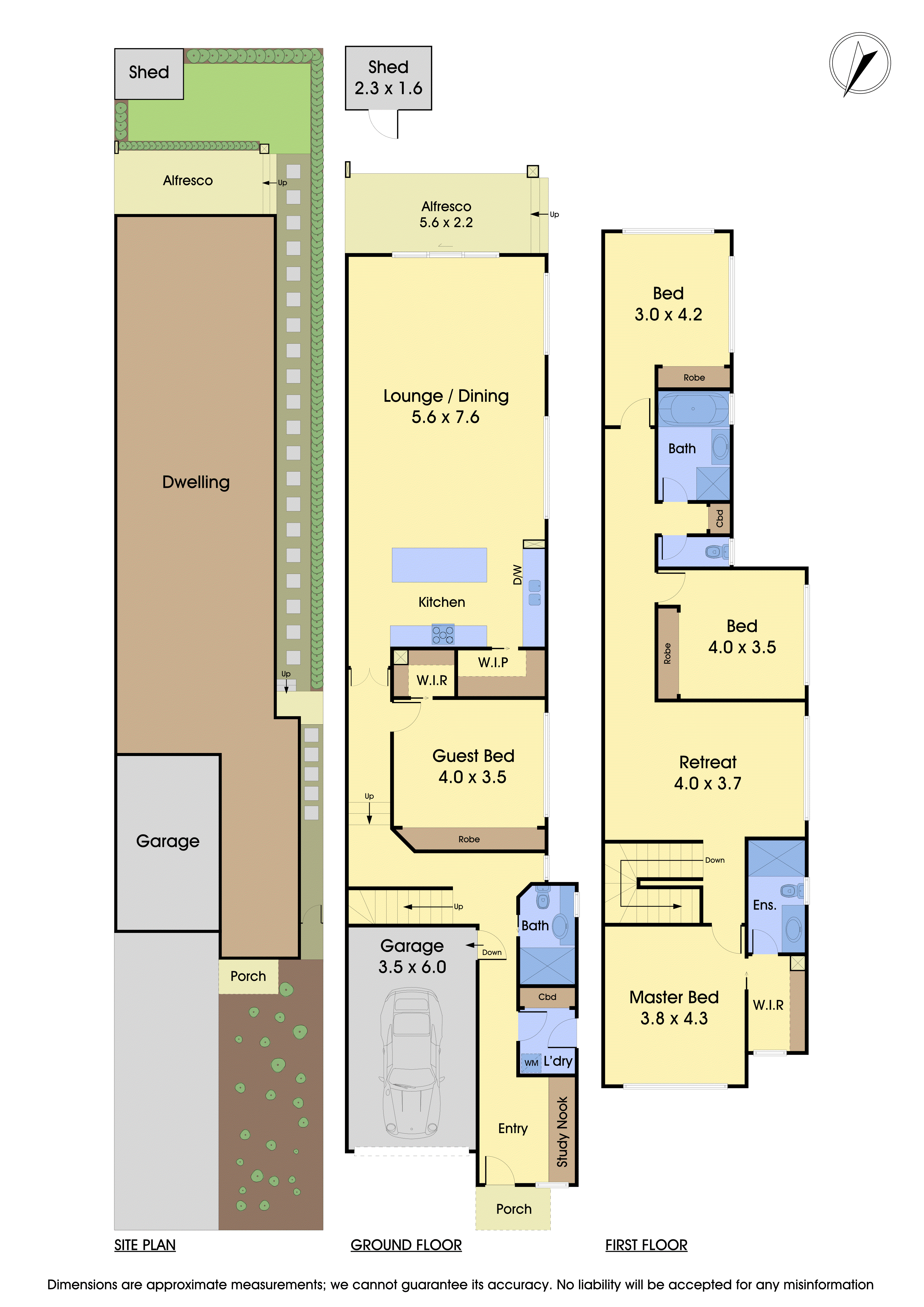 Ideal for families or professionals, the home features a ground-floor guest bedroom complete with a walk-in robe, an expansive open-plan living, dining, and kitchen area with soaring 3.06-metre ceilings, a study nook and spacious upstairs retreat perfect as a second living space.